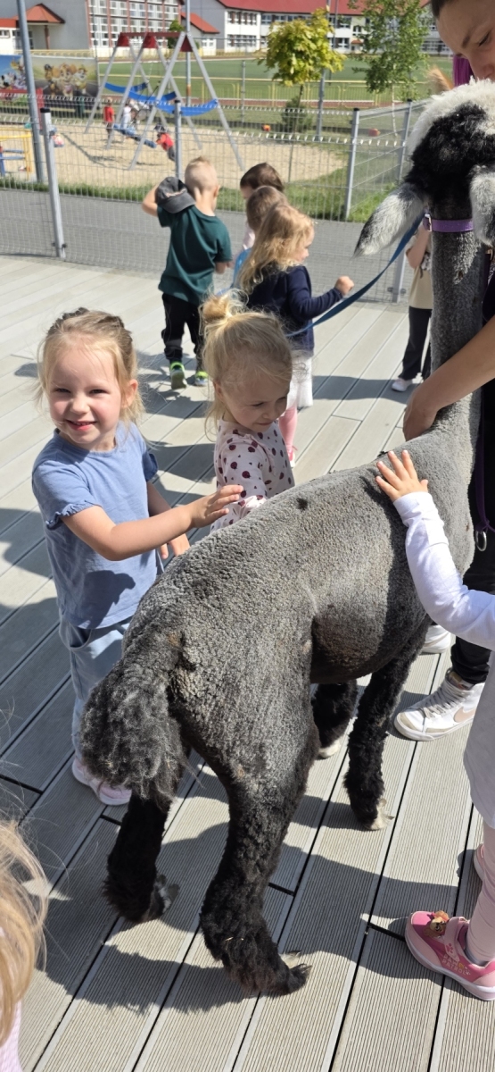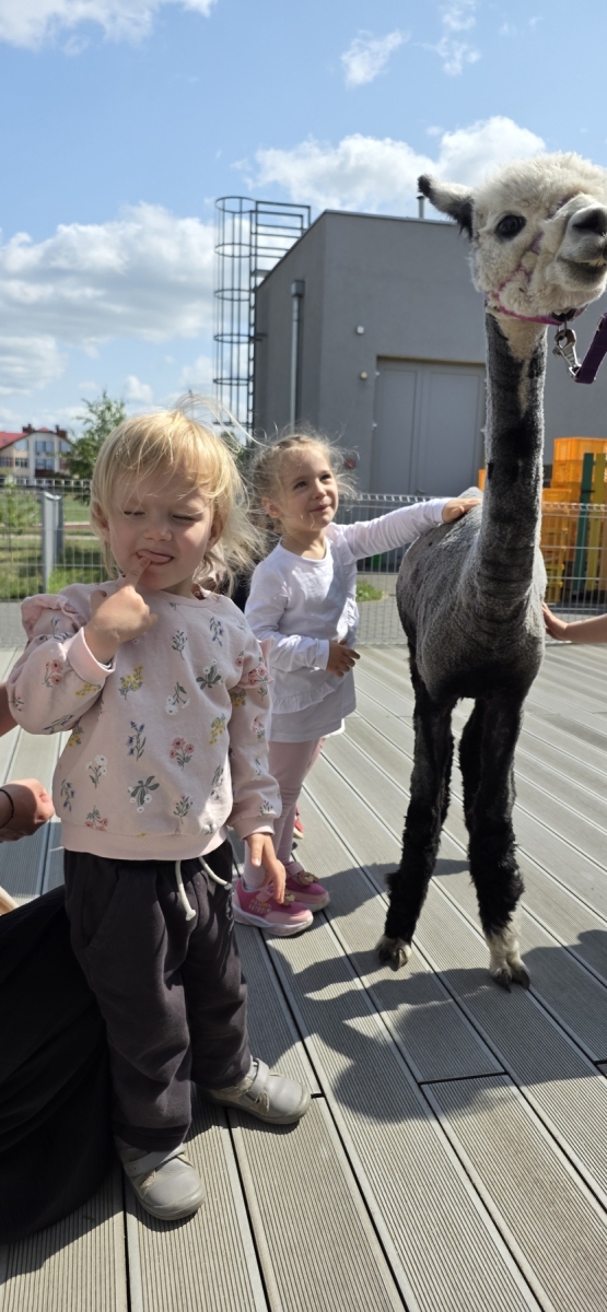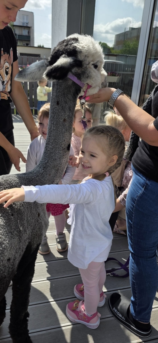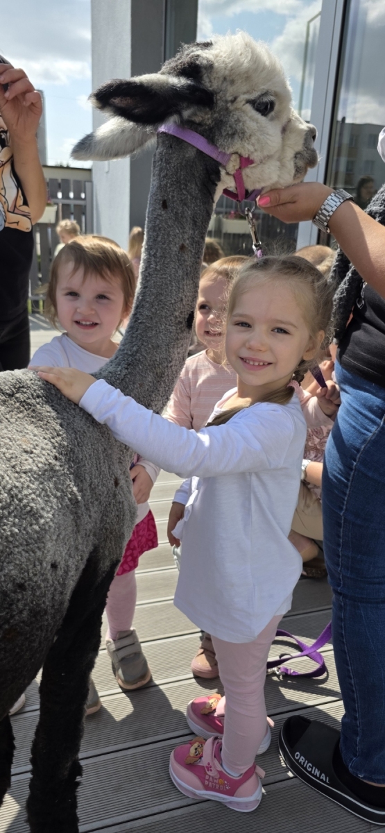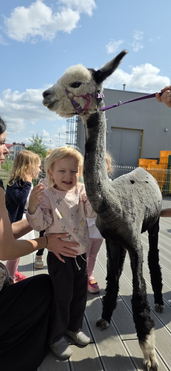 Alpaki to inteligentne i łagodne zwierzęta. Szczególnie łatwo przywiązują się do dzieci. Spotkanie z alpaką pozwoliło dzieciom oswoić się z takimi emocjami jak :