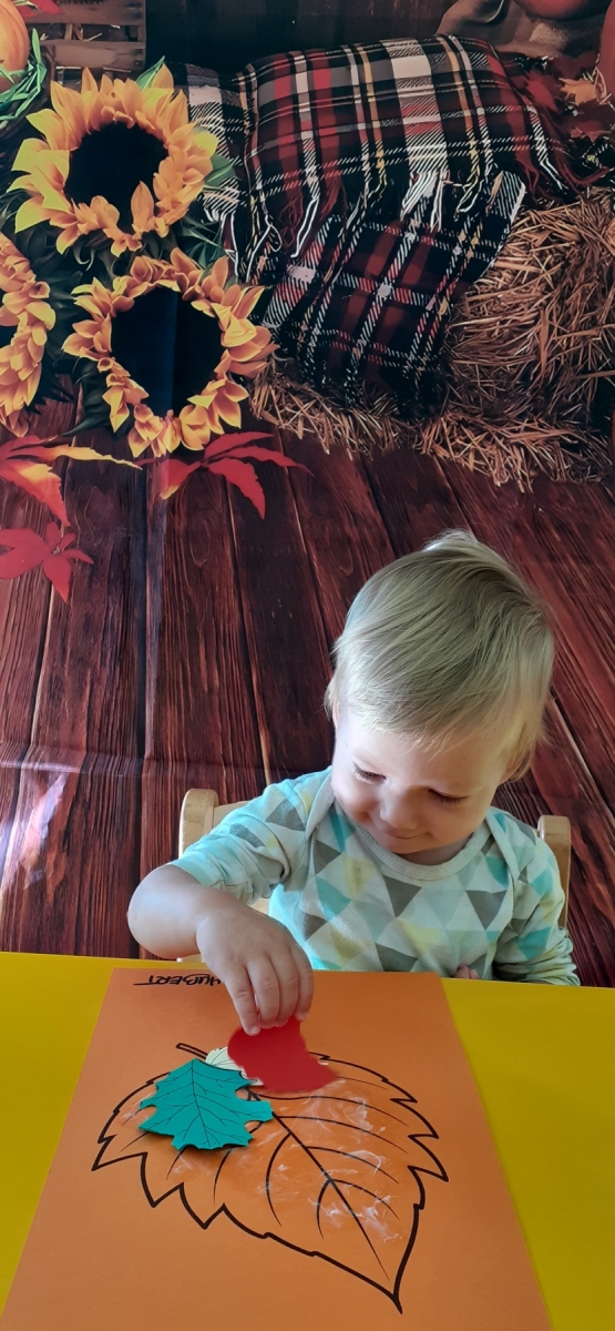 Dziś w naszej grupie obchodziliśmy Pierwszy Dzień Jesieni. Każde dziecko wykonało swoją własną pracę plastyczną, która była obrazem jesiennego liścia. Polegała ona na naklejeniu kolorowych listków na przygotowany szablon. Dzieci przez to rozwijały swój chwyt i zdolności manualne.