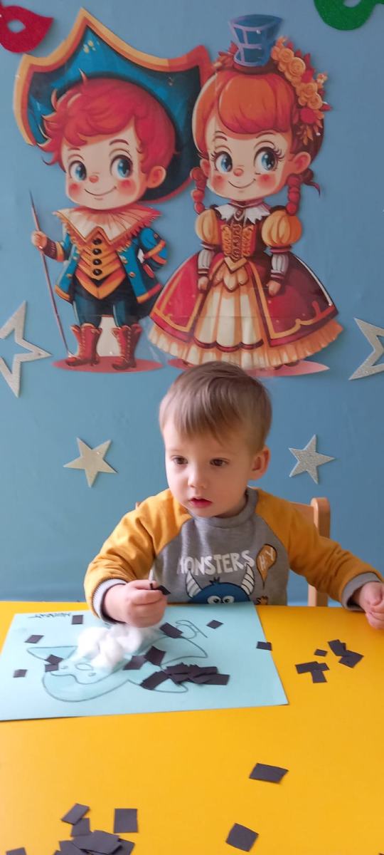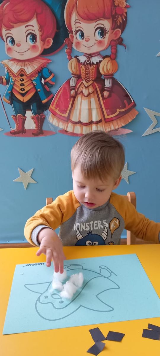 Zimowe ferie to idealny czas na kreatywne prace plastyczne! Motylki miały pomysł na stworzenie uroczego pingwinka z piosenki Ja jestem mały pingwin, którą uwielbiają. W tej pracy była możliwość samodzielnego udekorowania brzuszka watą, a skrzydełek czarnym papierem. Efekt pracy zachwycający.