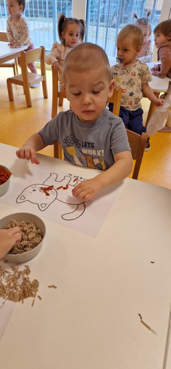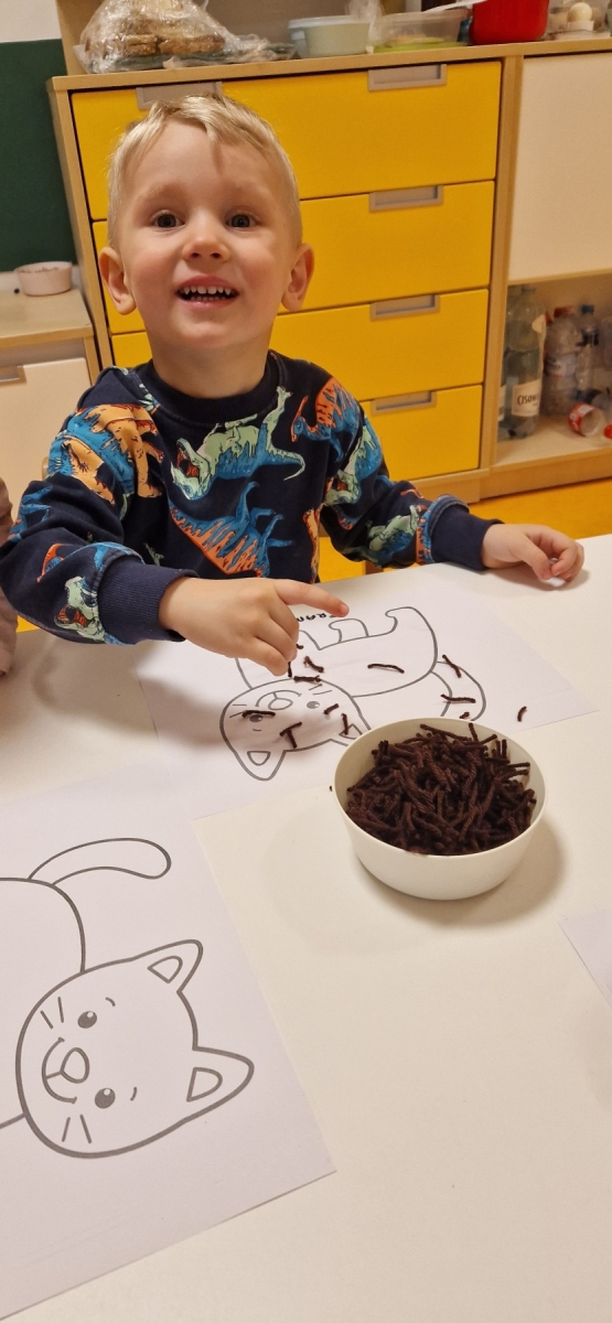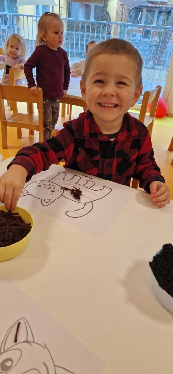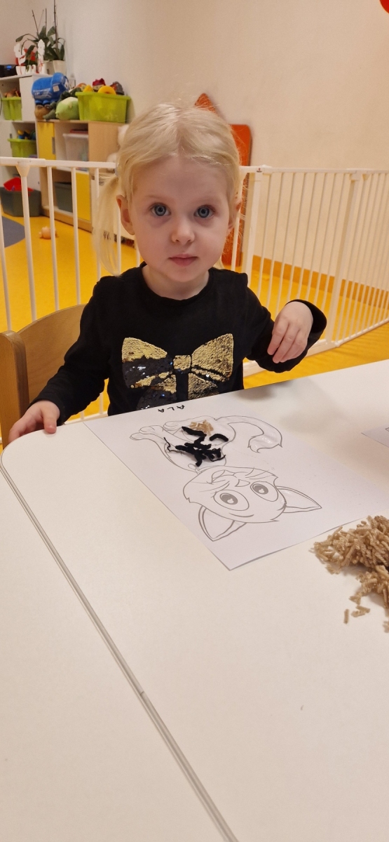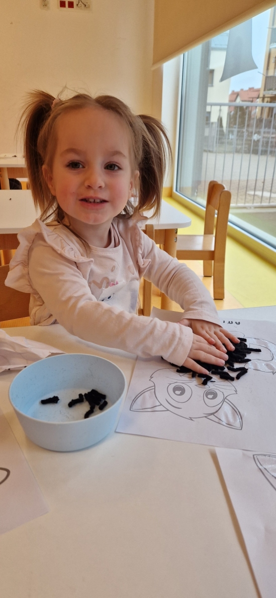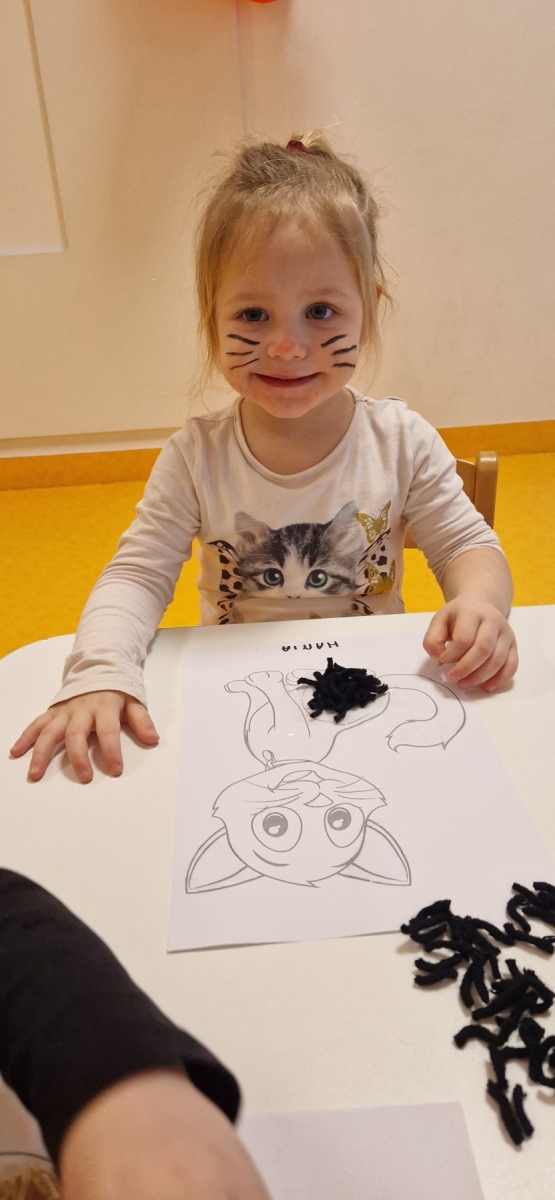 Dziś obchodziliśmy dzień kota. To radosne święto skupione na zabawach ruchowych, plastycznych, edukacyjnych o zwierzętach. Dzieci wcielają się w kotki, naśladują kocie ruchy, piją mleczko i zwijają się w kłębki jak kotki.