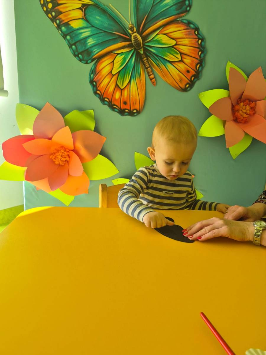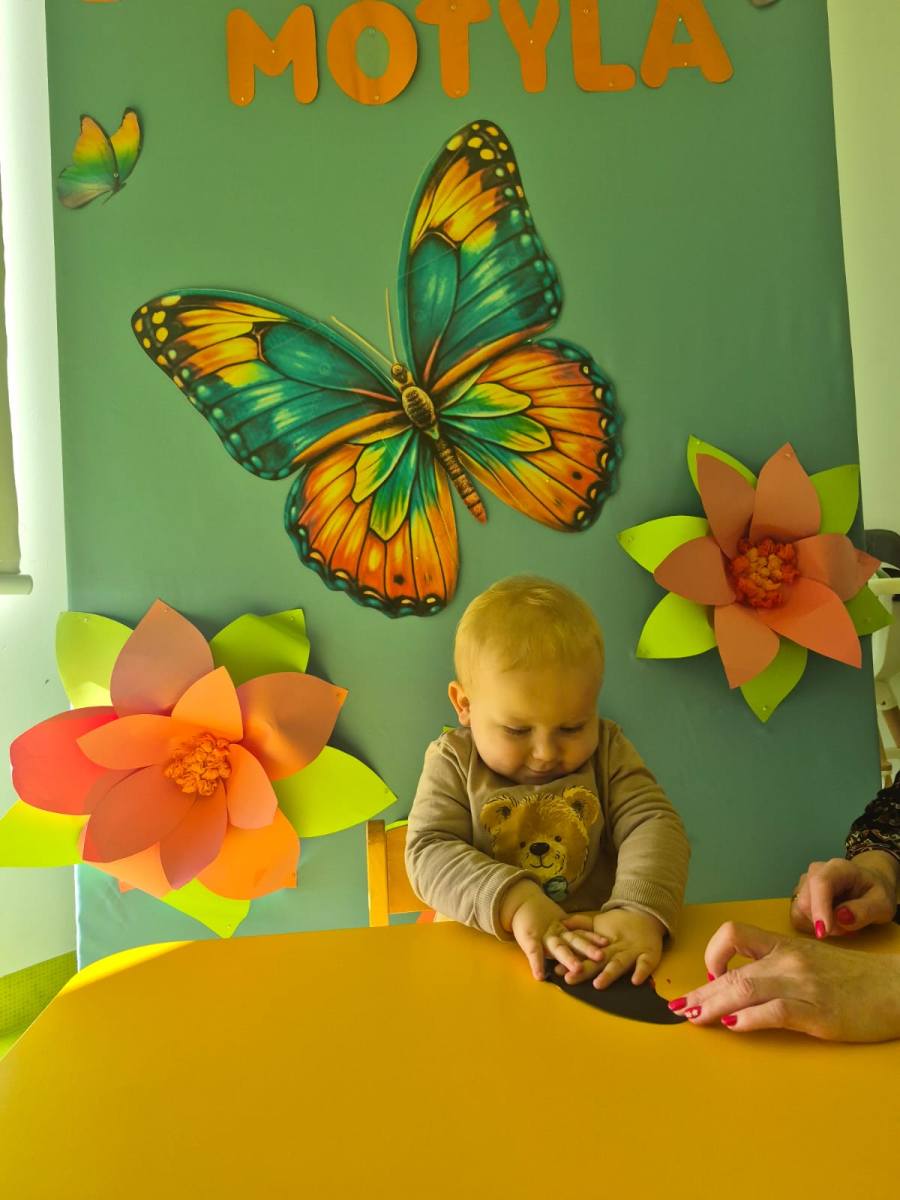 Po rozruszaniu rączek, przyszła kolej na paluszki. Na ciemnym szablonie rozcieraliśmy kropki farb, a potem…czary mary… patrzyliśmy jak one świetnie odbijają się na drugim skrzydle. to było coś , co nas bardzo zadziwiło. Teraz nasze dzieci potrafią znaleźć Motyle na obrazku i wciąż uczą się jak poznawać świat.