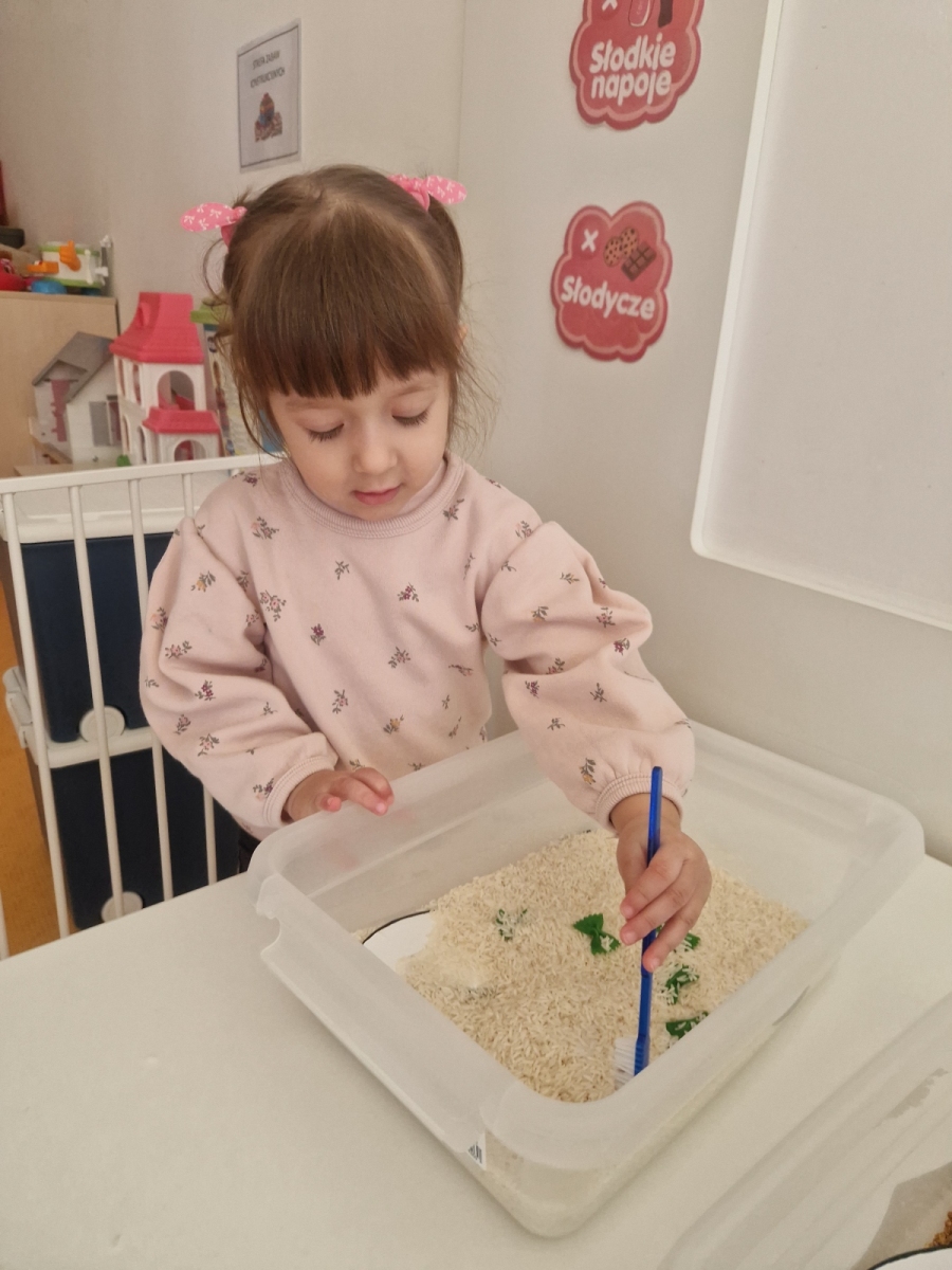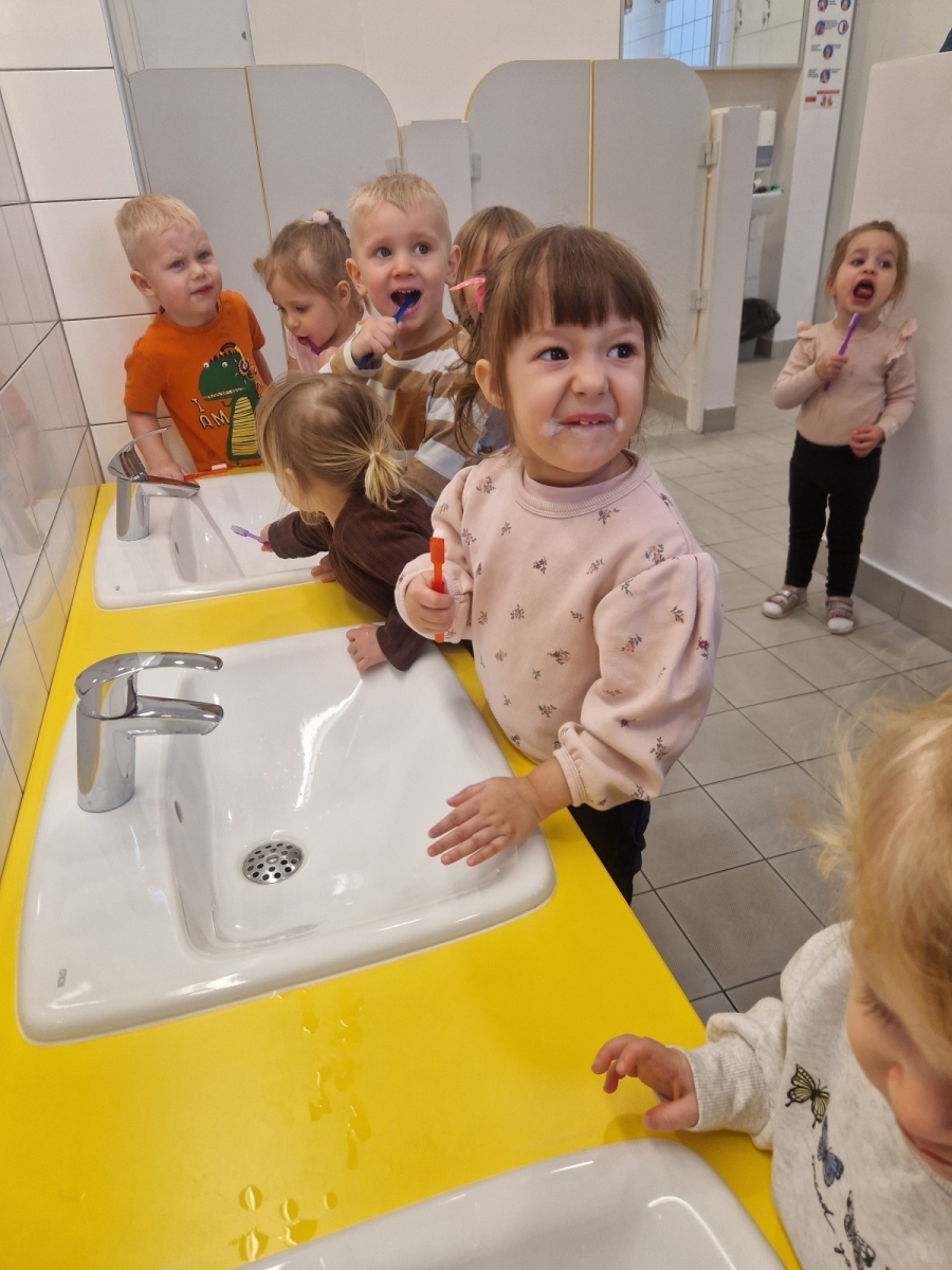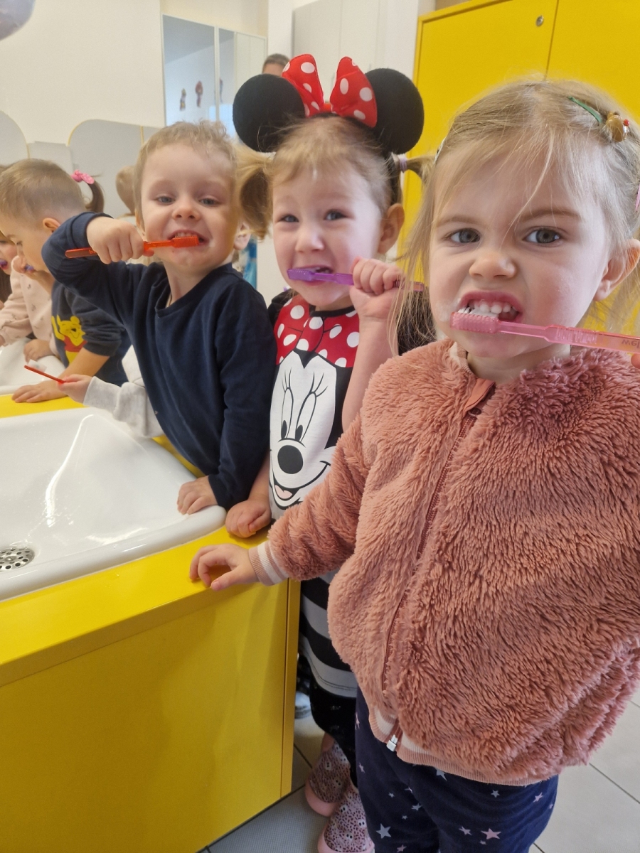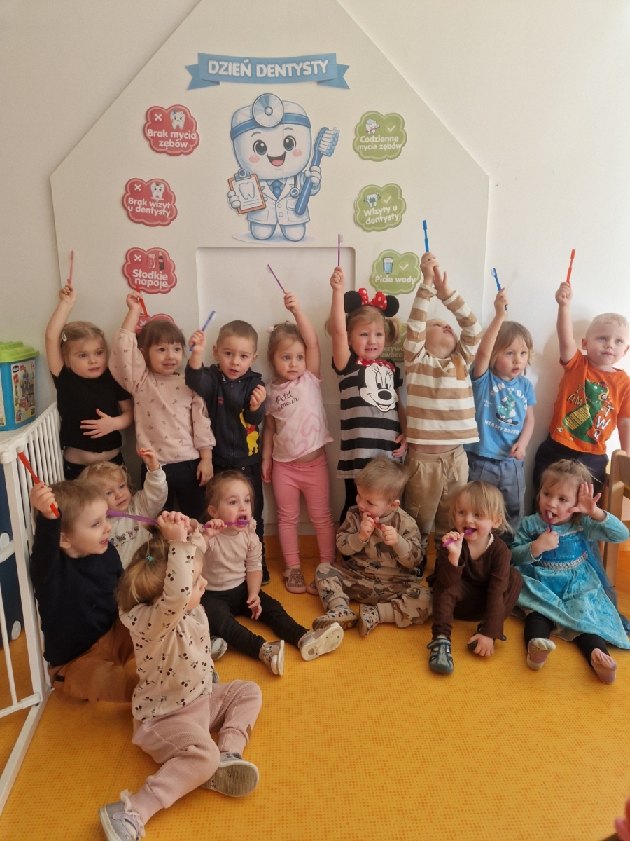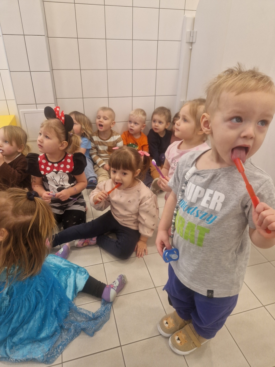 Dziś dowiedzieliśmy się co lubią nasze ząbki, a czego lepiej unikać. Jak prawidłowo używać szczoteczki i pasty, następnie myliśmy ząbki. Oczyszczaliśmy ząbki z bakterii za pomocą dużego zęba posypanego ryżem i kaszą. teraz każdy pacjent wie co jest dobre dla jego ząbków, a co nie.
