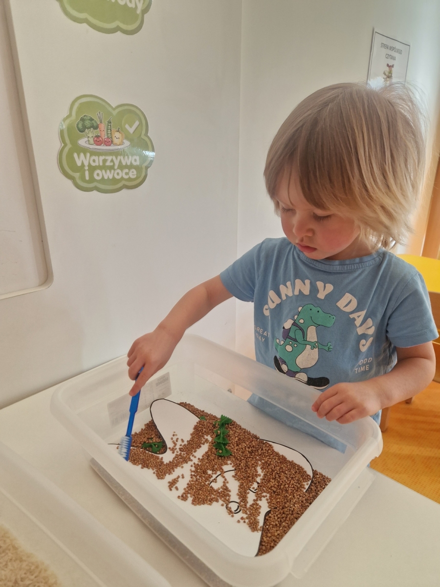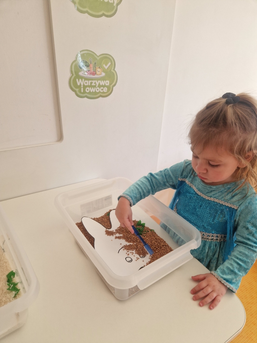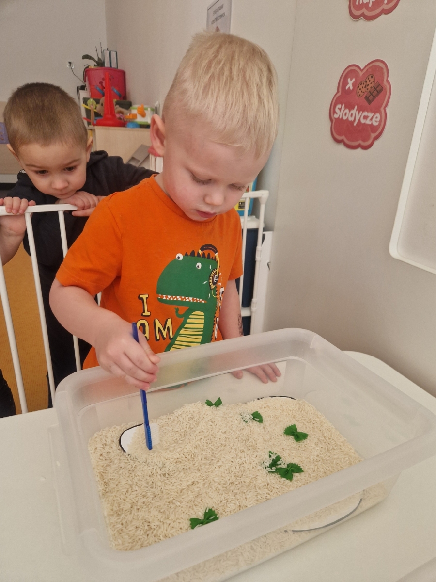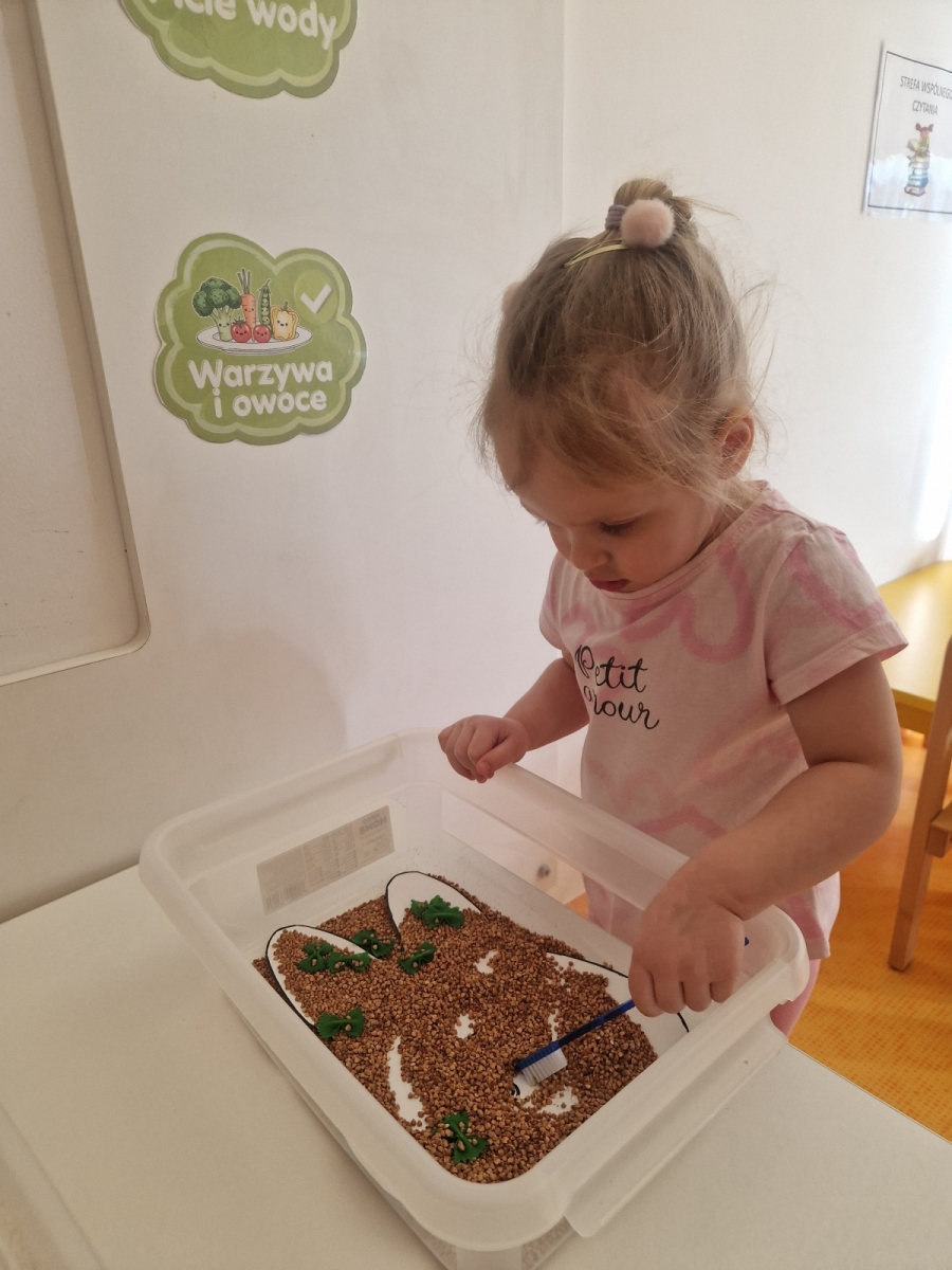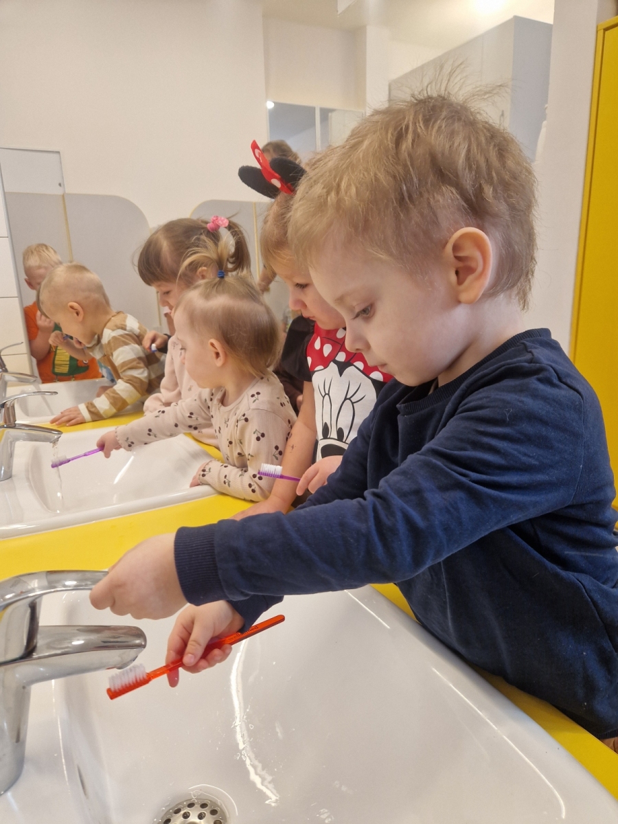 Dziś dowiedzieliśmy się co lubią nasze ząbki, a czego lepiej unikać. Jak prawidłowo używać szczoteczki i pasty, następnie myliśmy ząbki. Oczyszczaliśmy ząbki z bakterii za pomocą dużego zęba posypanego ryżem i kaszą. teraz każdy pacjent wie co jest dobre dla jego ząbków, a co nie.