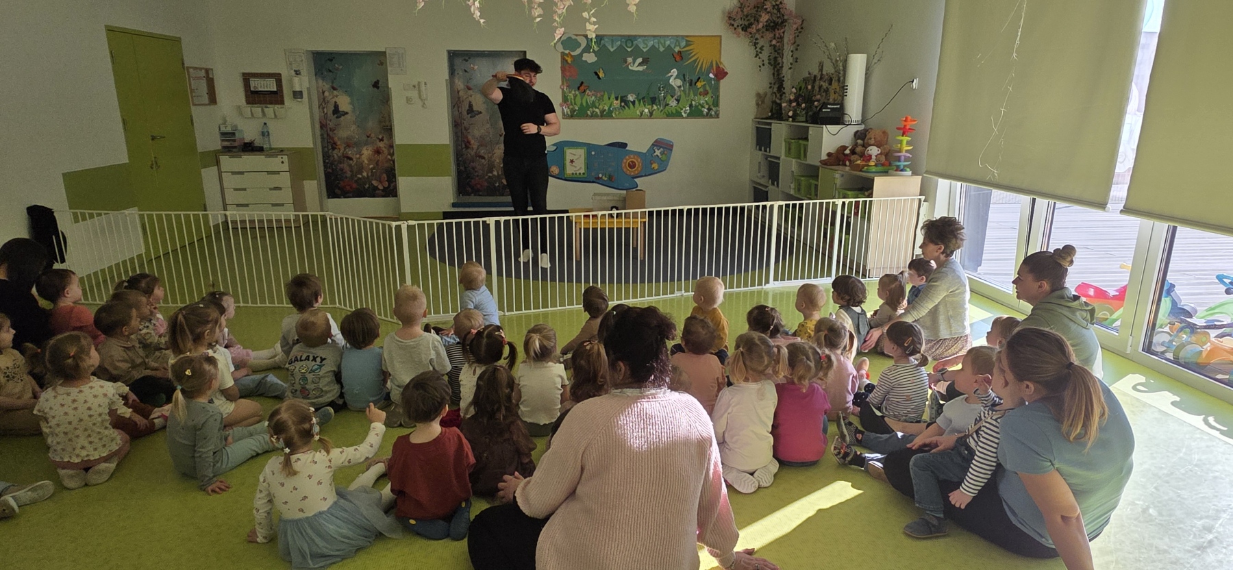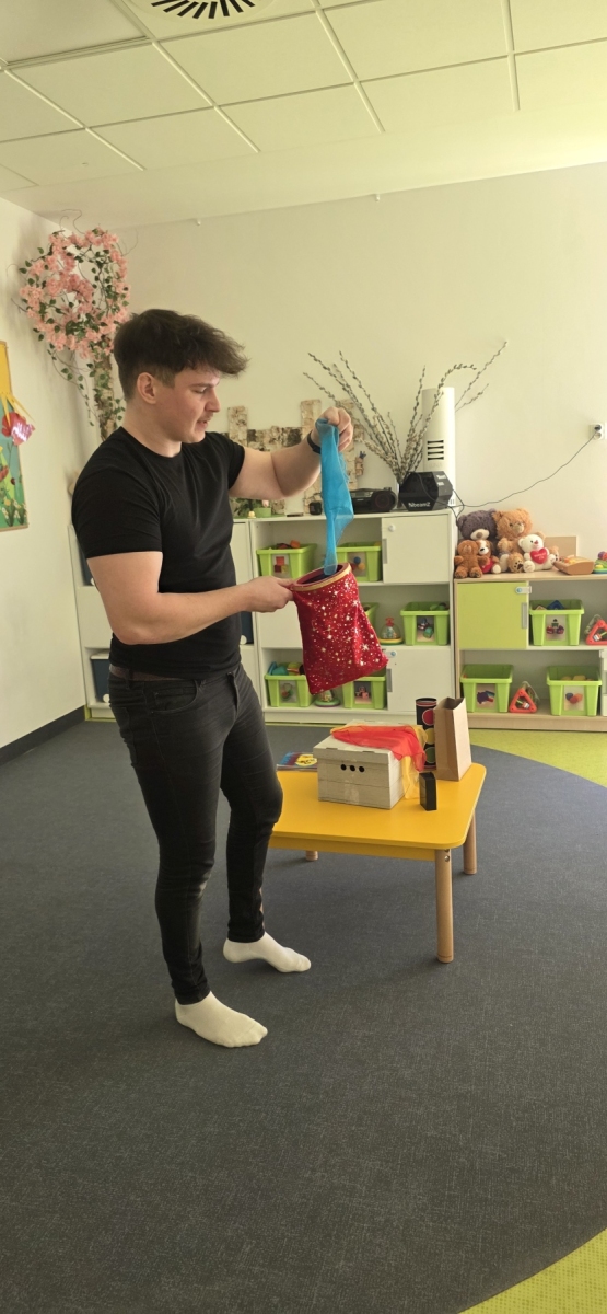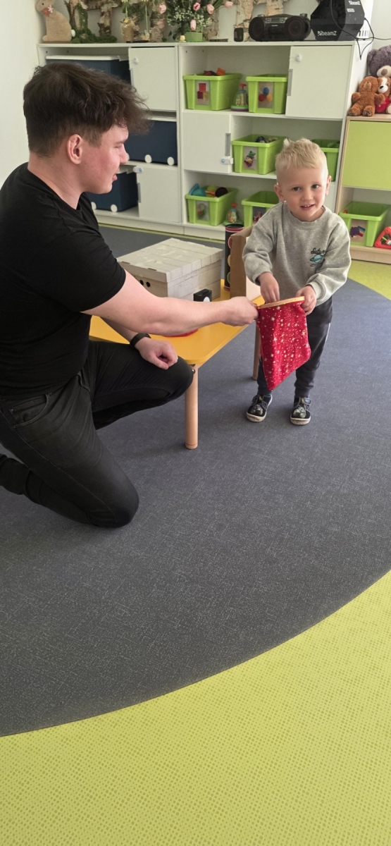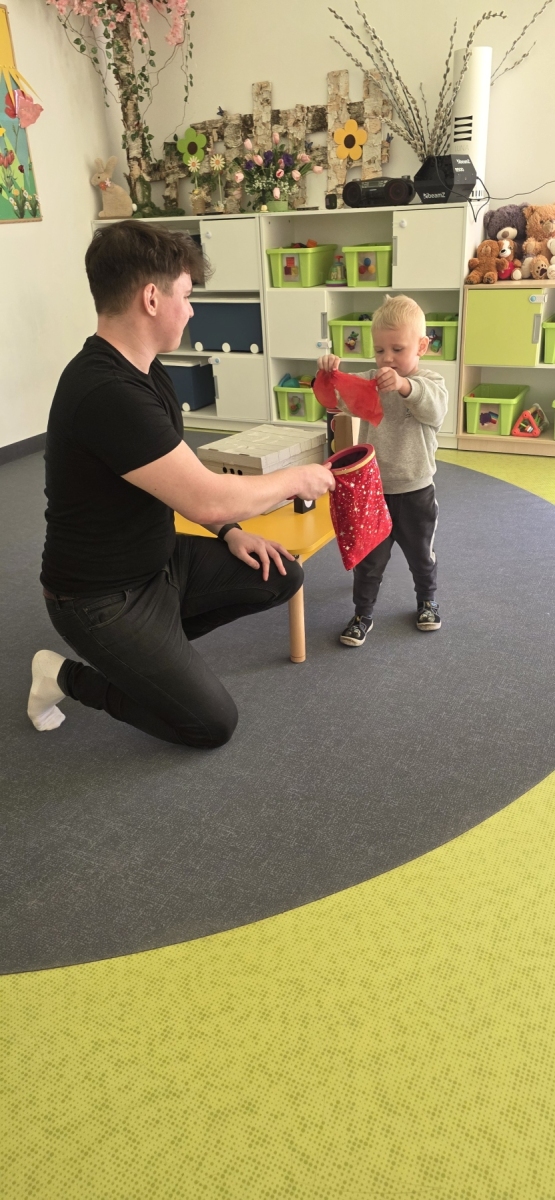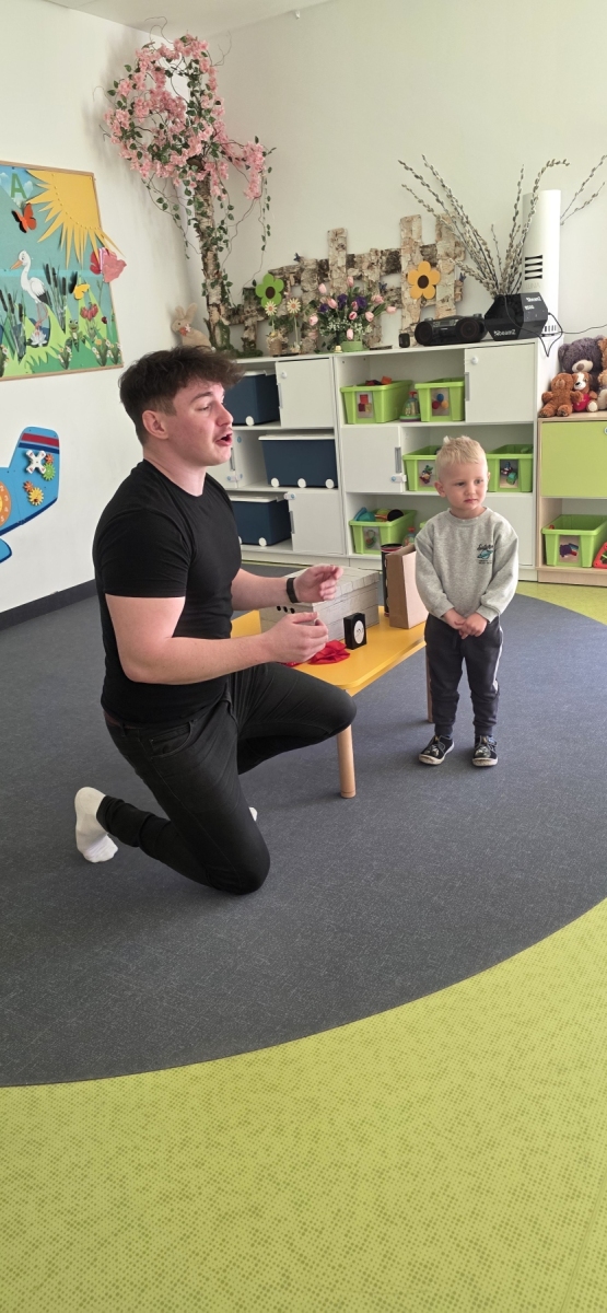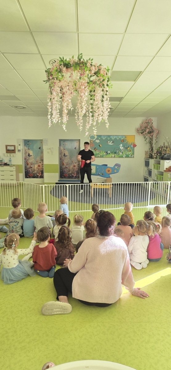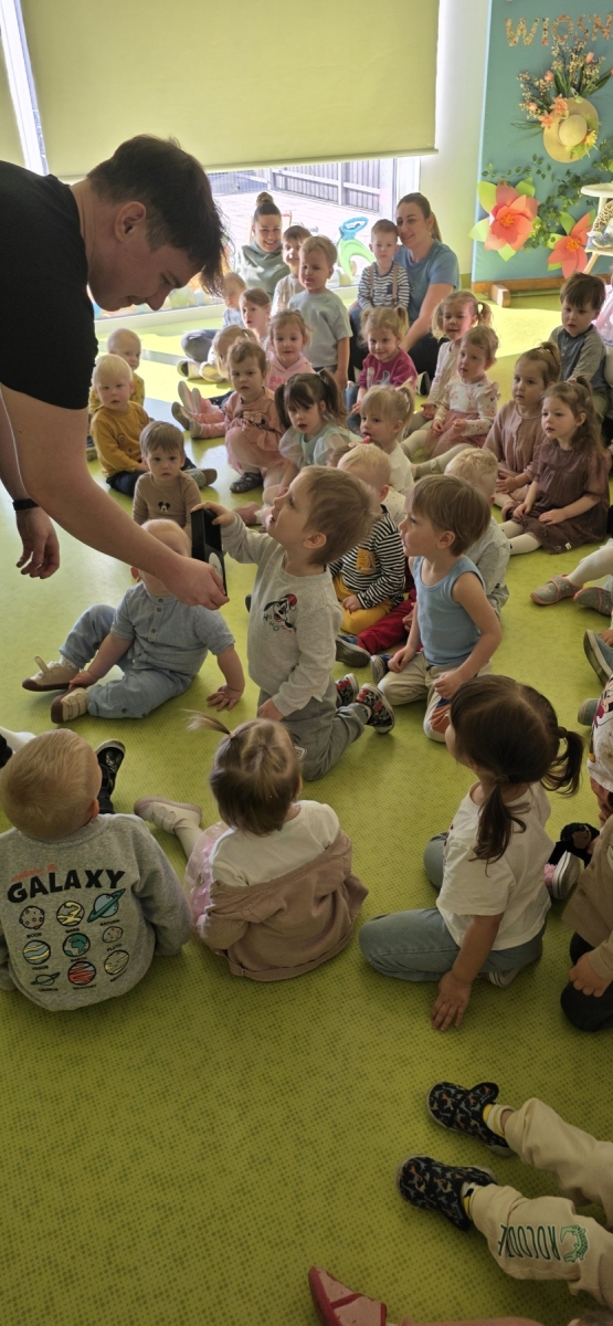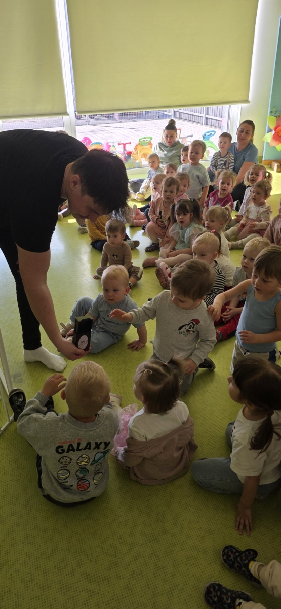 Do naszego żłobka przybył tajemniczy gość. Tym gościem okazał się prawdziwy magik. Iluzjonista zabrał nas do świata czarów i magii, dzięki temu maluszki miały możliwość nauczyć się tajemniczych zaklęć. Zaczarowane sztuczki, humor i zaskakujące momenty wciągnęły widzów bez reszty. Spektakl łączył nowoczesną iluzję, interaktywne elementy i wspaniałą grę aktorską, podczas występu nie zabrakło też chętnych i odważnych ochotników, którzy pomagali mistrzowi w jego pokazie i sami czarowali tworząc niezapomniane przeżycie. Wyprawa do tajemniczego świata dostarczyła wszystkim dzieciom wiele radości i dobrego humoru. Wizyta Magika w żłobku to wyjątkowe i pełne magii wydarzenie, które z pewnością zostanie w pamięci dzieci na długo.