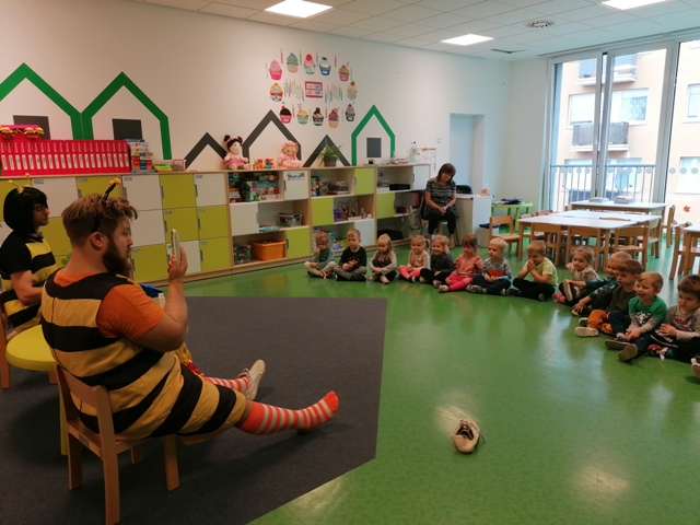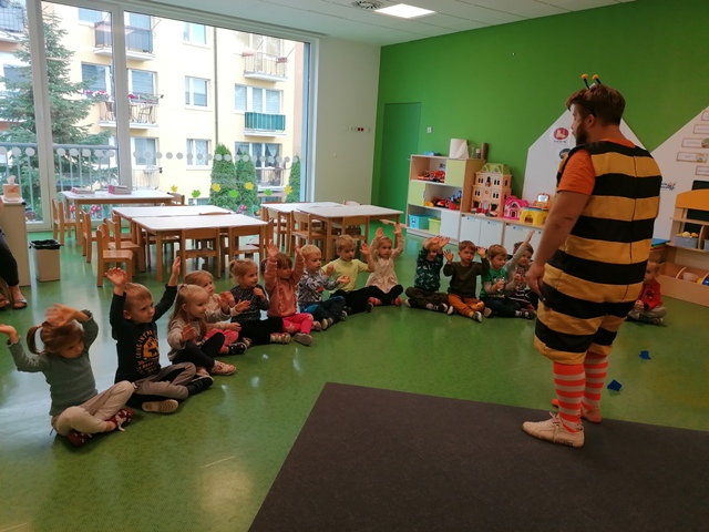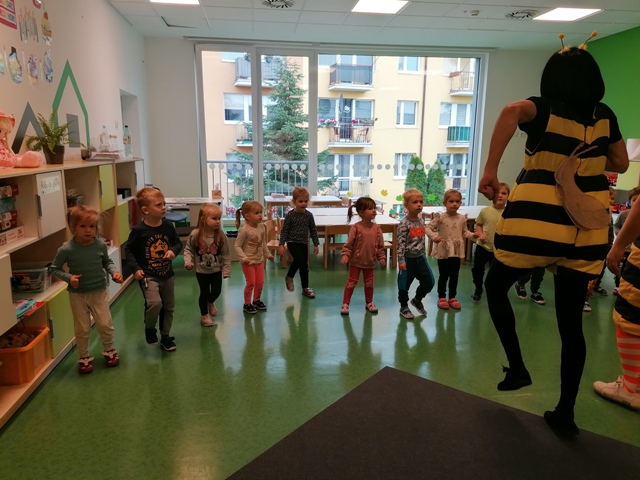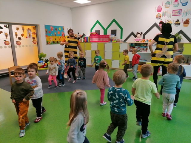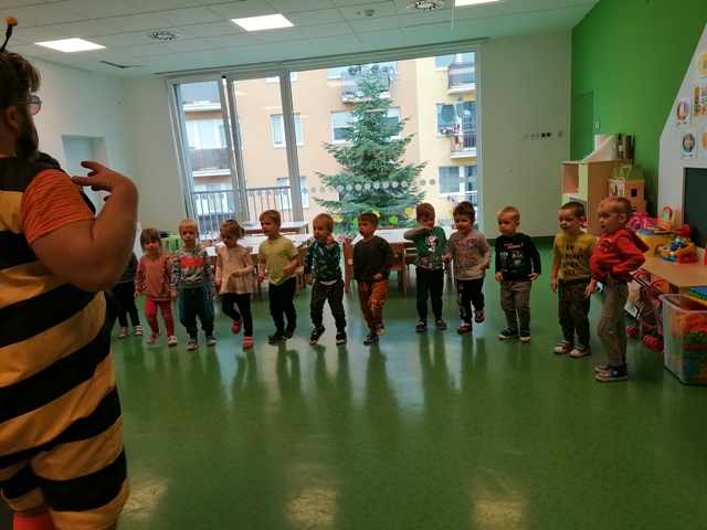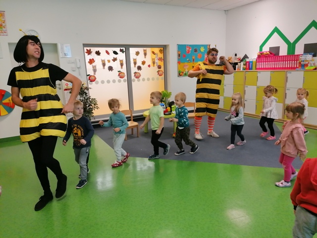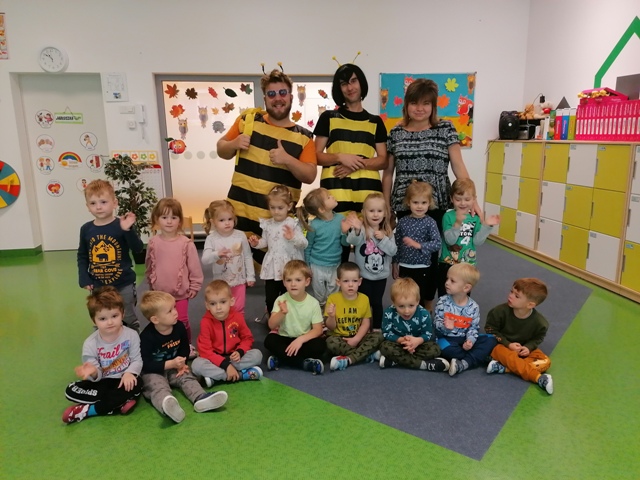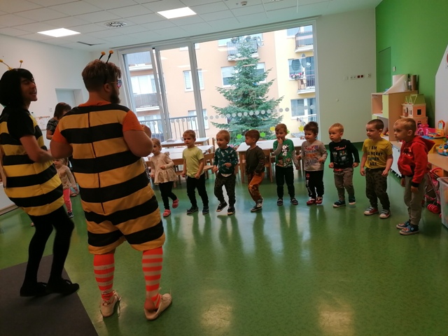 Po pięknym występie w holu przedszkola, dzieci z grupy Jabłuszek i Gruszeczek udały się do grupy Truskawek, gdzie również mogli podziwiać piękny występ 5 latków.