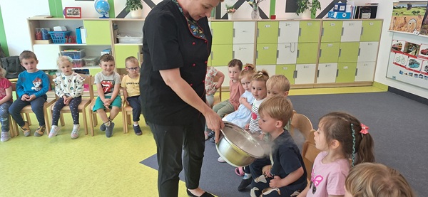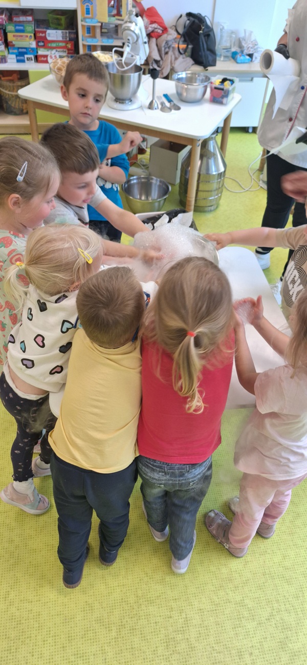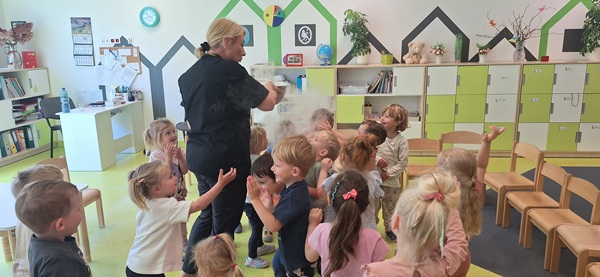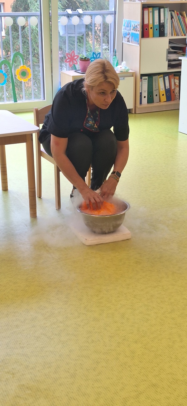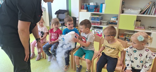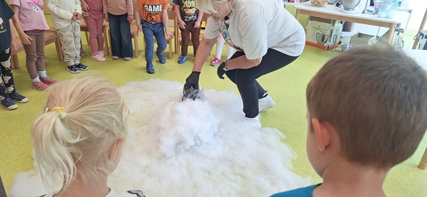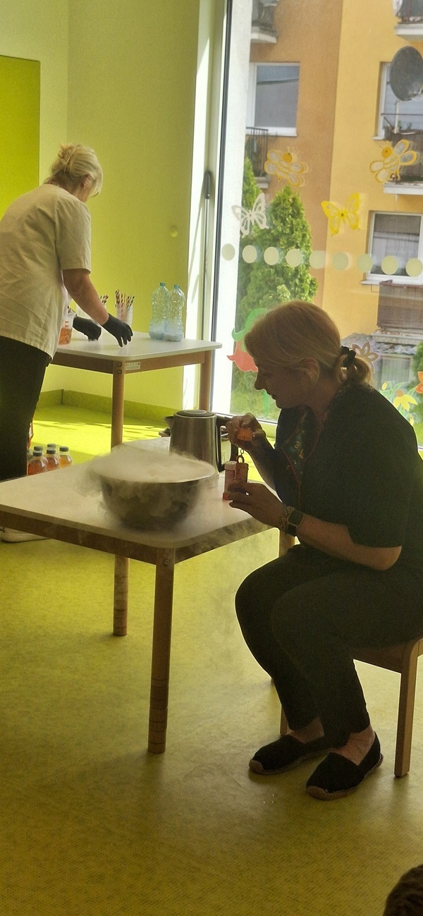 Kuchnia molekularna to rodzaj kuchni wykorzystującej wiedzę naukową do przygotowania niestandardowych potraw. Pod okiem prowadzącego dzieci odkrywały tajemnice kuchni molekularnej poznając właściwości i zastosowanie ciekłego azotu. Warsztaty kuchni molekularnej dla dzieci to okazja do rozbudzania zainteresowań kulinarno- chemicznych. Na zajęciach dzieci poznały zasady bezpieczeństwa, a młodzi kucharze wykonali zdrowe lody owocowe w wafelku i dymiące smocze chrupki. Dzieci sprawdziły, czy balon może się skurczyć i napompować bez dotykania go.