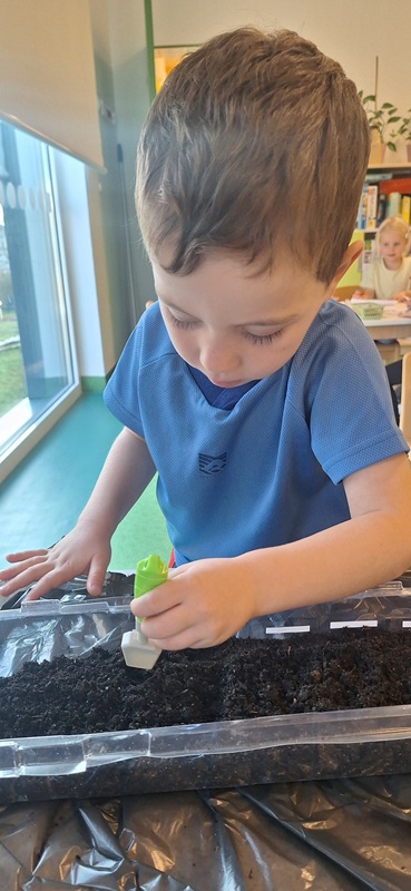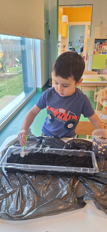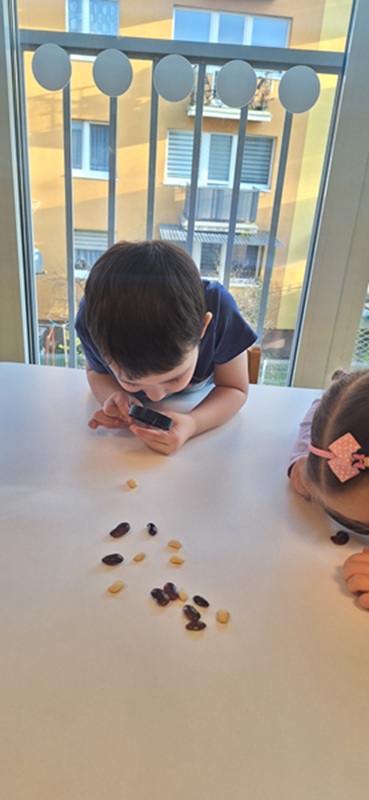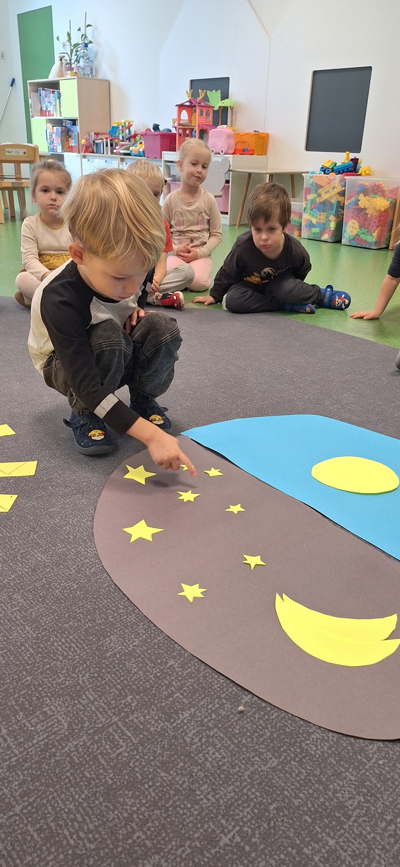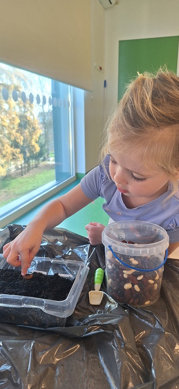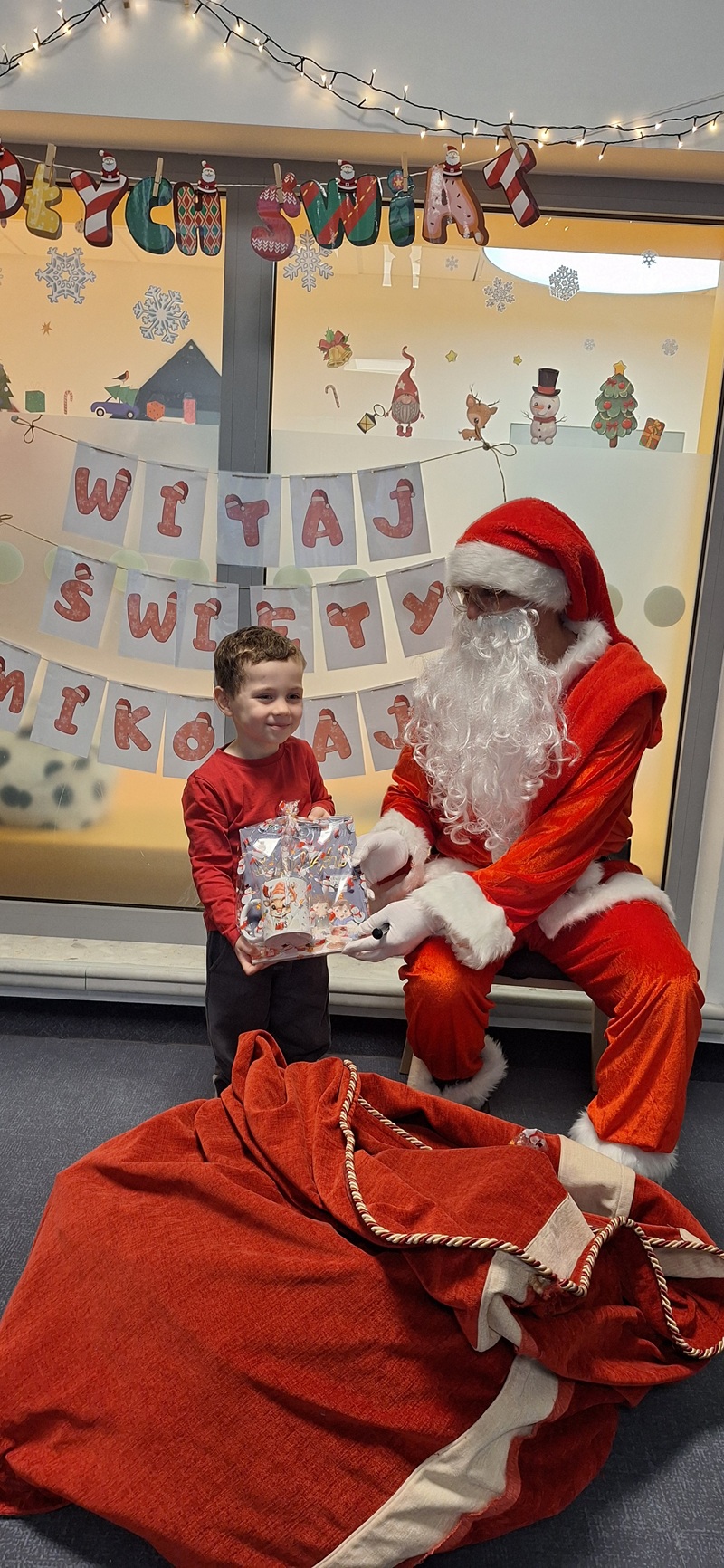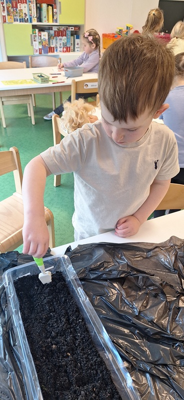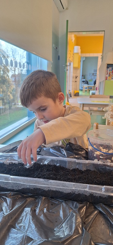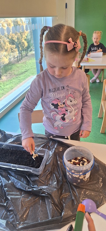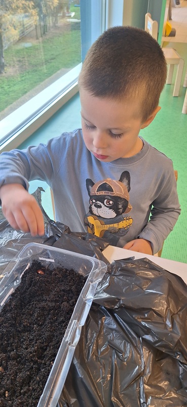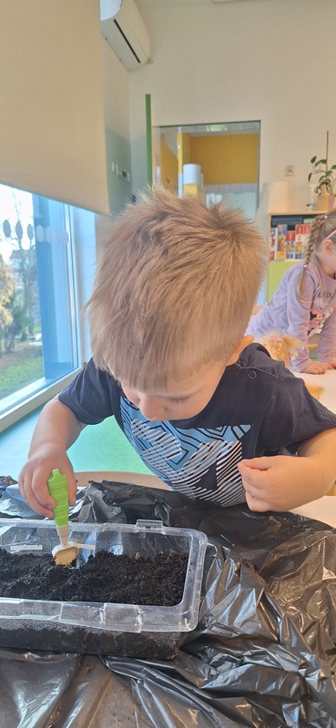 Następnie dzieci malowały zimowy krajobraz pod folią. Malowanie pod folią to niezwykła zabawa plastyczna dla dzieci. Najbardziej interesujące jest tu doznawanie własnej mocy sprawczej i obserwowanie efektów działań przez przezroczystą folię. To świetna zabawa plastyczna, badawcza, sensoryczna i terapeutyczna.