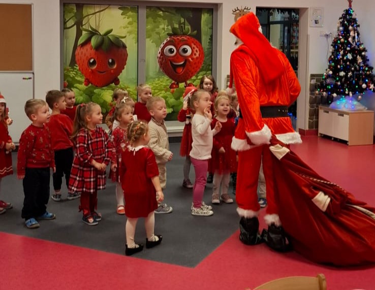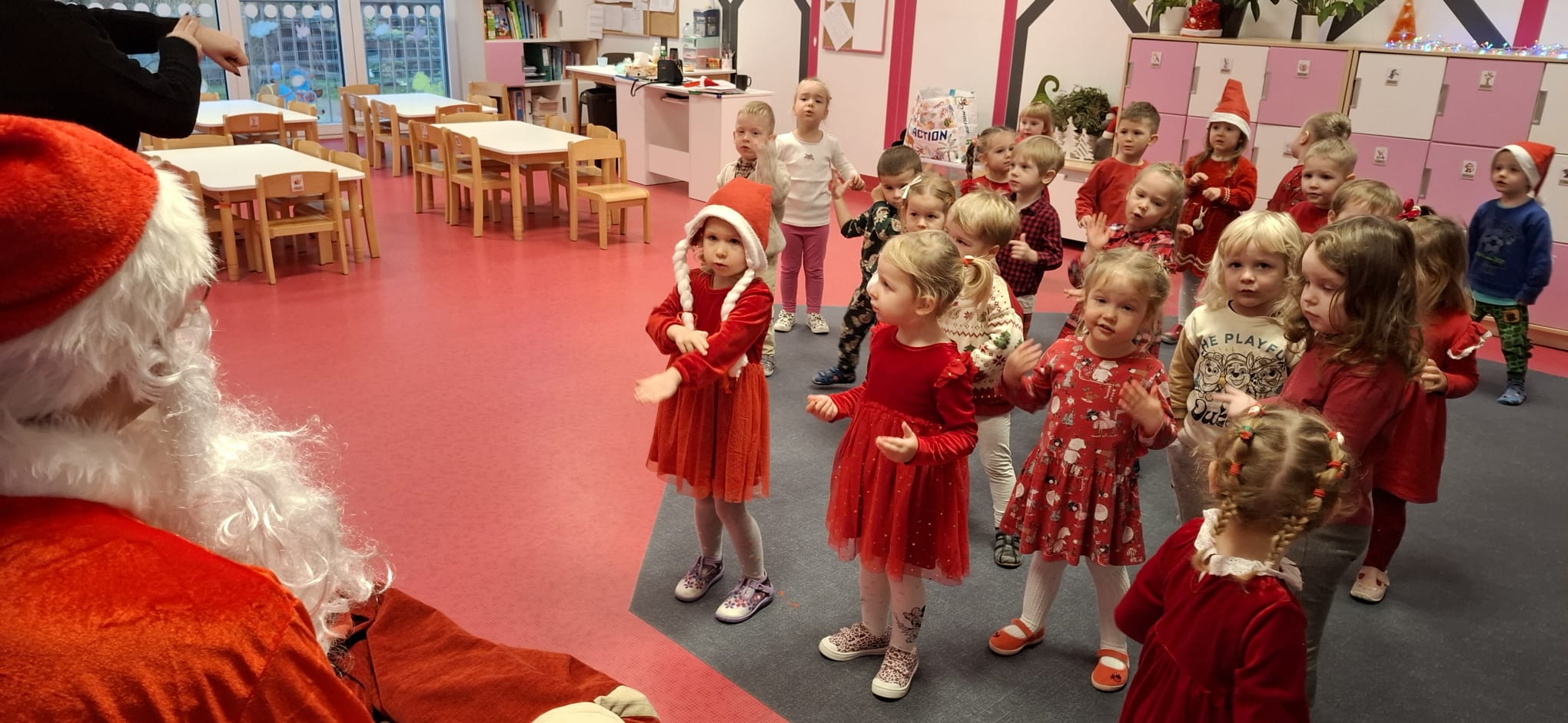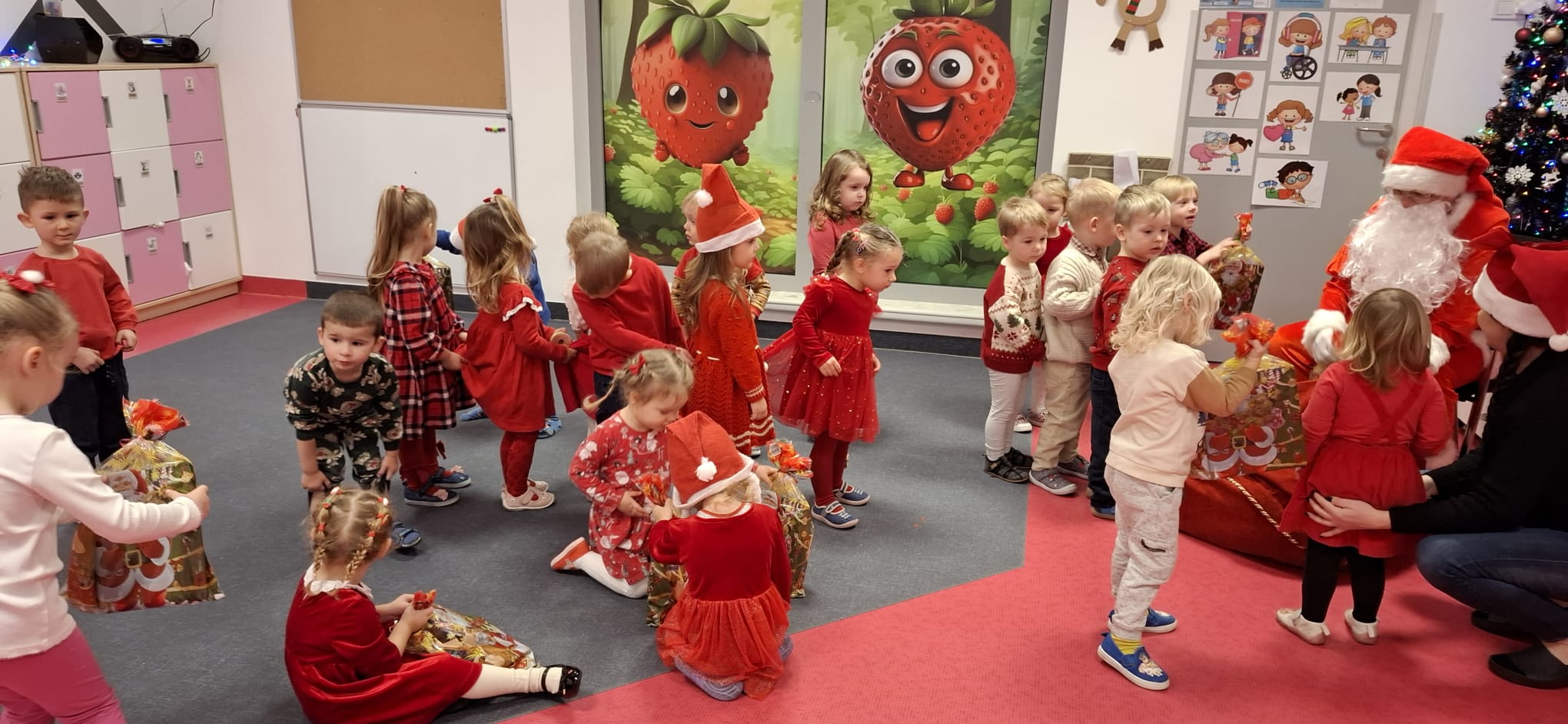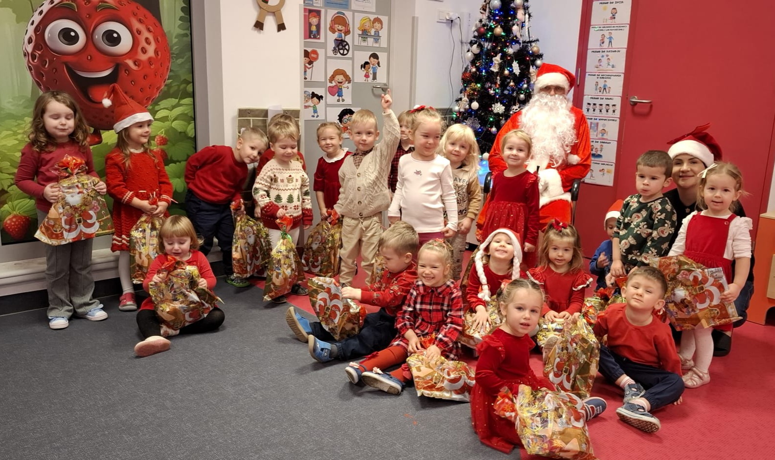 5 grudnia nasze przedszkole odwiedził bardzo miły i długo oczekiwany gość. Miał czerwony strój, długą białą brodę oraz wielki worek z prezentami. To nie mógł być nikt inny tylko MIKOŁAJ. Spotkanie przebiegło w bardzo radosnej atmosferze. Poziomki zaśpiewały Mikołajowi piosenkę oraz zaprezentowały krótki występ. Wszystkie dzieci były grzeczne , dlatego też Mikołak obdarował je prezentami. Dziękujemy za odwiedziny i do zobaczenia za rok ! 😀