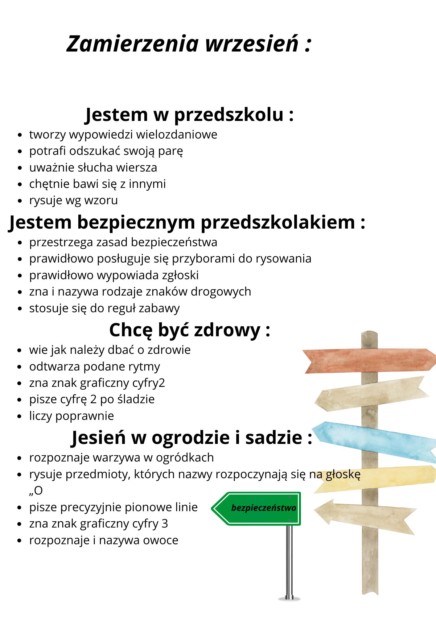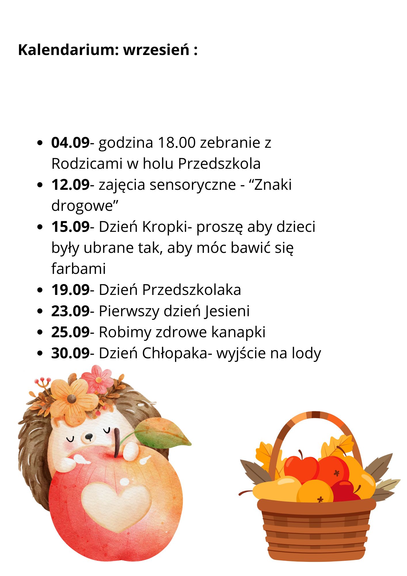 Kalendarium i treści programowe na miesiąc wrzesień dla Grupy Śliweczki