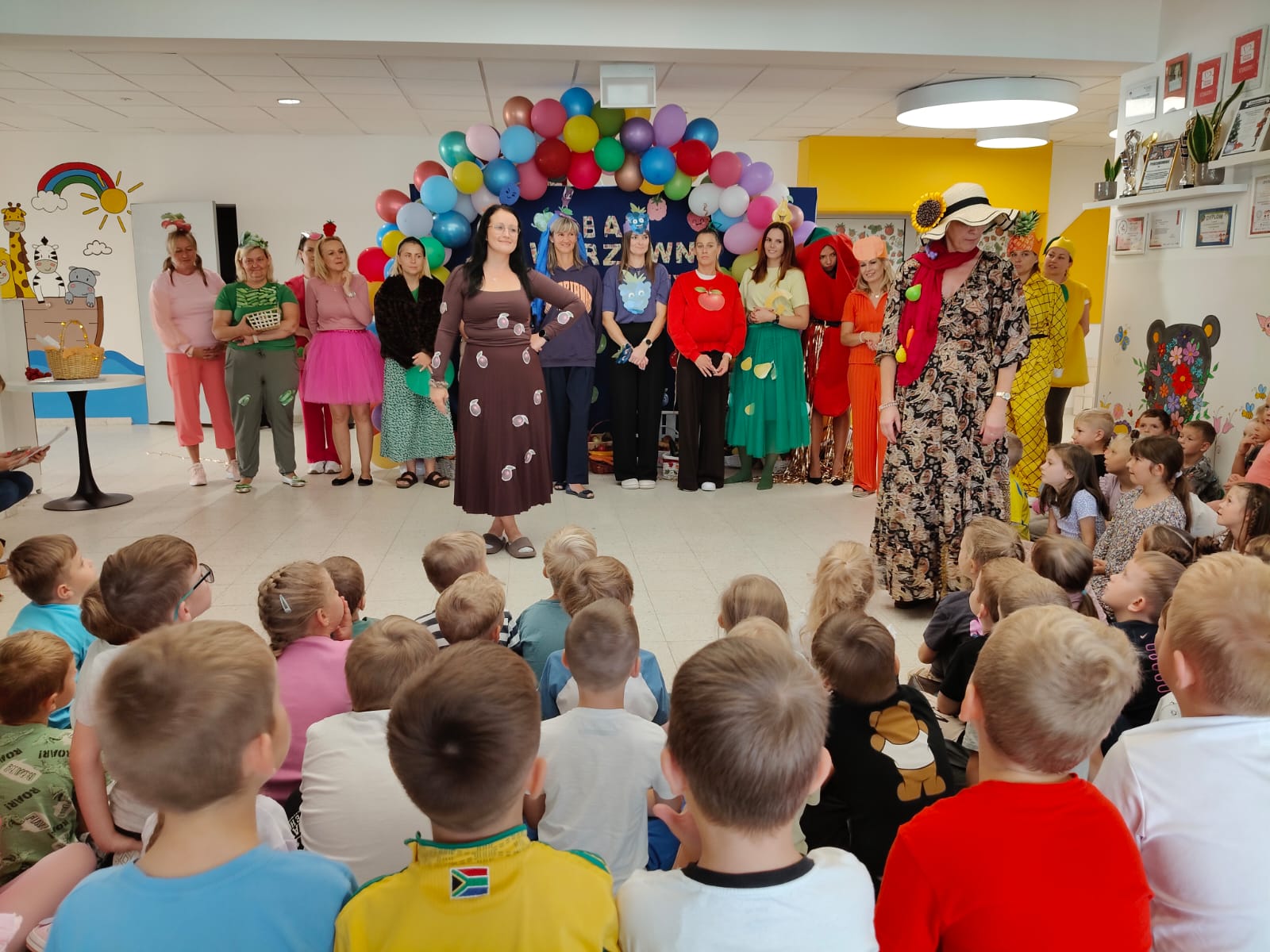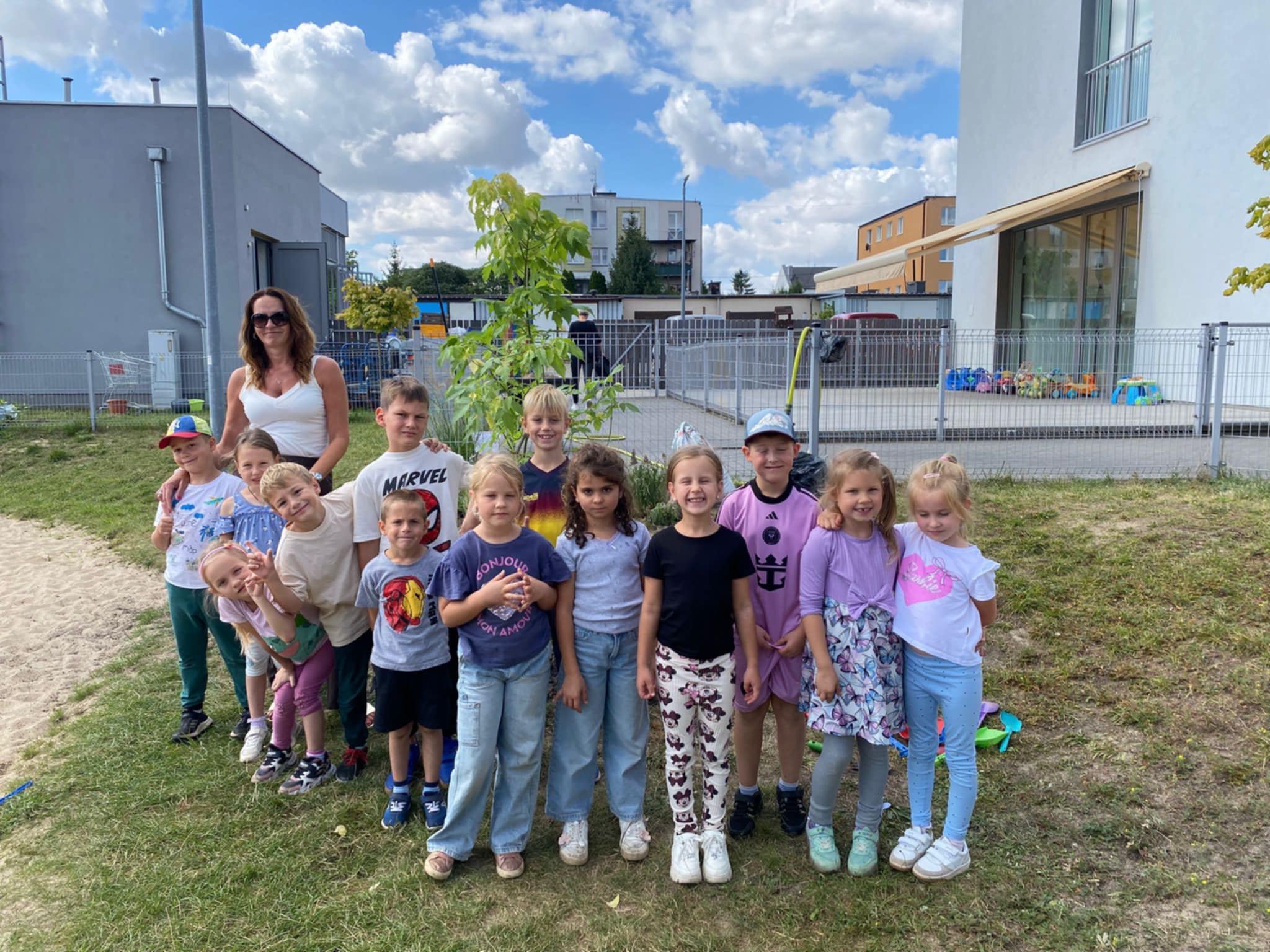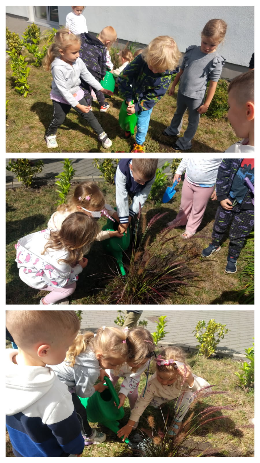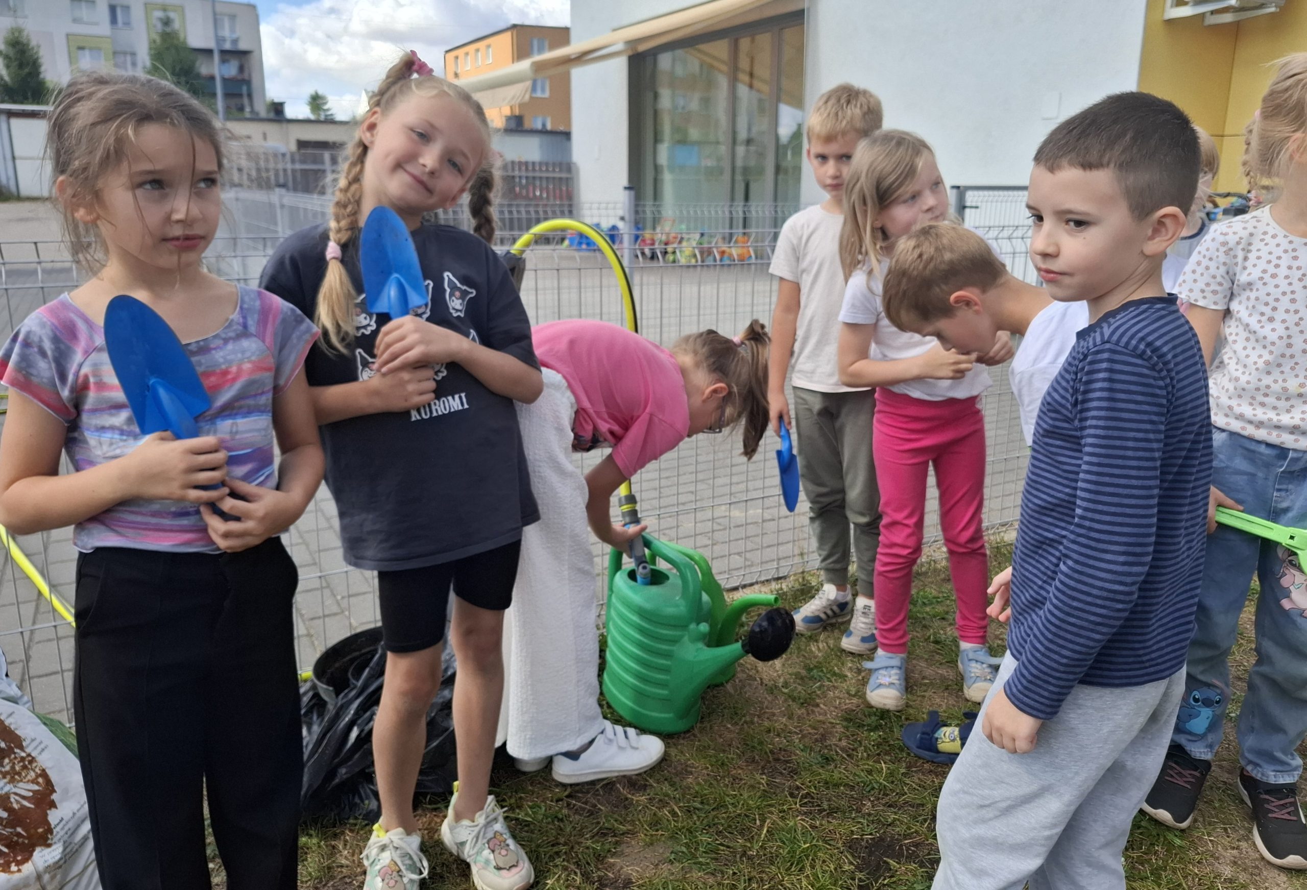 Jeszcze przed wakacjami Brzoskwinki i Boróweczki posadziły kwiaty przed wejściem do przedszkola.