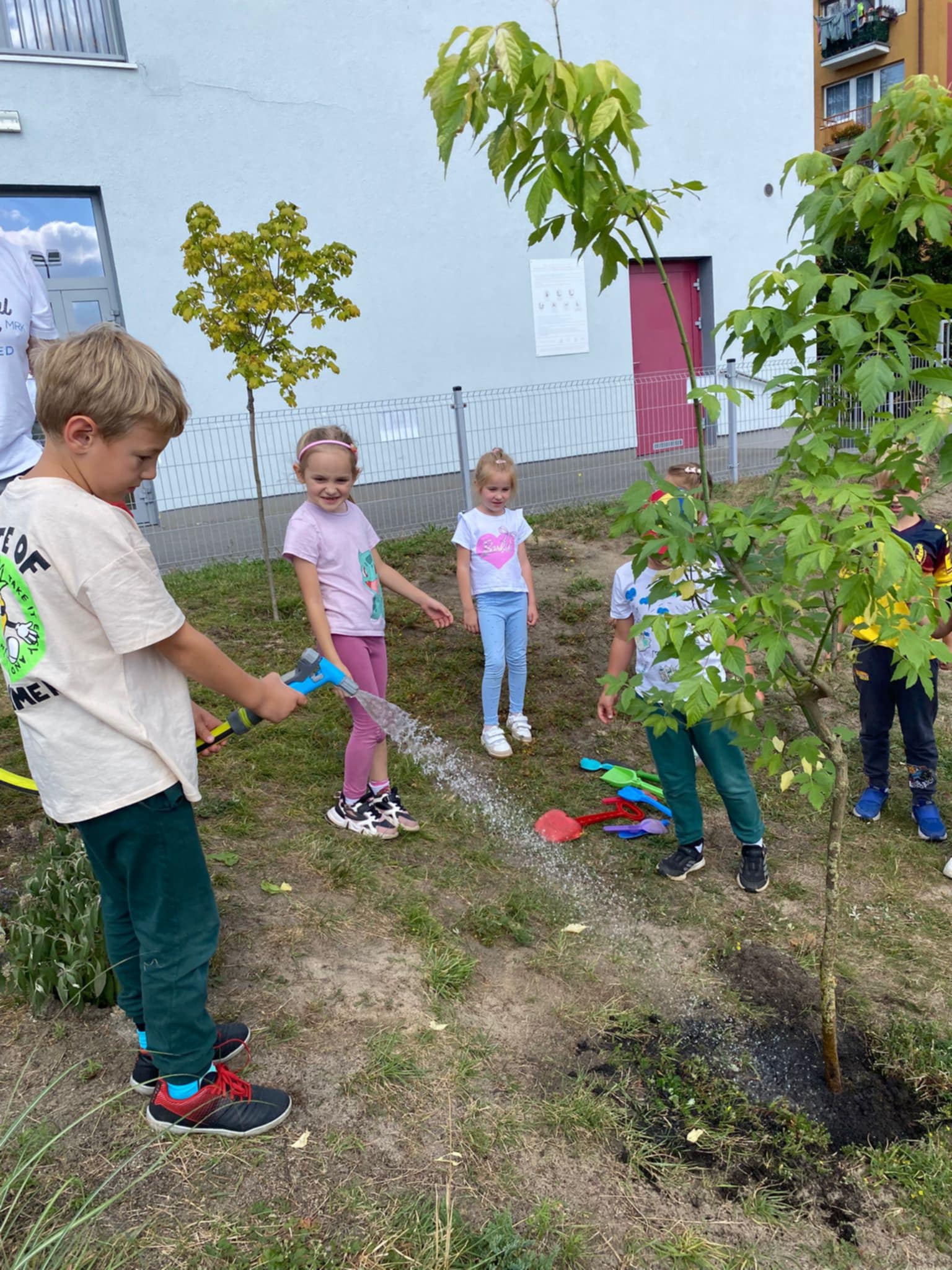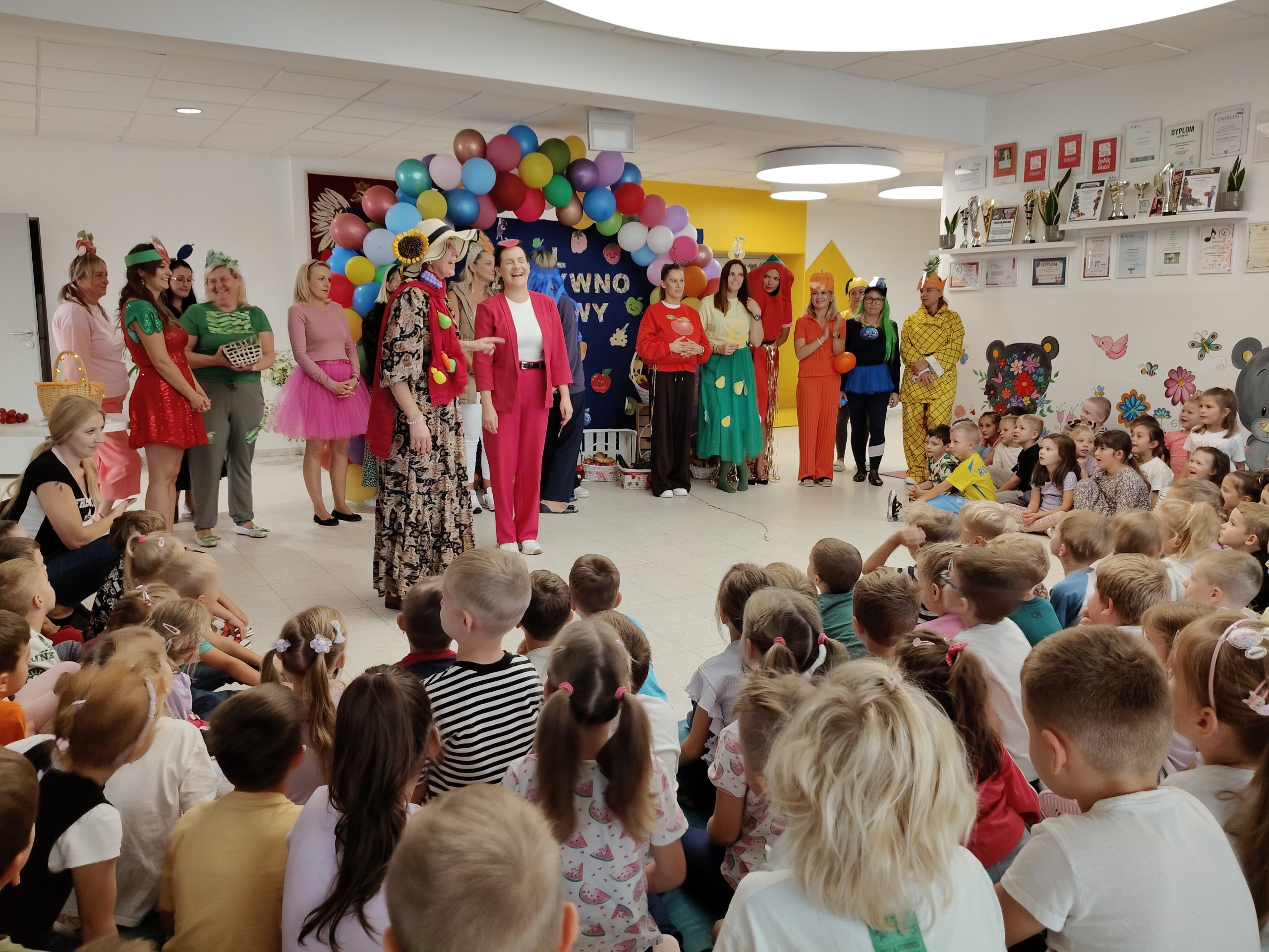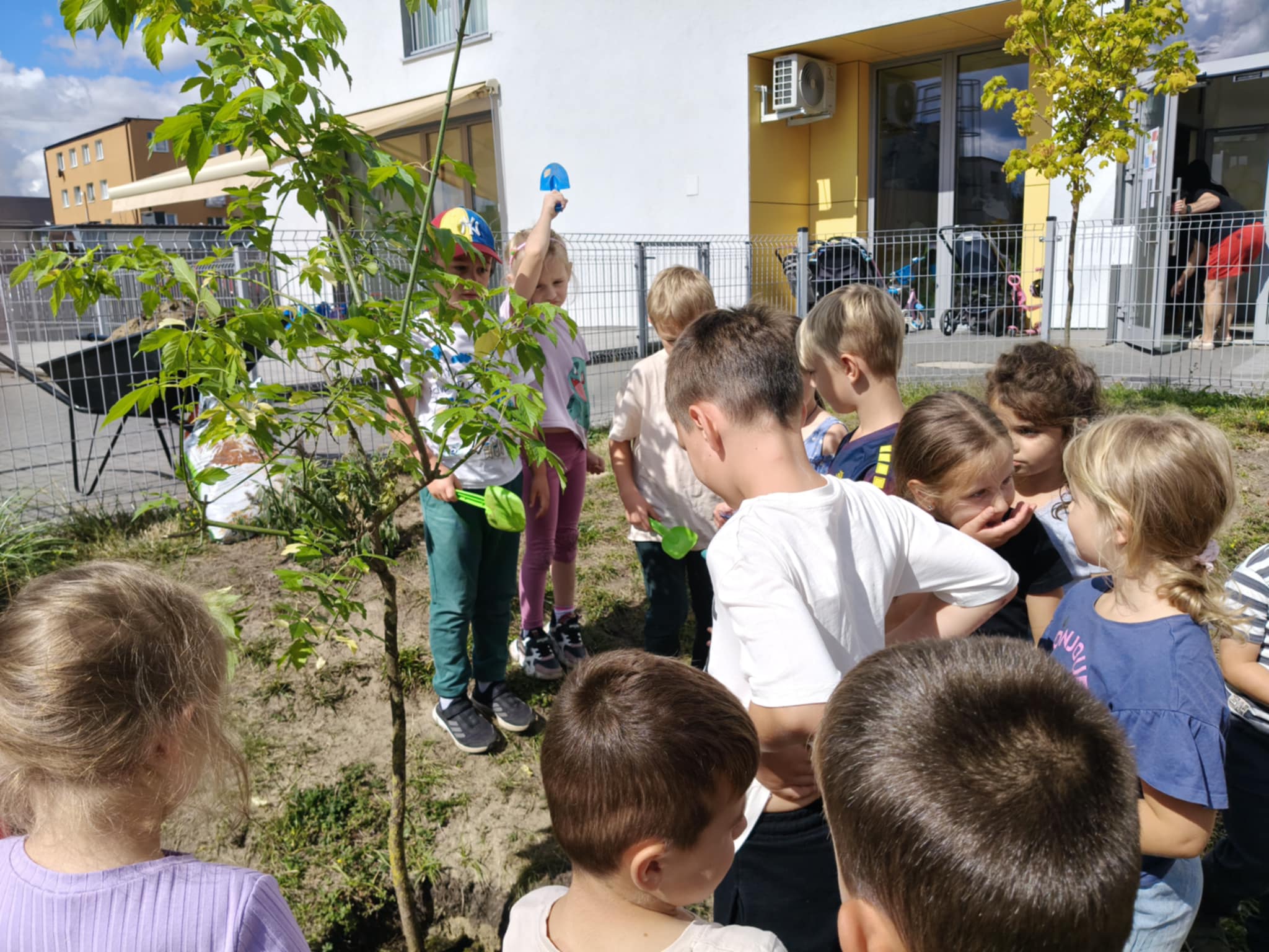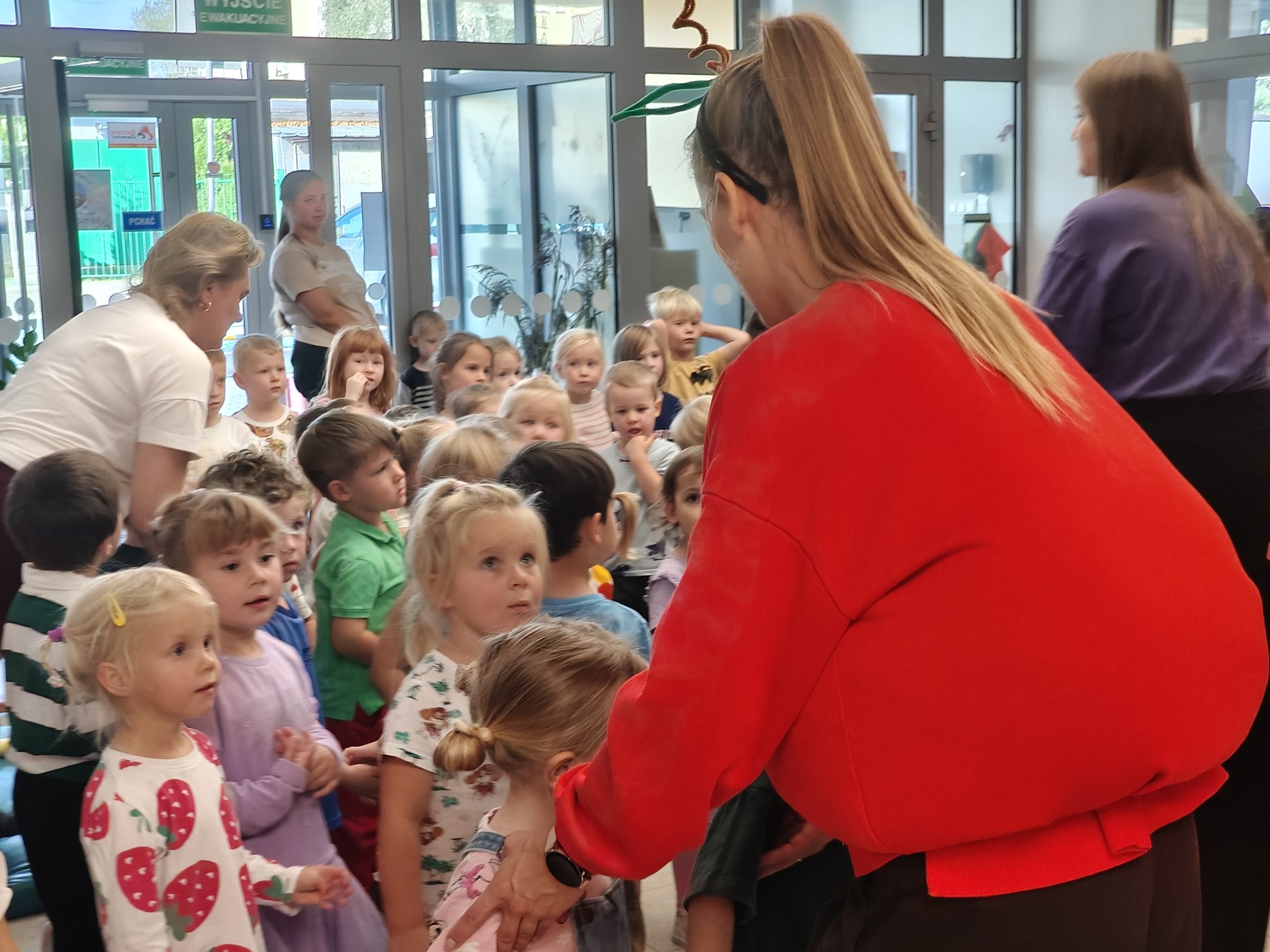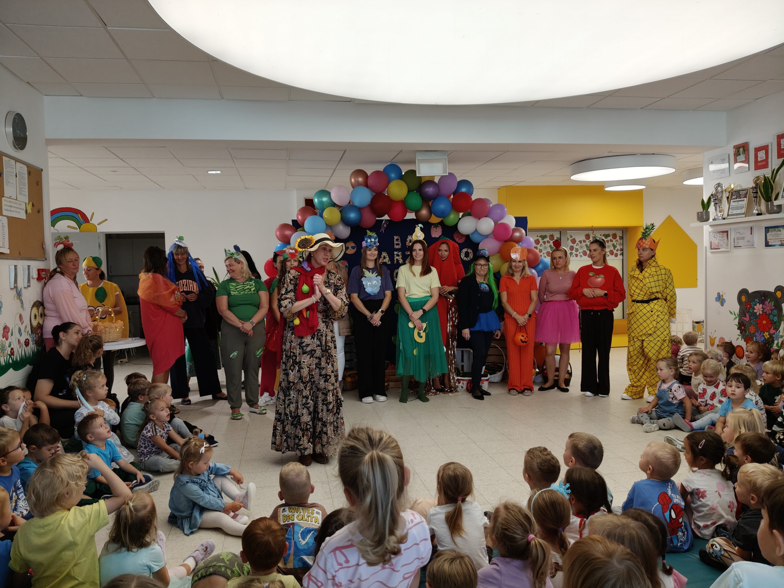Jeszcze przed wakacjami Brzoskwinki i Boróweczki posadziły kwiaty przed wejściem do przedszkola.