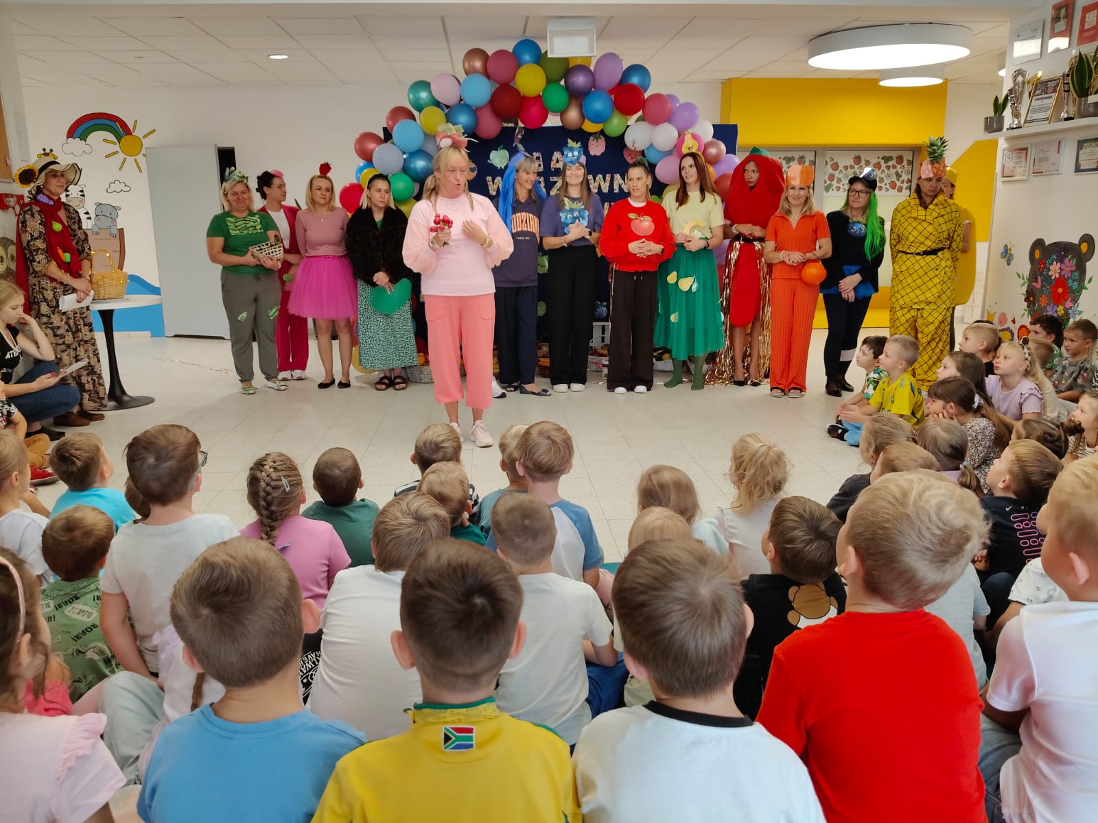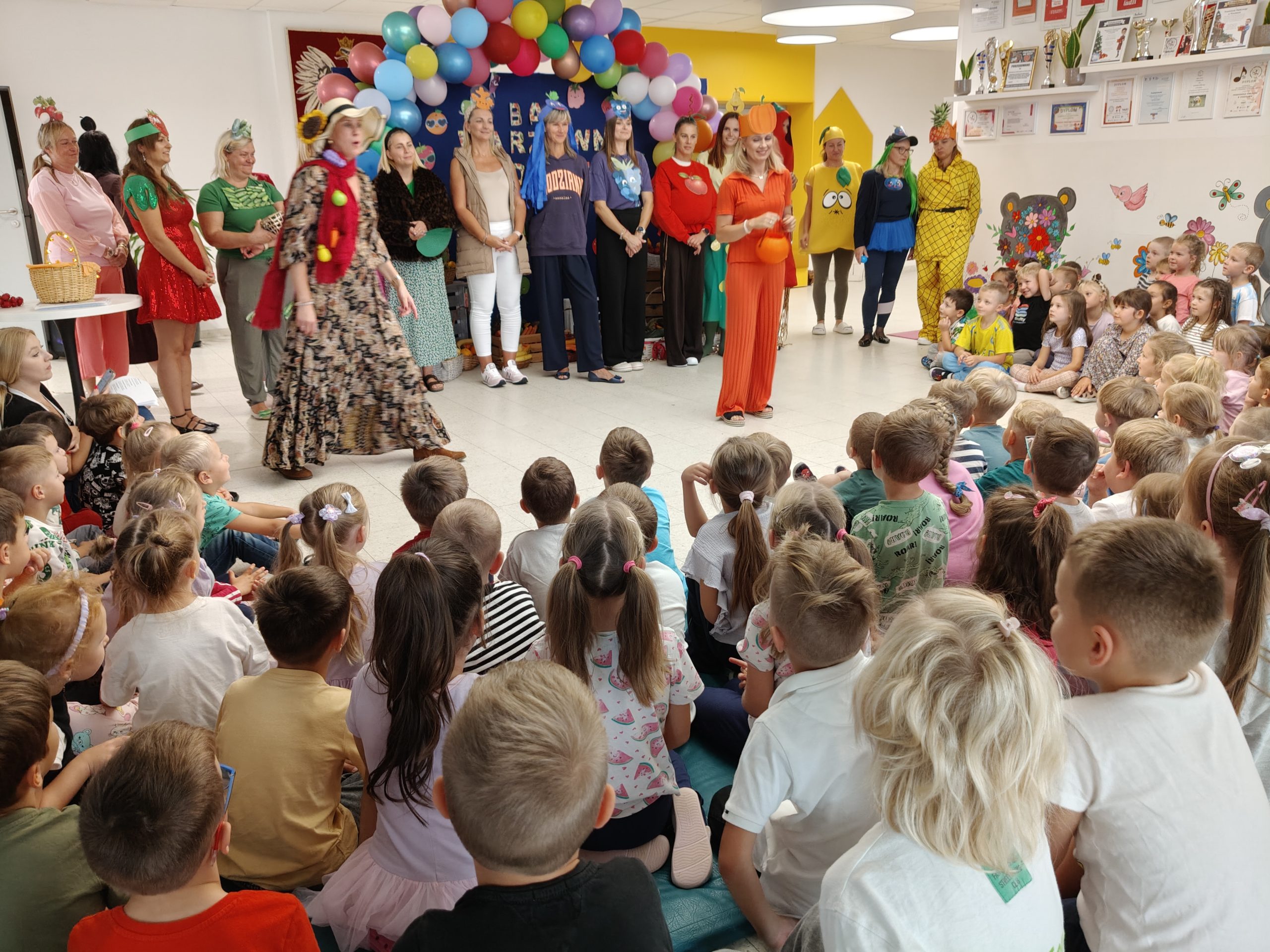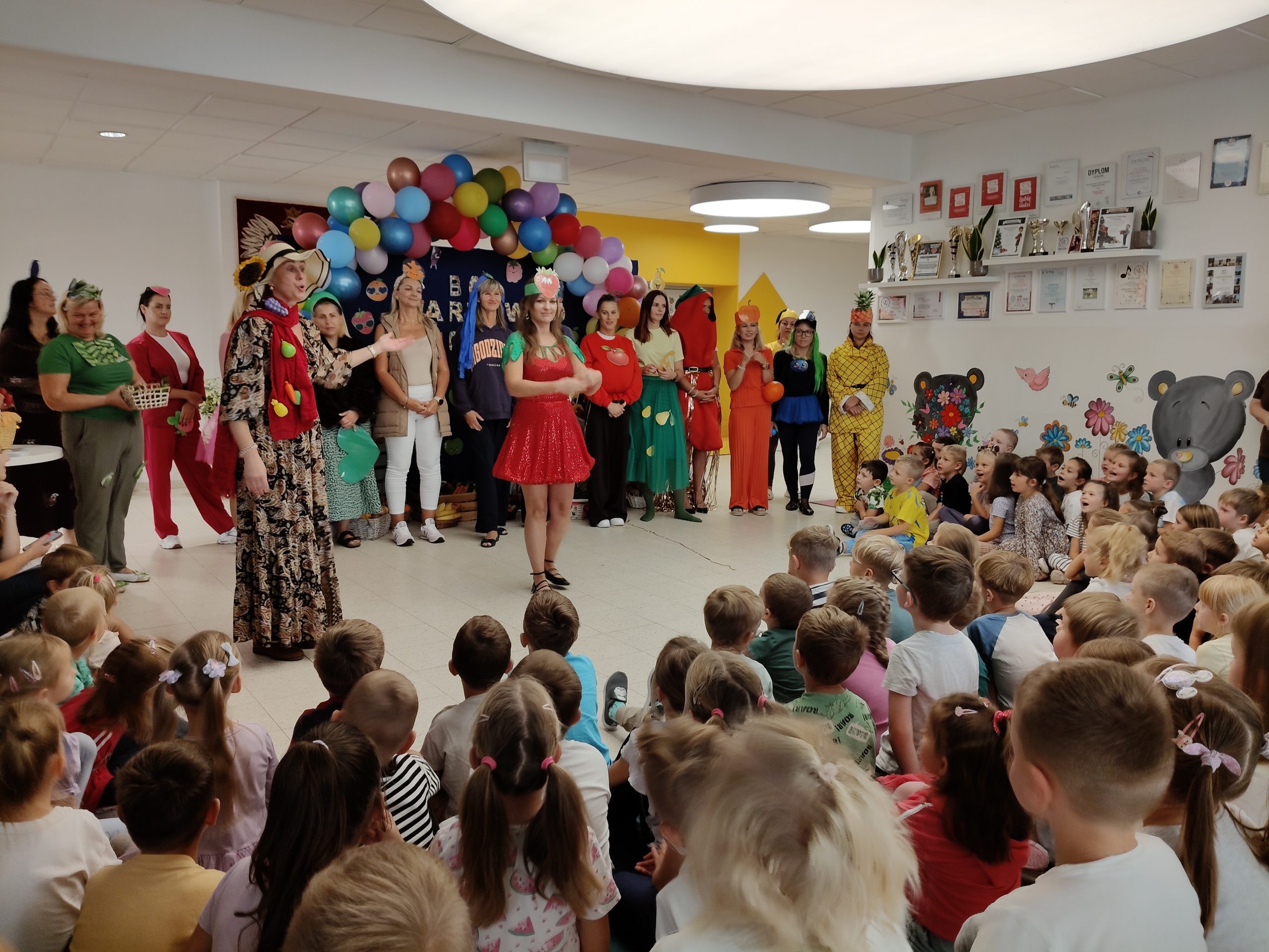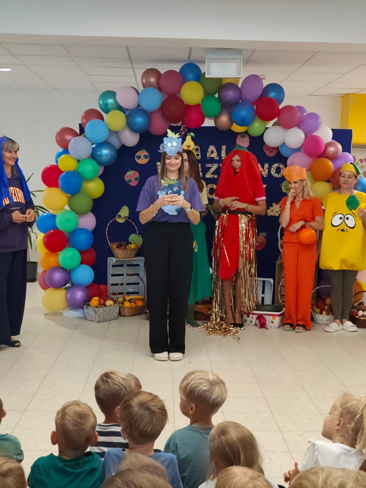 Jeszcze przed wakacjami Brzoskwinki i Boróweczki posadziły kwiaty przed wejściem do przedszkola.