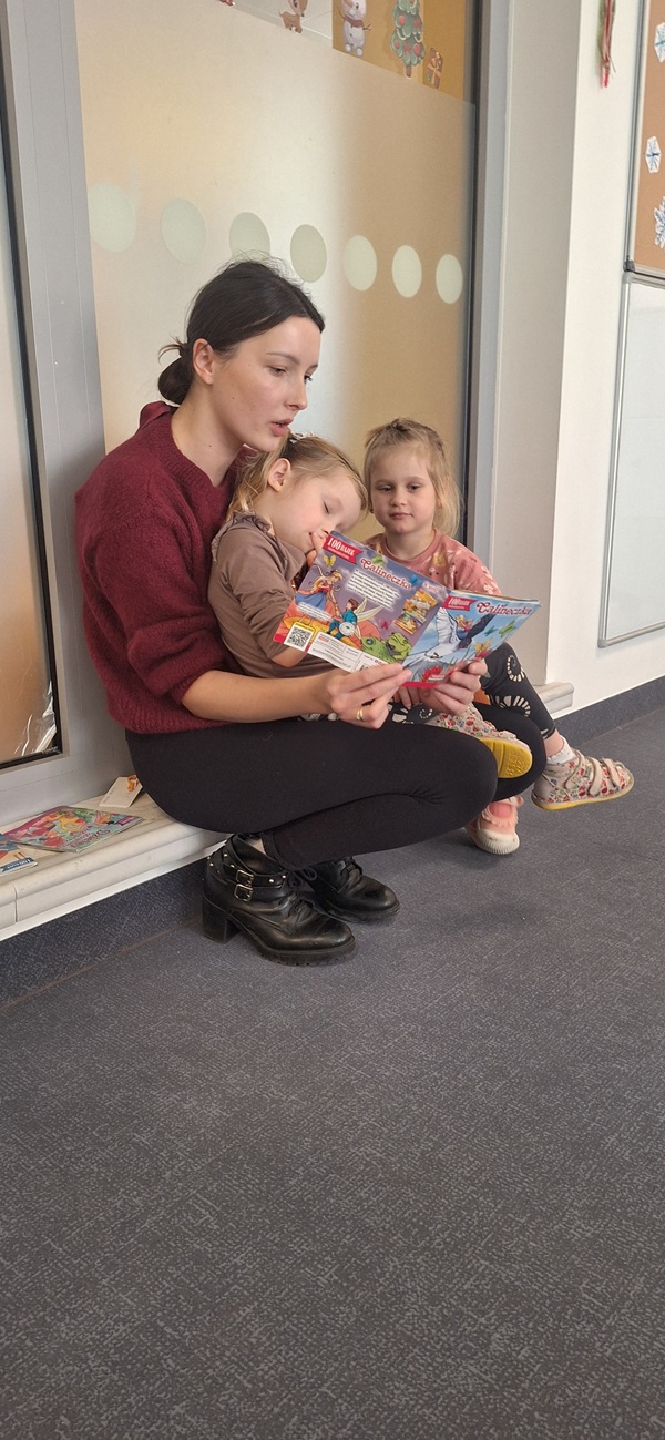 Systematyczny kontakt dziecka z książką aktywizuje jego rozwój intelektualny i emocjonalny, budzi wrażliwość estetyczną, sprzyja rozwijaniu postaw twórczych oraz wyzwala ekspresję dziecięcą. Dziękujemy mamie Zosi za czytanie bajeczek w naszej grupie. Piękne i pouczające bajki pod tytułem „Złota rybka” i „Calineczka” bardzo spodobały się dzieciom. Przedszkolaki słuchały bajek z zapartym tchem domagając się dalszych opowieści. Spotkanie dało wiele radości dzieciom. Dziękujemy mamie Zosi za spędzony czas. Dziękujemy za odwiedziny i zapraszamy kolejnych rodziców!