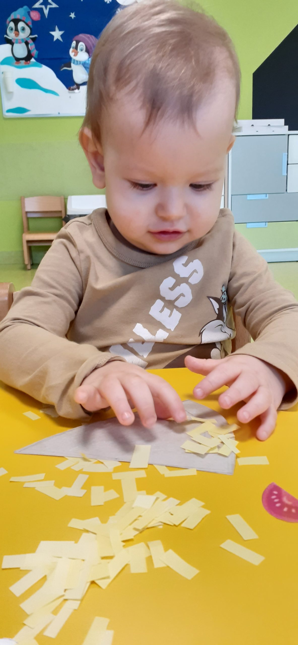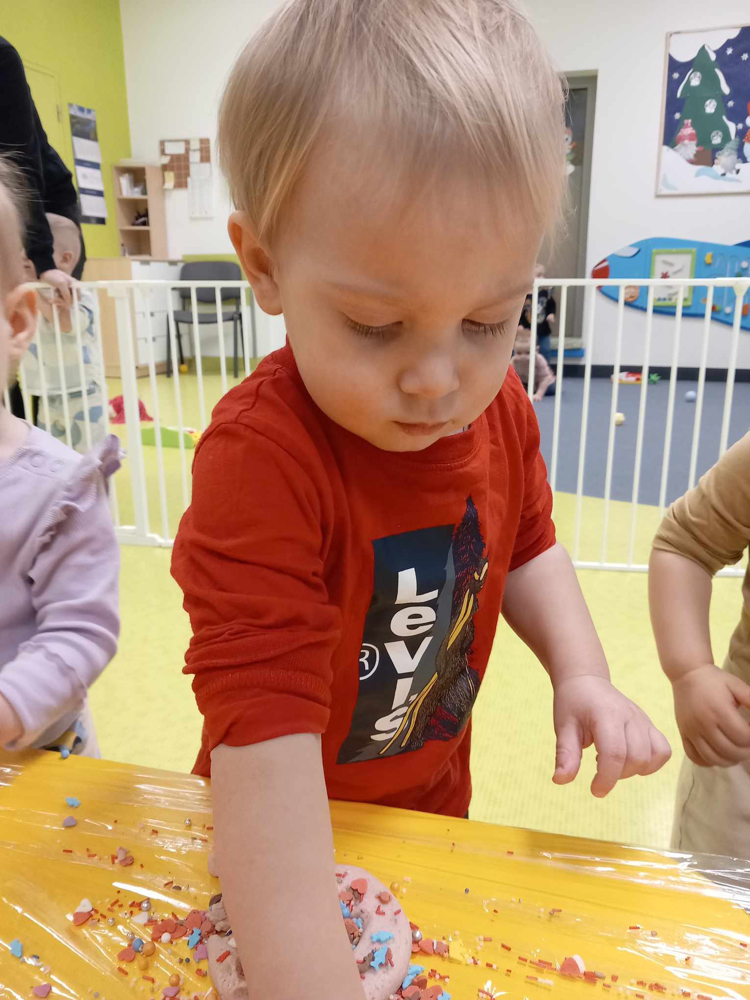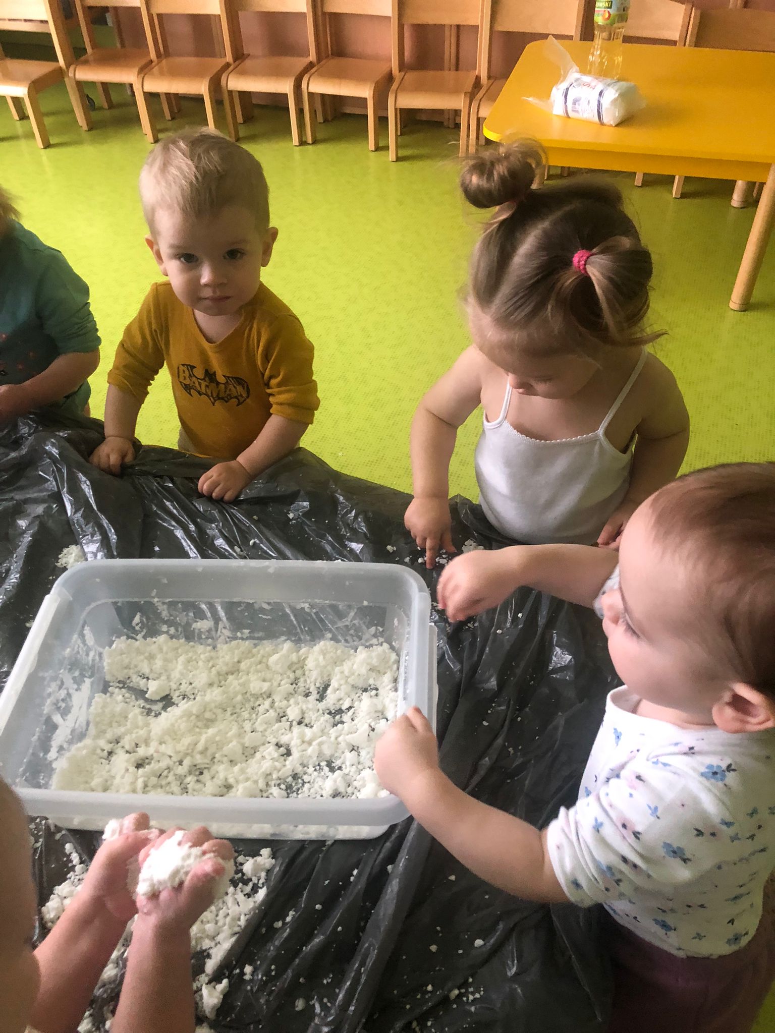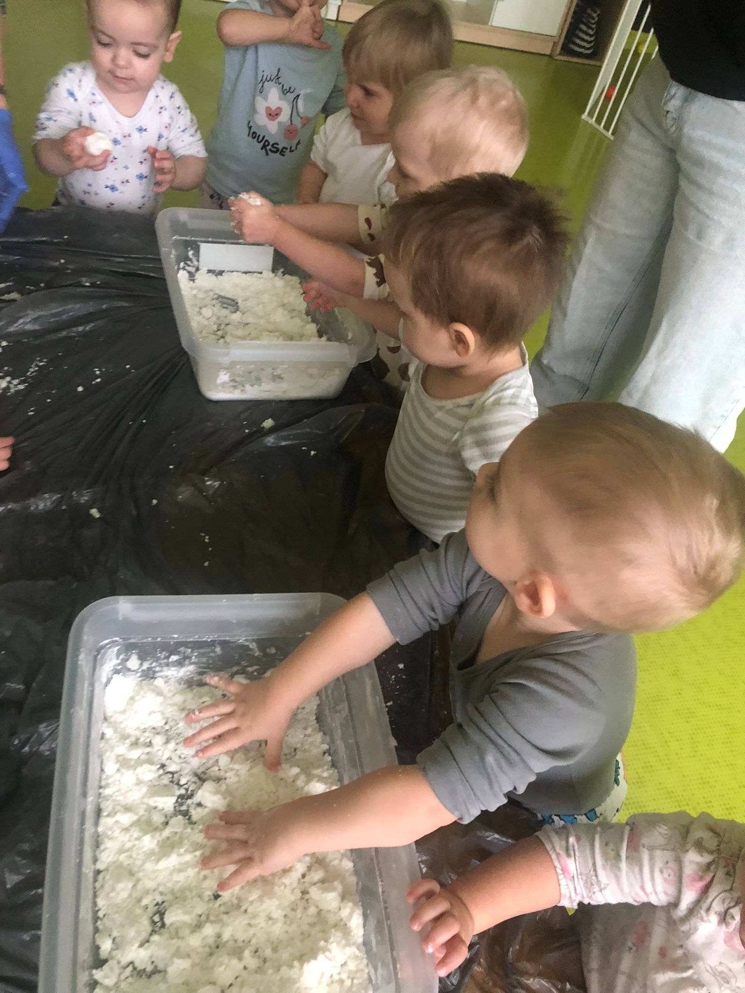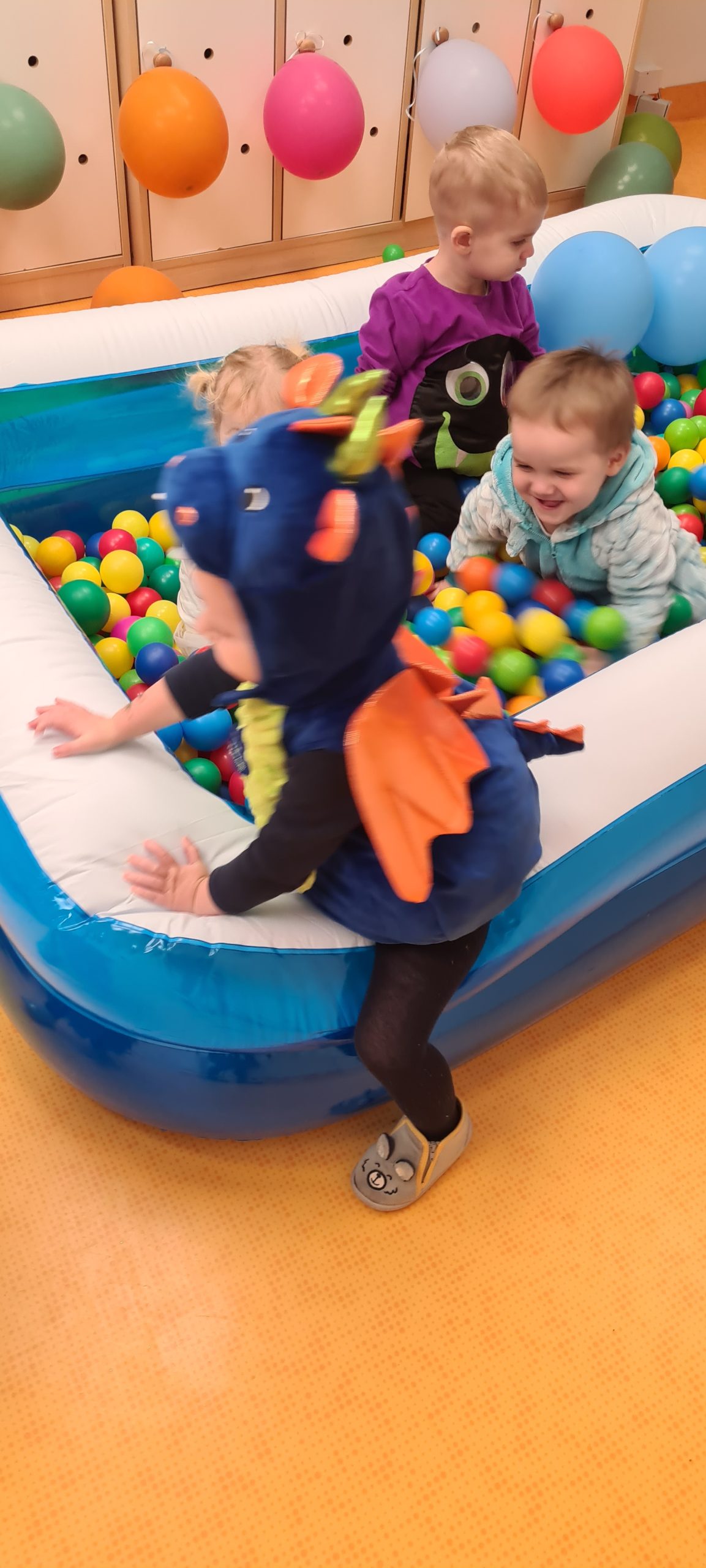 Dziś obchodziliśmy „Dzień Dinozaura”. Zajęcia rozpoczęliśmy od zabawy z piaskiem kinetycznym. Nasi mali odkrywcy mieli za zadanie odszukać dinozaury zasypane w piasku. Kolejne zadanie to tropienie dinozaurów po śladach. Na koniec zajęć była fotościanka. Maluchy dziś się świetnie bawili, a takie zajęcia sprawiają im wiele radości.