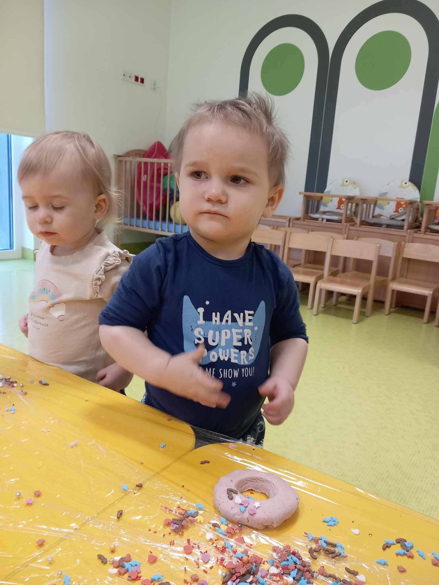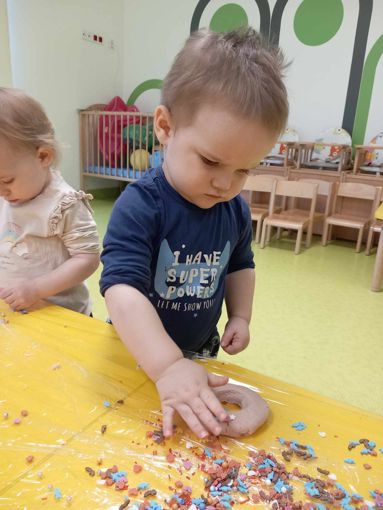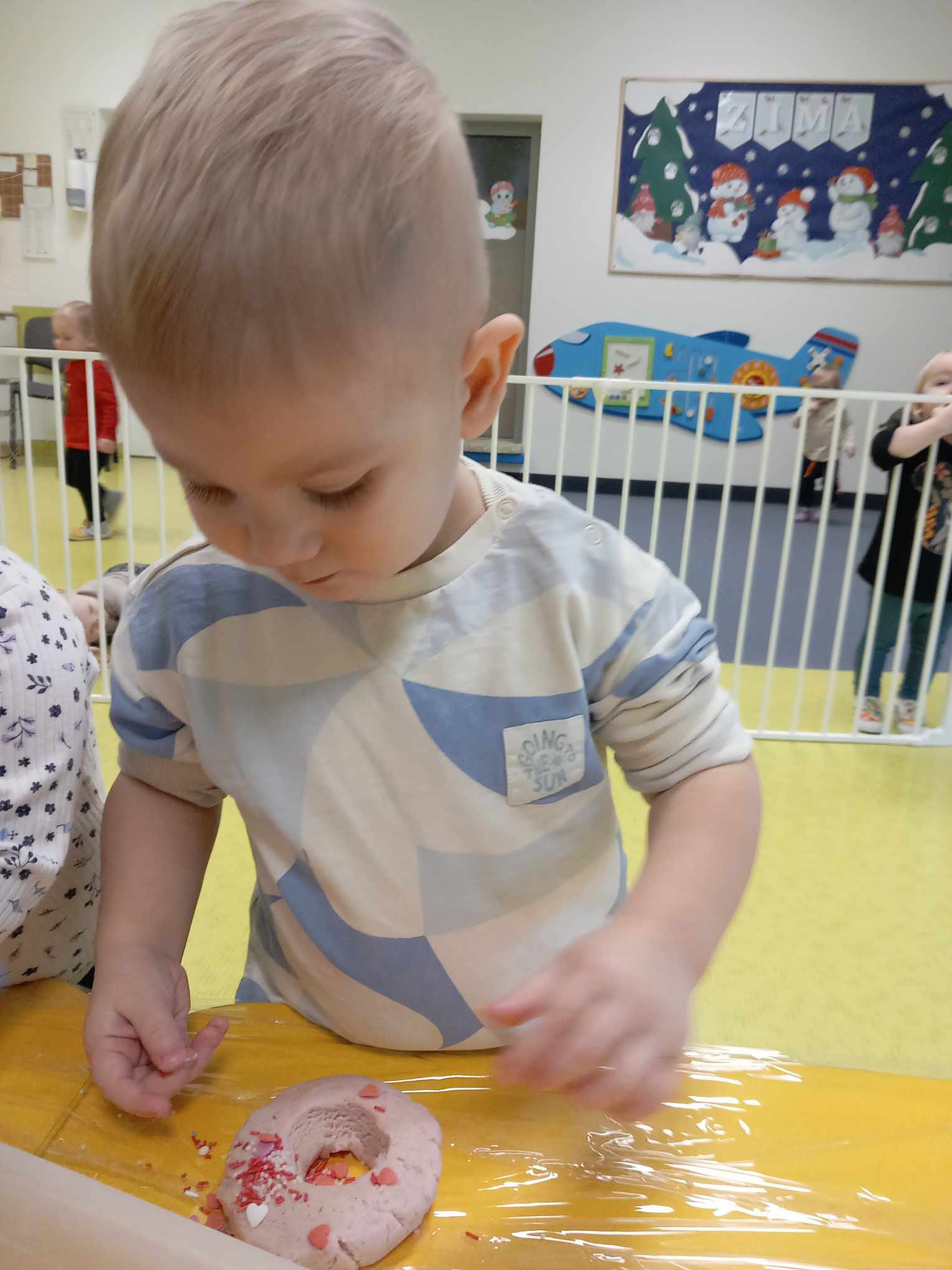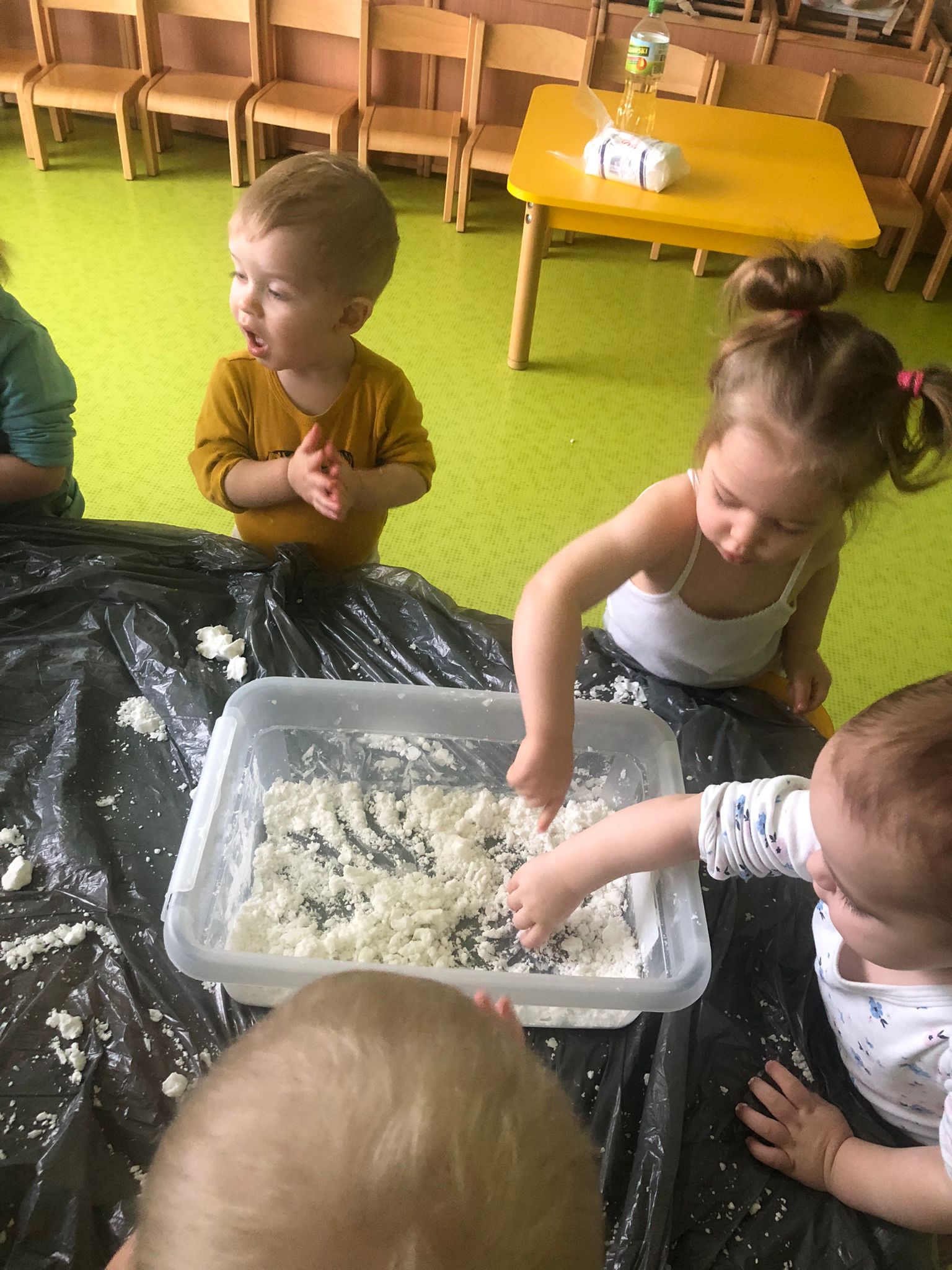 Dziś obchodziliśmy „Dzień Dinozaura”. Zajęcia rozpoczęliśmy od zabawy z piaskiem kinetycznym. Nasi mali odkrywcy mieli za zadanie odszukać dinozaury zasypane w piasku. Kolejne zadanie to tropienie dinozaurów po śladach. Na koniec zajęć była fotościanka. Maluchy dziś się świetnie bawili, a takie zajęcia sprawiają im wiele radości.