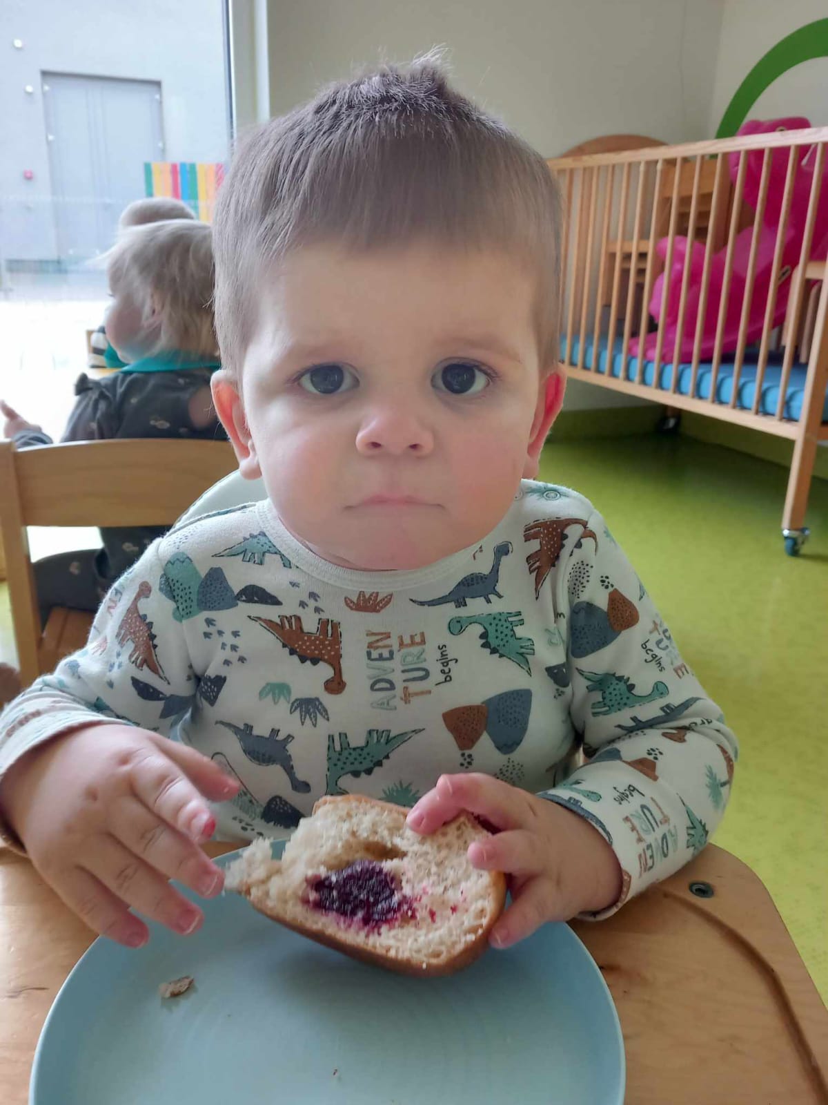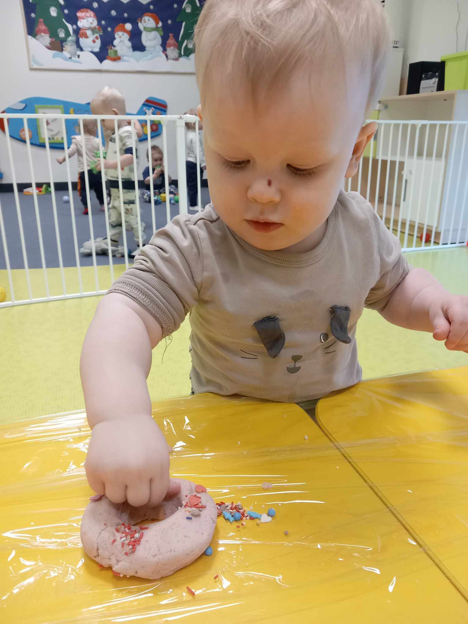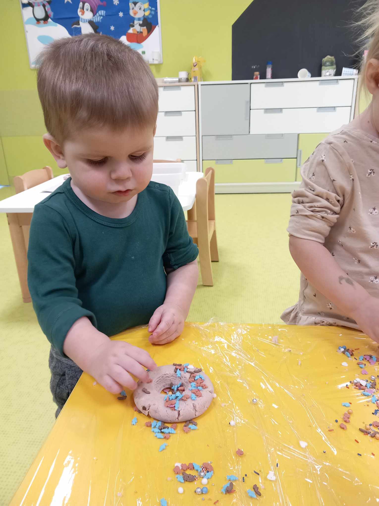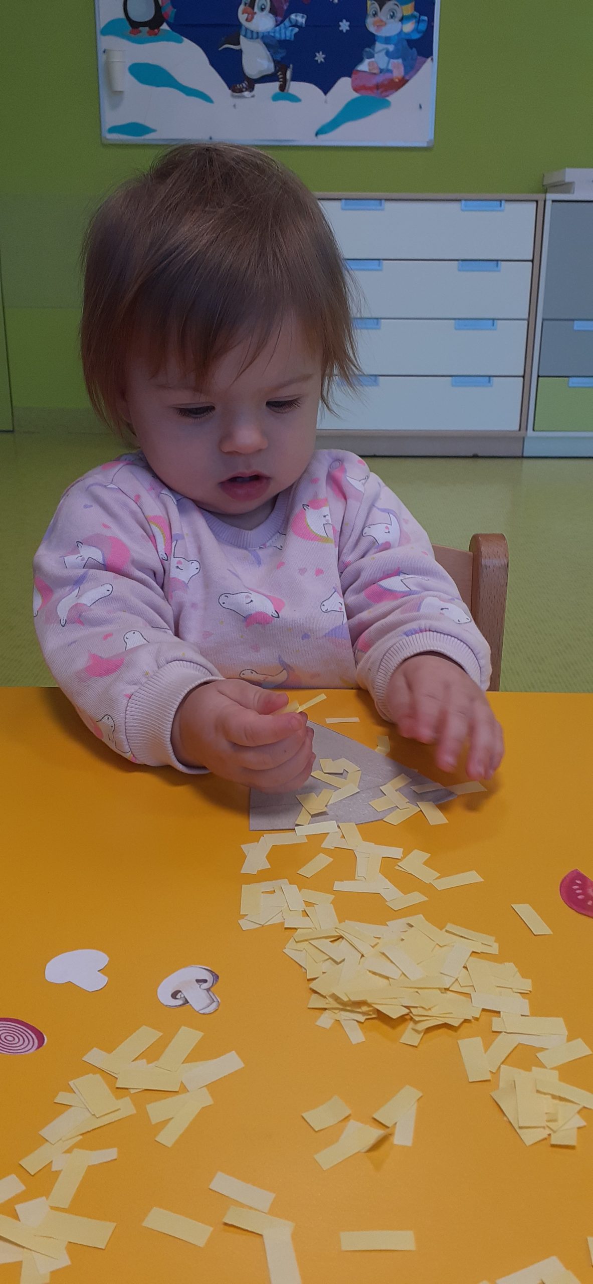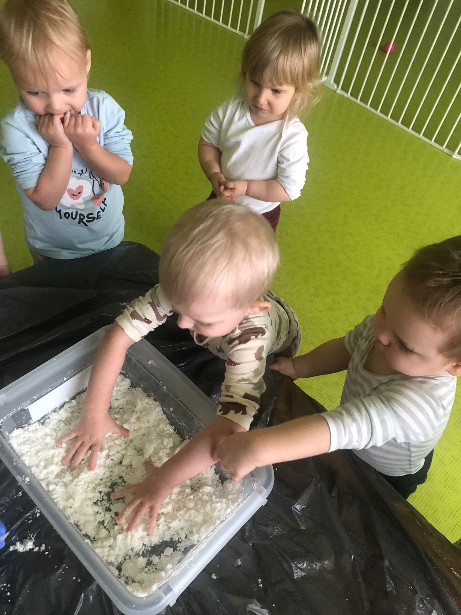 Dziś obchodziliśmy „Dzień Dinozaura”. Zajęcia rozpoczęliśmy od zabawy z piaskiem kinetycznym. Nasi mali odkrywcy mieli za zadanie odszukać dinozaury zasypane w piasku. Kolejne zadanie to tropienie dinozaurów po śladach. Na koniec zajęć była fotościanka. Maluchy dziś się świetnie bawili, a takie zajęcia sprawiają im wiele radości.