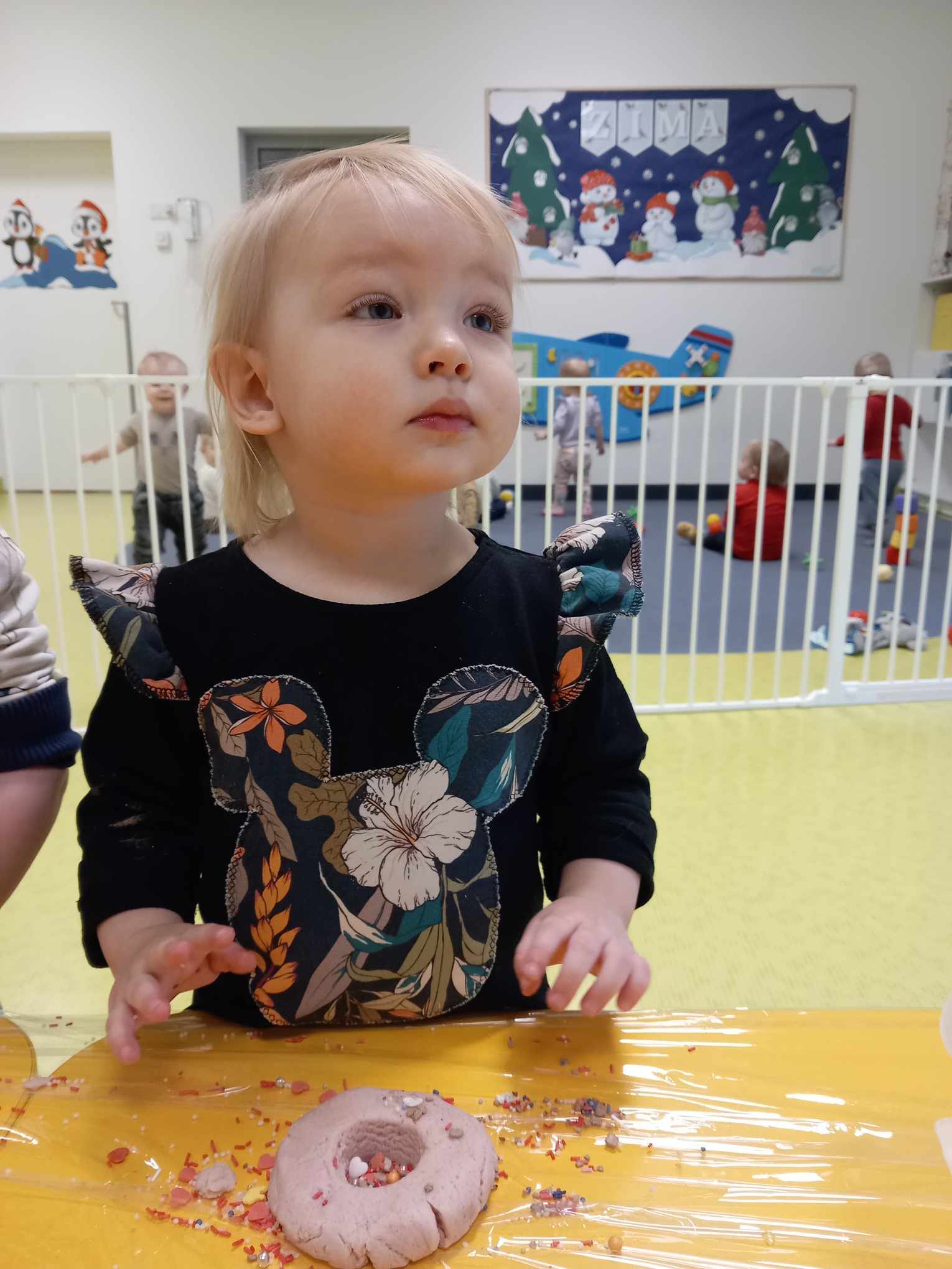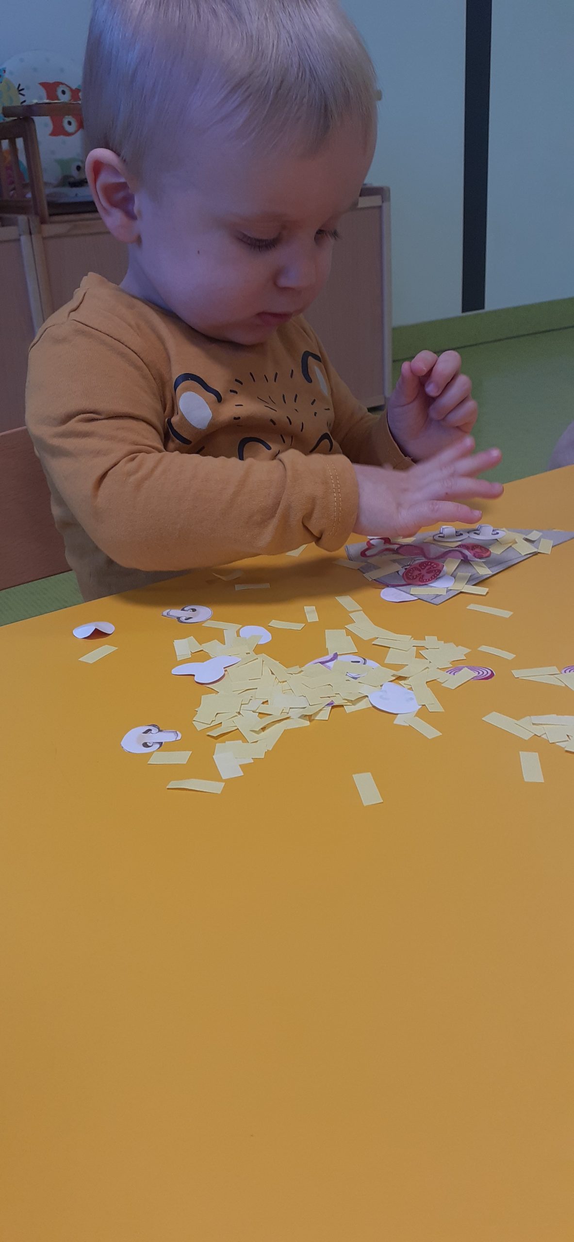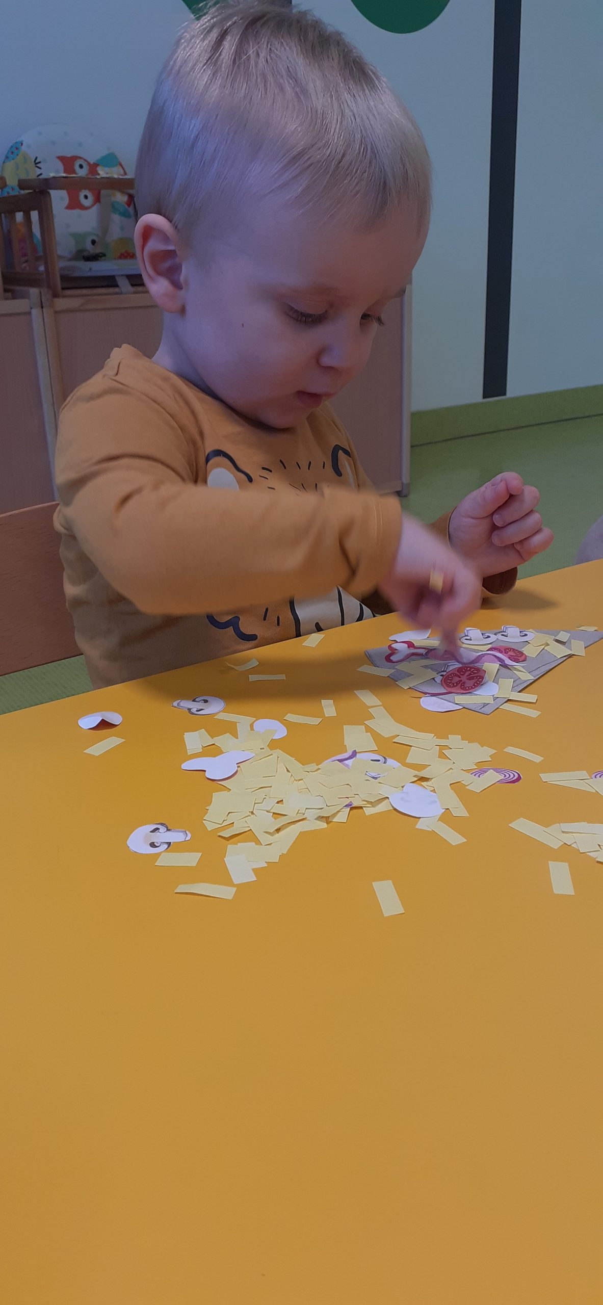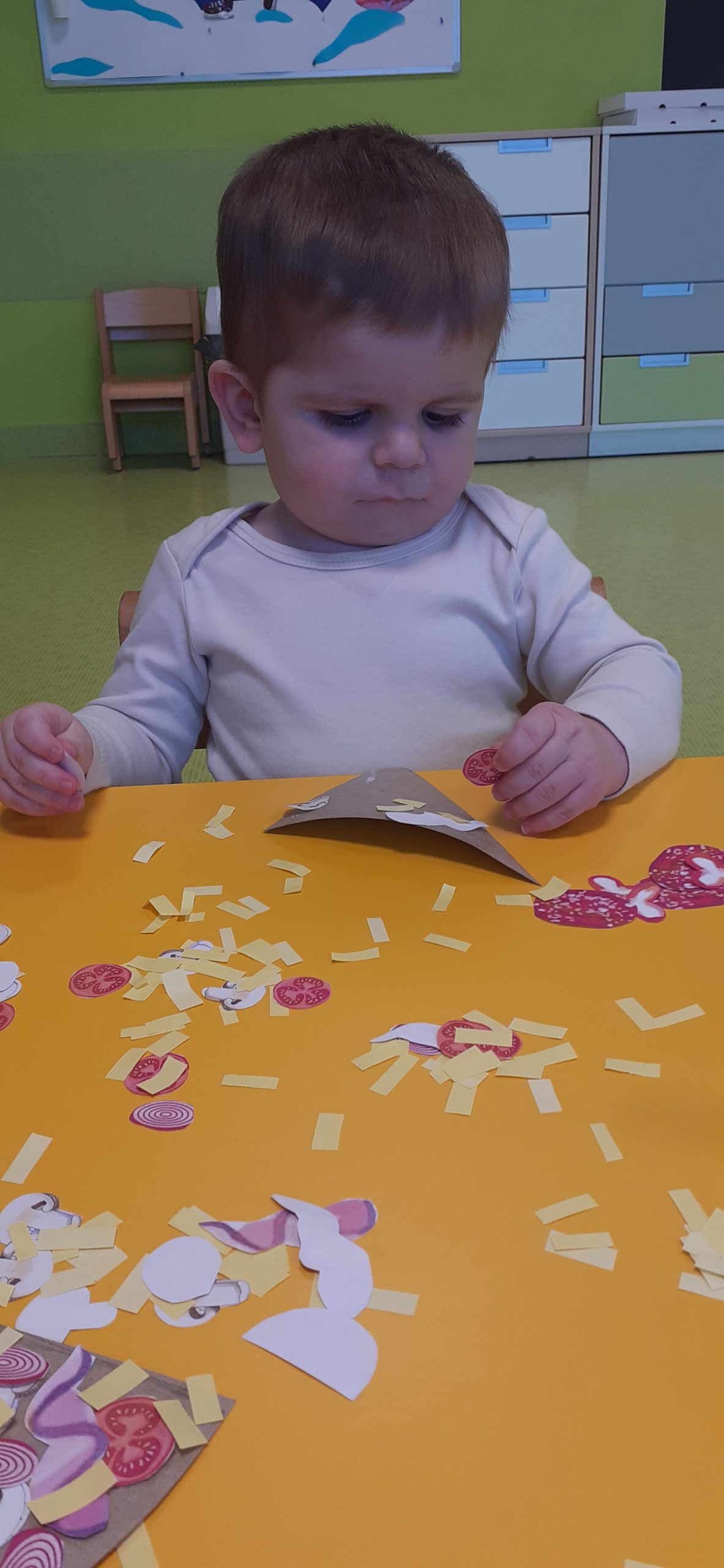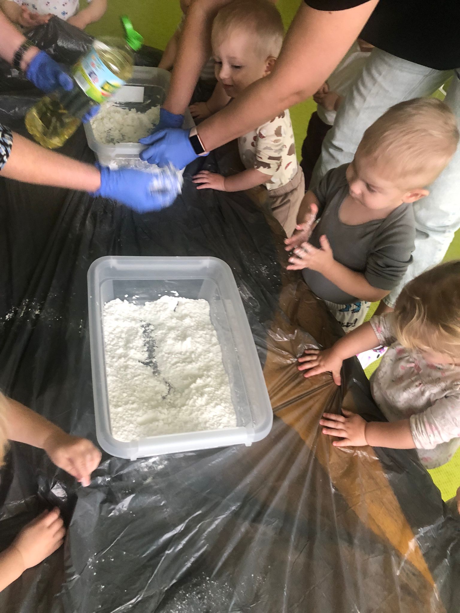 Dziś obchodziliśmy „Dzień Dinozaura”. Zajęcia rozpoczęliśmy od zabawy z piaskiem kinetycznym. Nasi mali odkrywcy mieli za zadanie odszukać dinozaury zasypane w piasku. Kolejne zadanie to tropienie dinozaurów po śladach. Na koniec zajęć była fotościanka. Maluchy dziś się świetnie bawili, a takie zajęcia sprawiają im wiele radości.