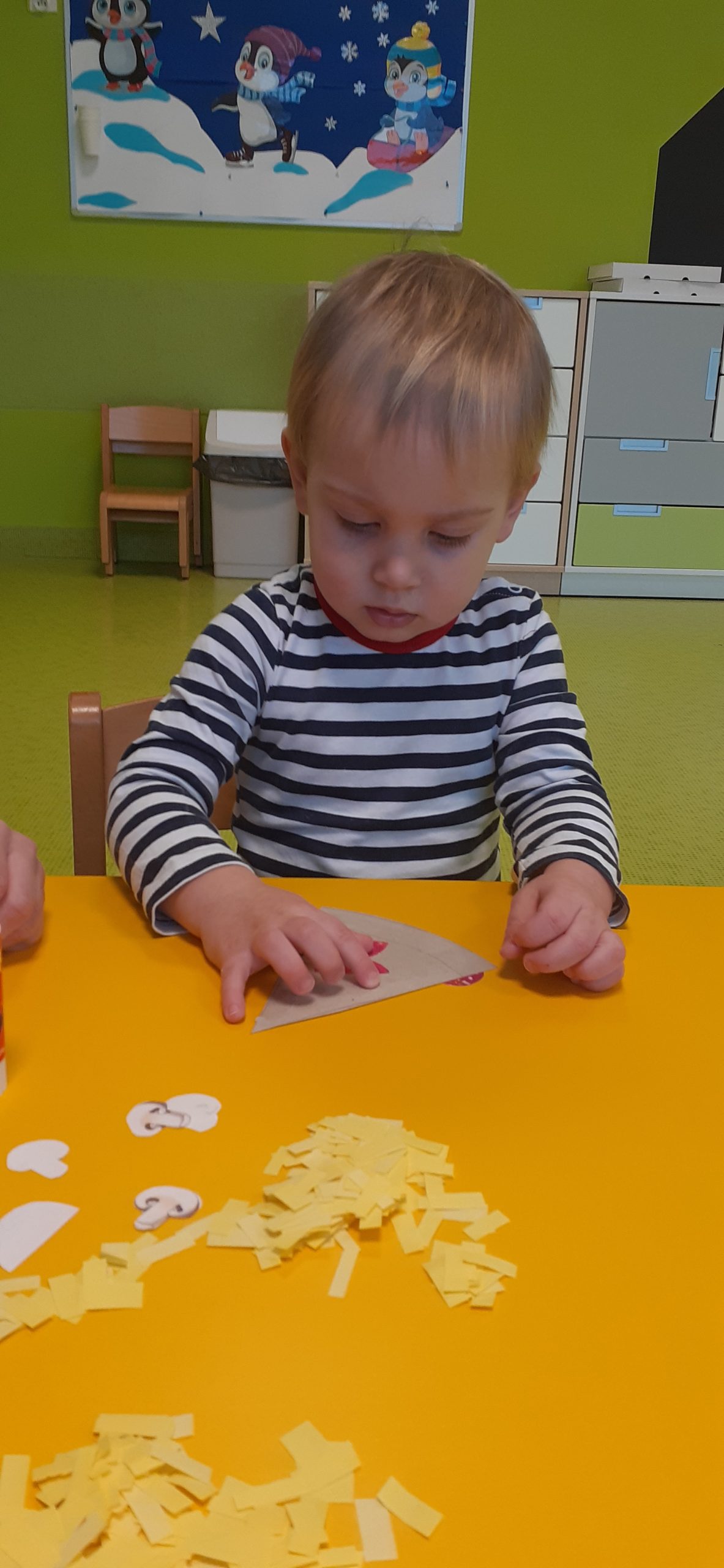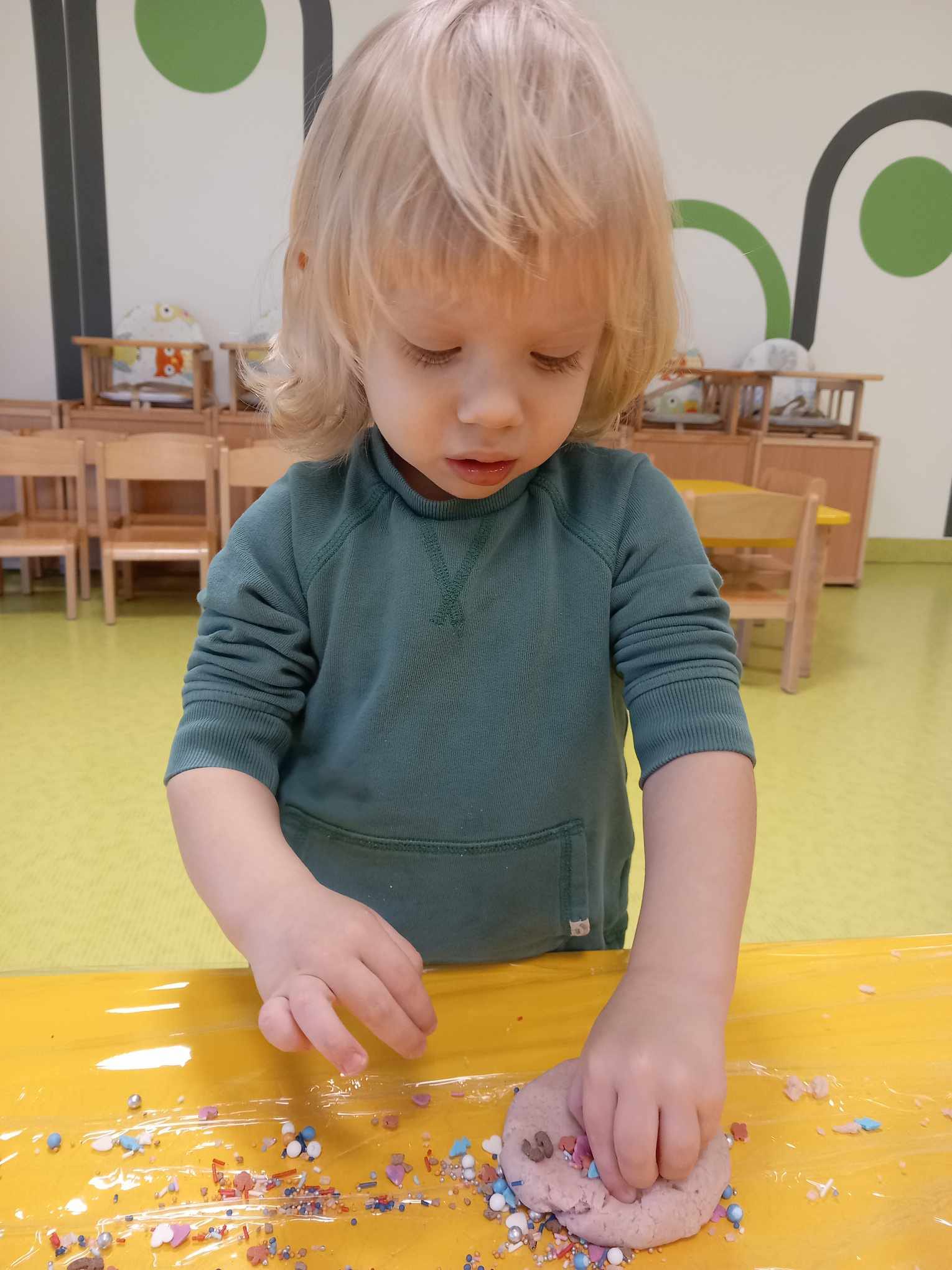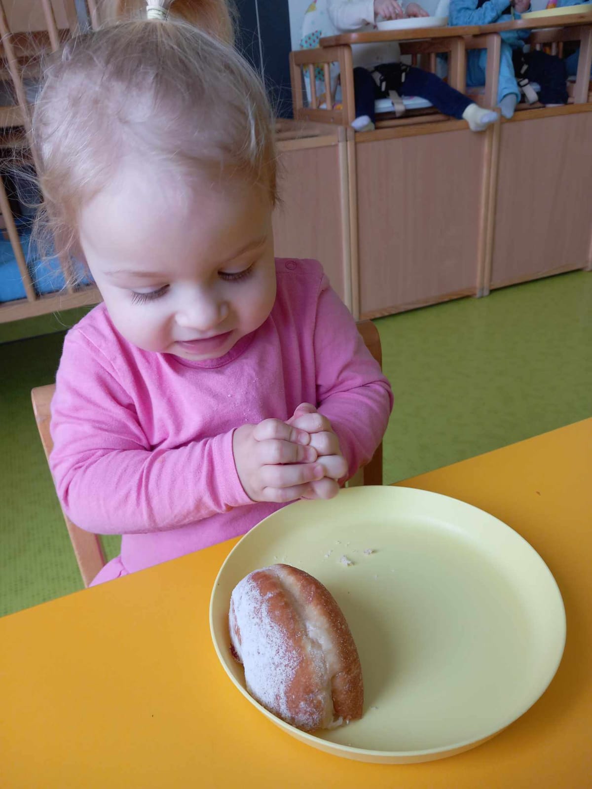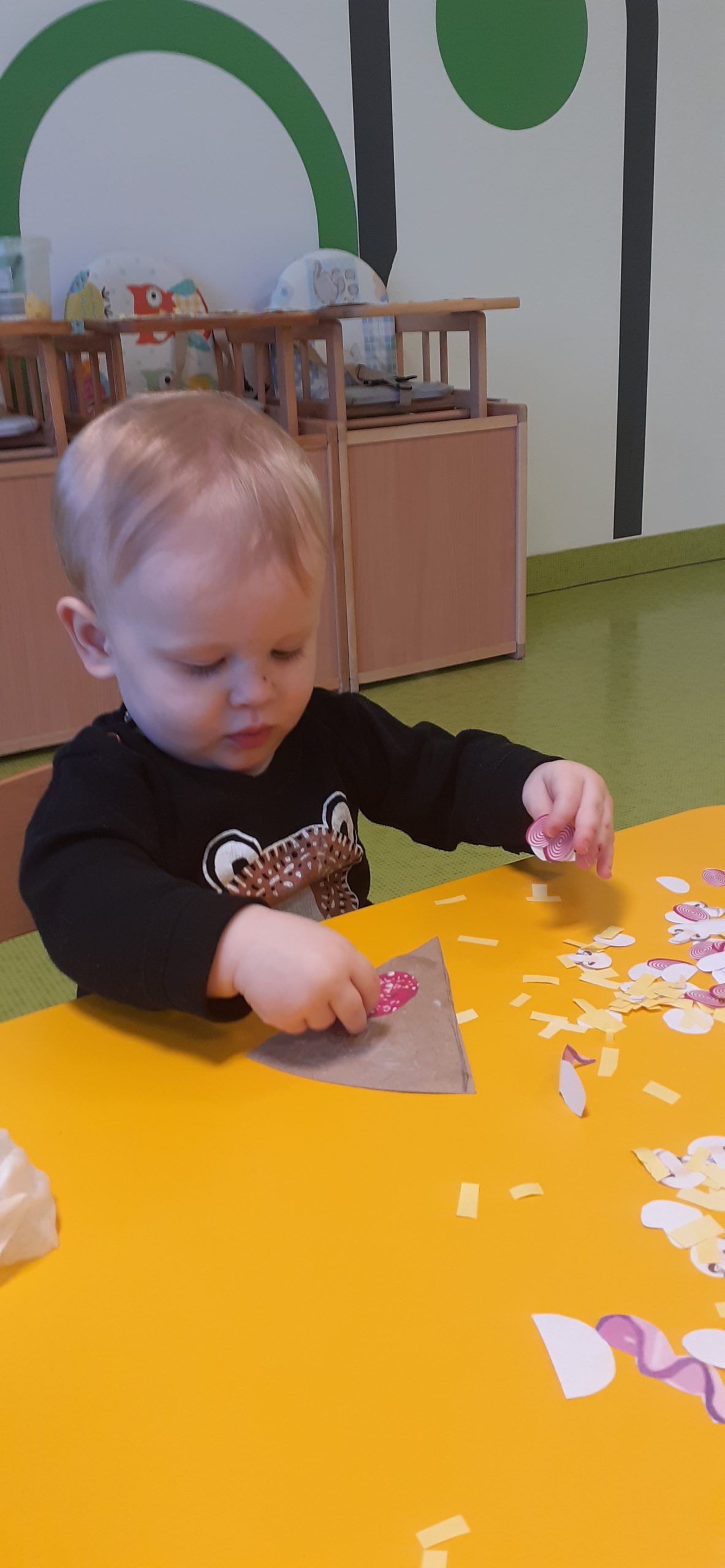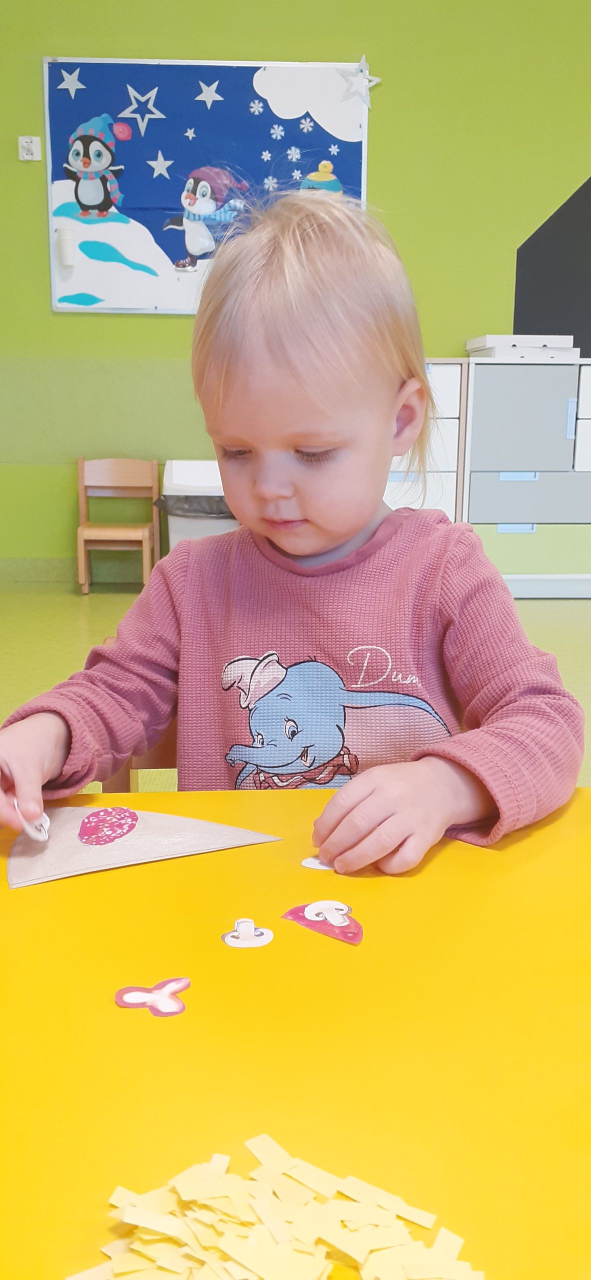 Dziś obchodziliśmy „Dzień Dinozaura”. Zajęcia rozpoczęliśmy od zabawy z piaskiem kinetycznym. Nasi mali odkrywcy mieli za zadanie odszukać dinozaury zasypane w piasku. Kolejne zadanie to tropienie dinozaurów po śladach. Na koniec zajęć była fotościanka. Maluchy dziś się świetnie bawili, a takie zajęcia sprawiają im wiele radości.