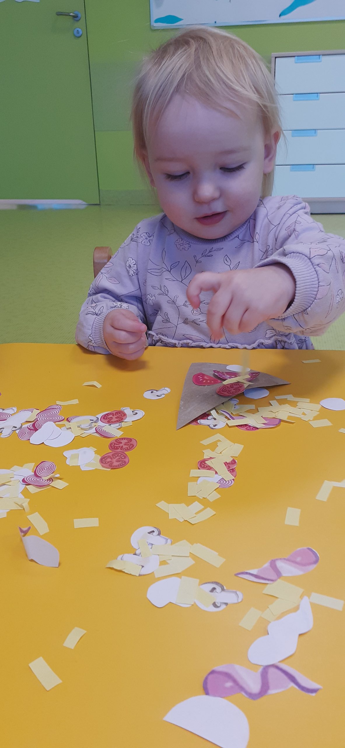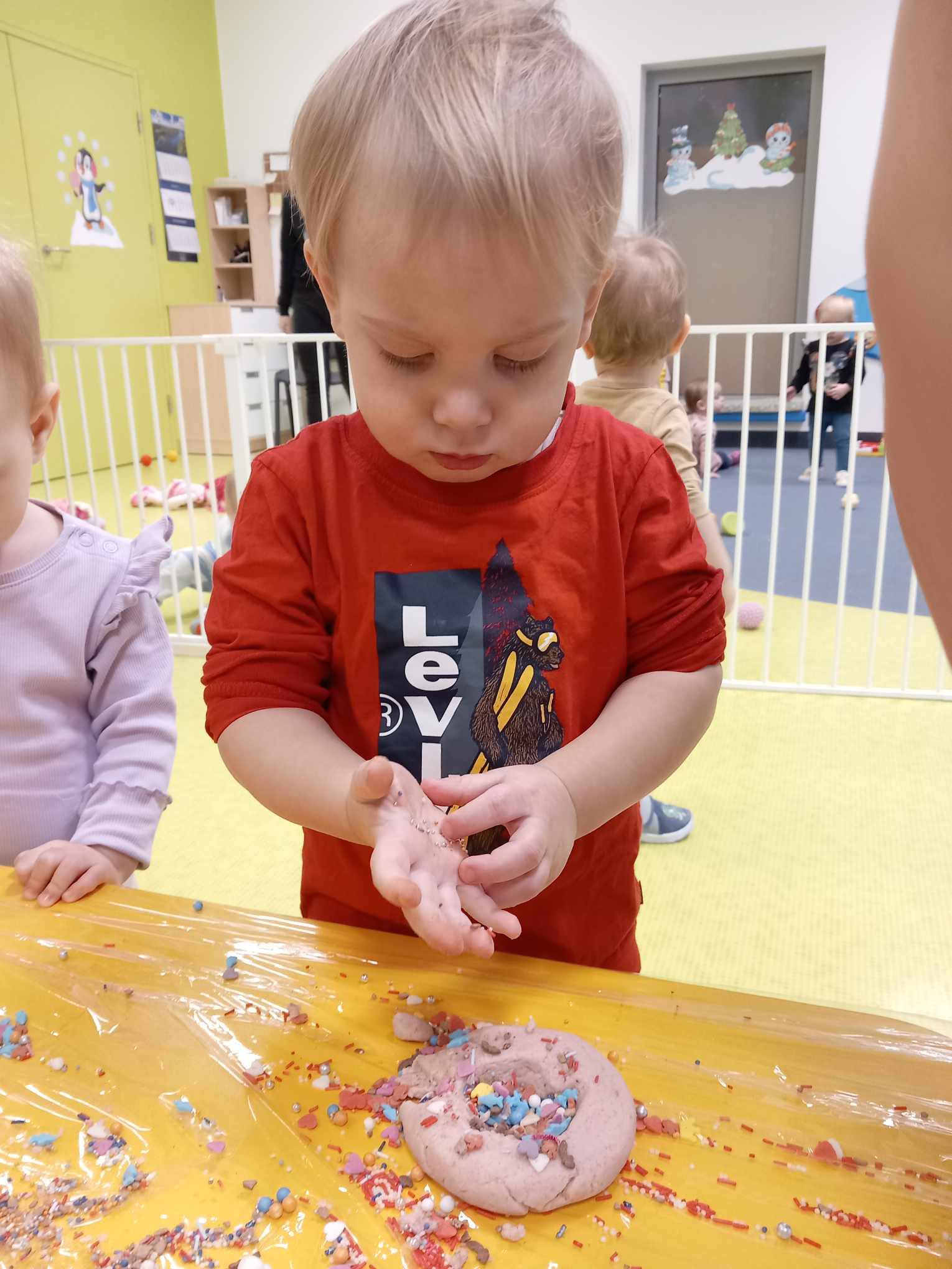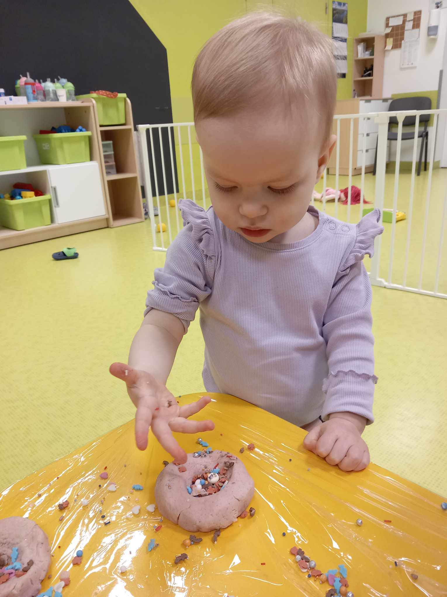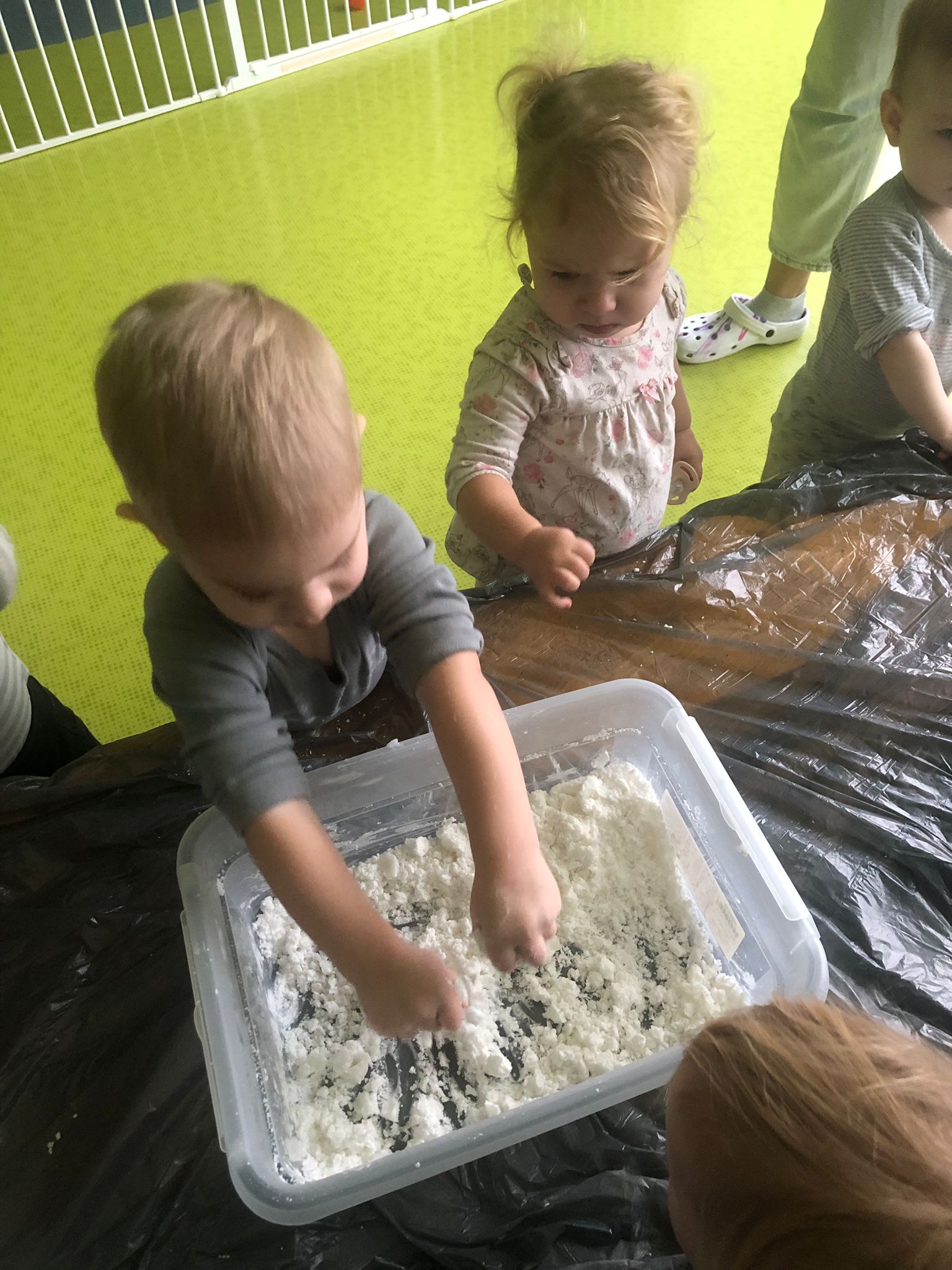 Dziś obchodziliśmy „Dzień Dinozaura”. Zajęcia rozpoczęliśmy od zabawy z piaskiem kinetycznym. Nasi mali odkrywcy mieli za zadanie odszukać dinozaury zasypane w piasku. Kolejne zadanie to tropienie dinozaurów po śladach. Na koniec zajęć była fotościanka. Maluchy dziś się świetnie bawili, a takie zajęcia sprawiają im wiele radości.