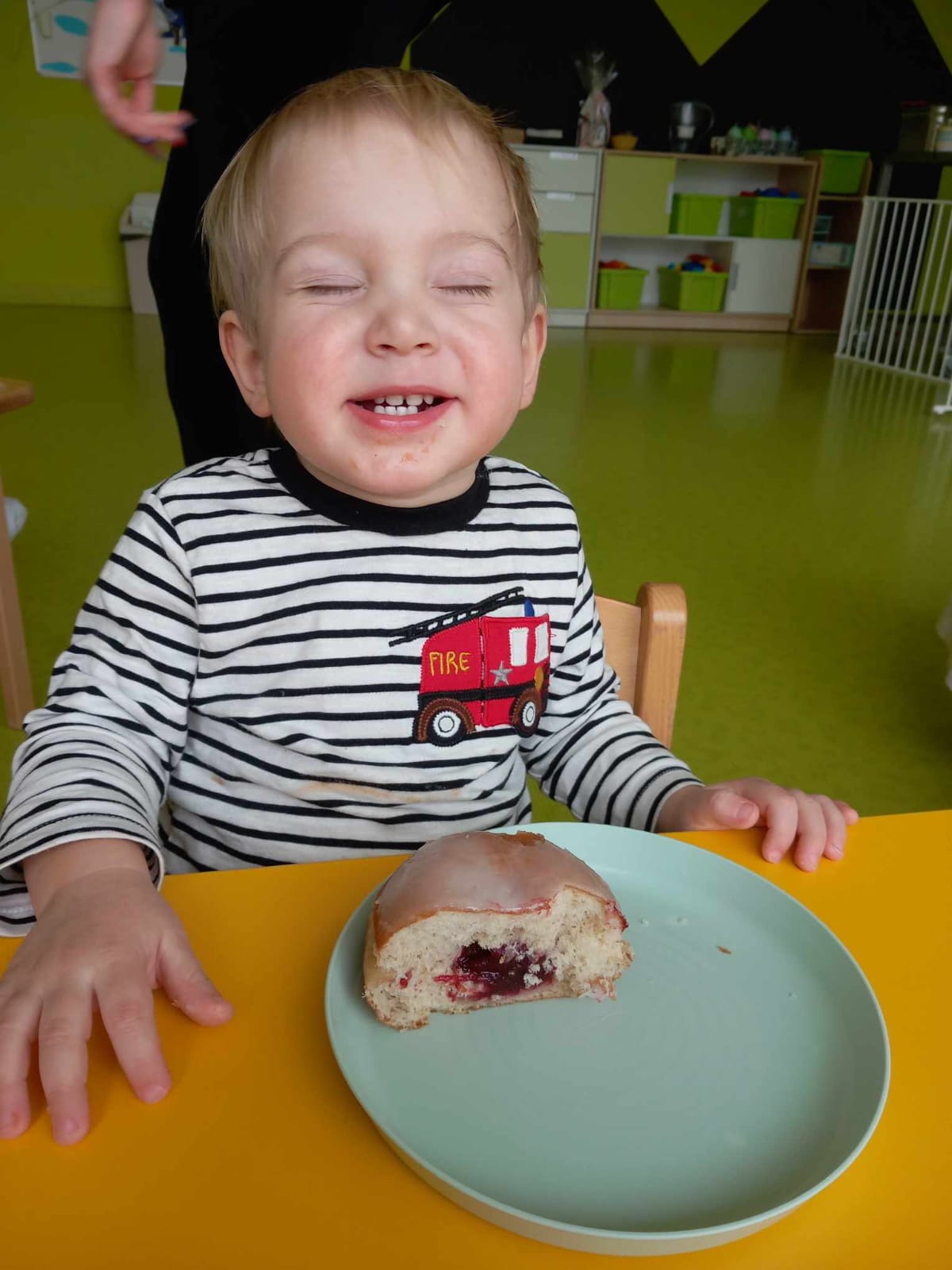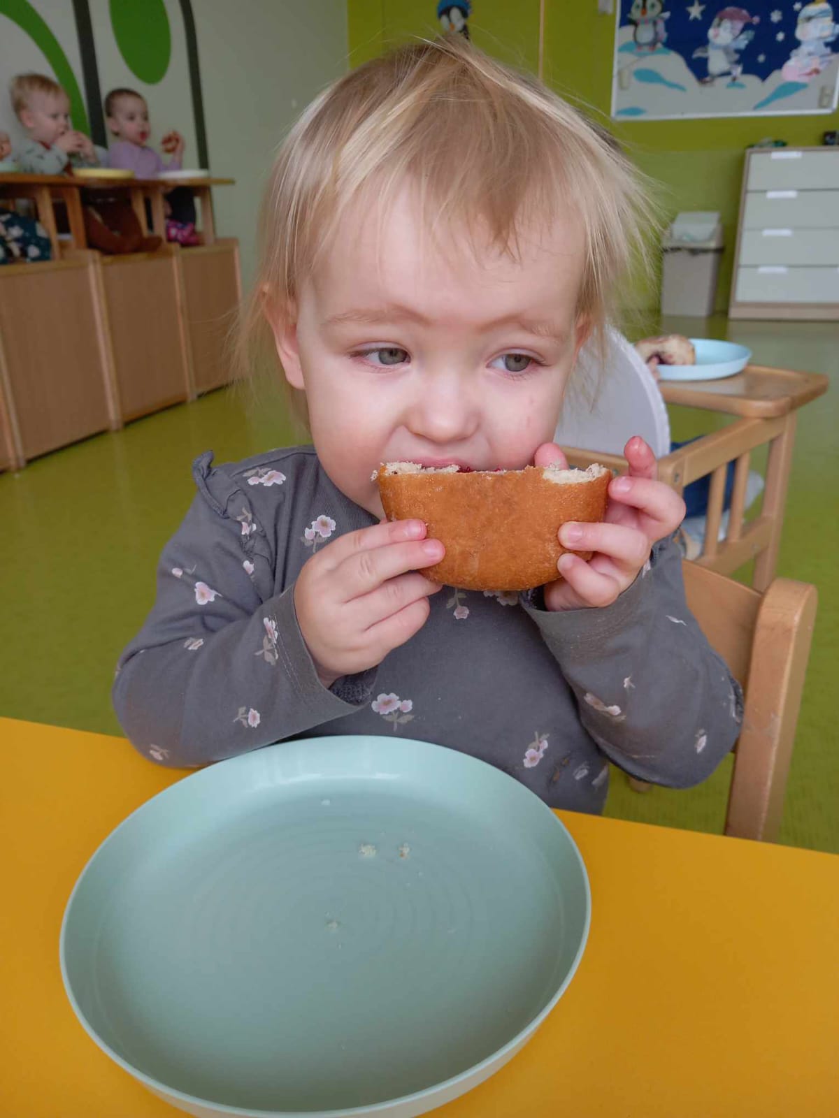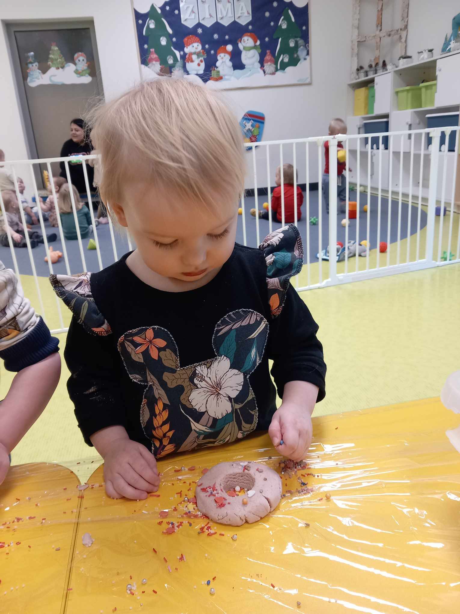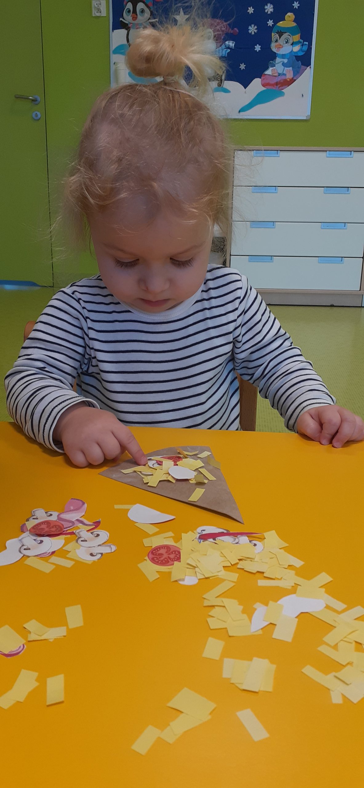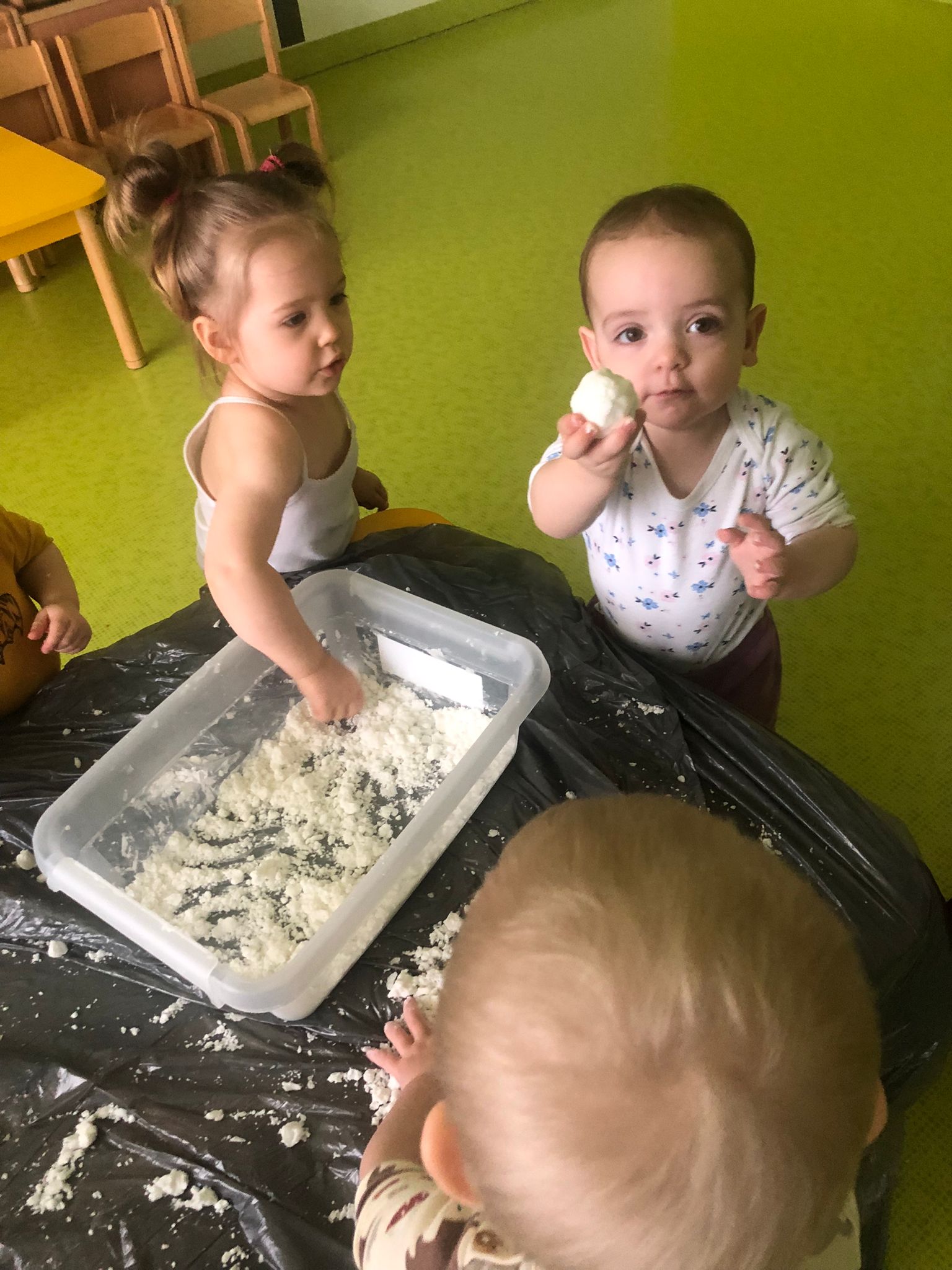 Dziś obchodziliśmy „Dzień Dinozaura”. Zajęcia rozpoczęliśmy od zabawy z piaskiem kinetycznym. Nasi mali odkrywcy mieli za zadanie odszukać dinozaury zasypane w piasku. Kolejne zadanie to tropienie dinozaurów po śladach. Na koniec zajęć była fotościanka. Maluchy dziś się świetnie bawili, a takie zajęcia sprawiają im wiele radości.