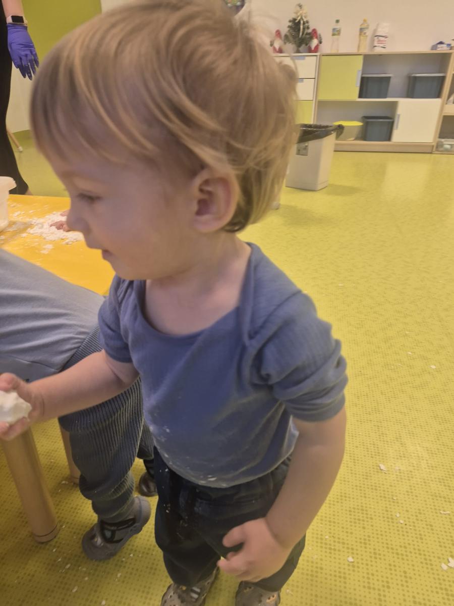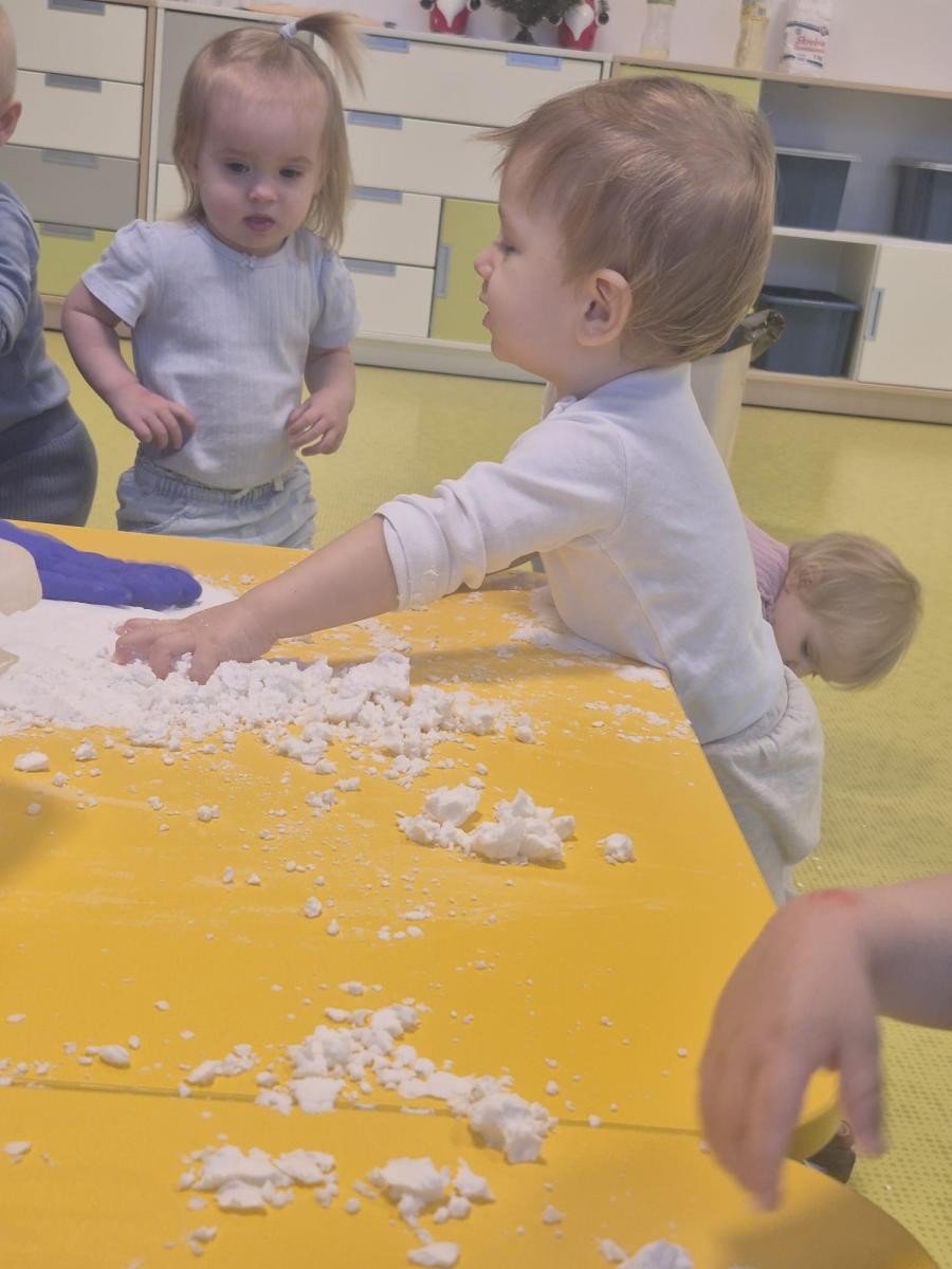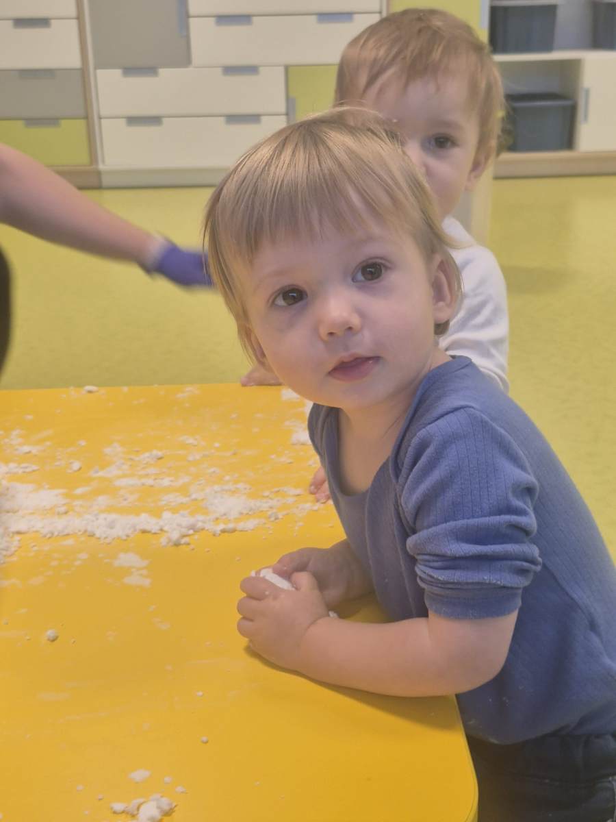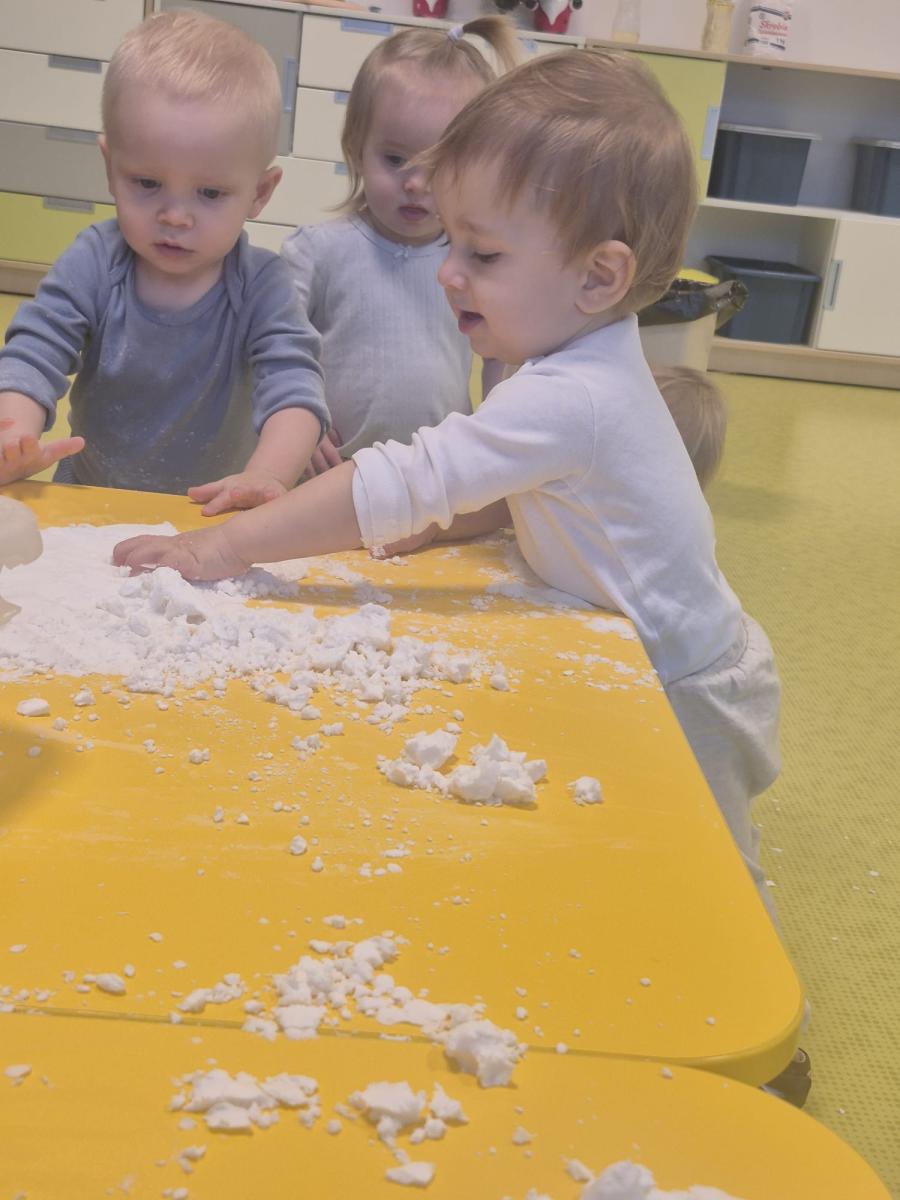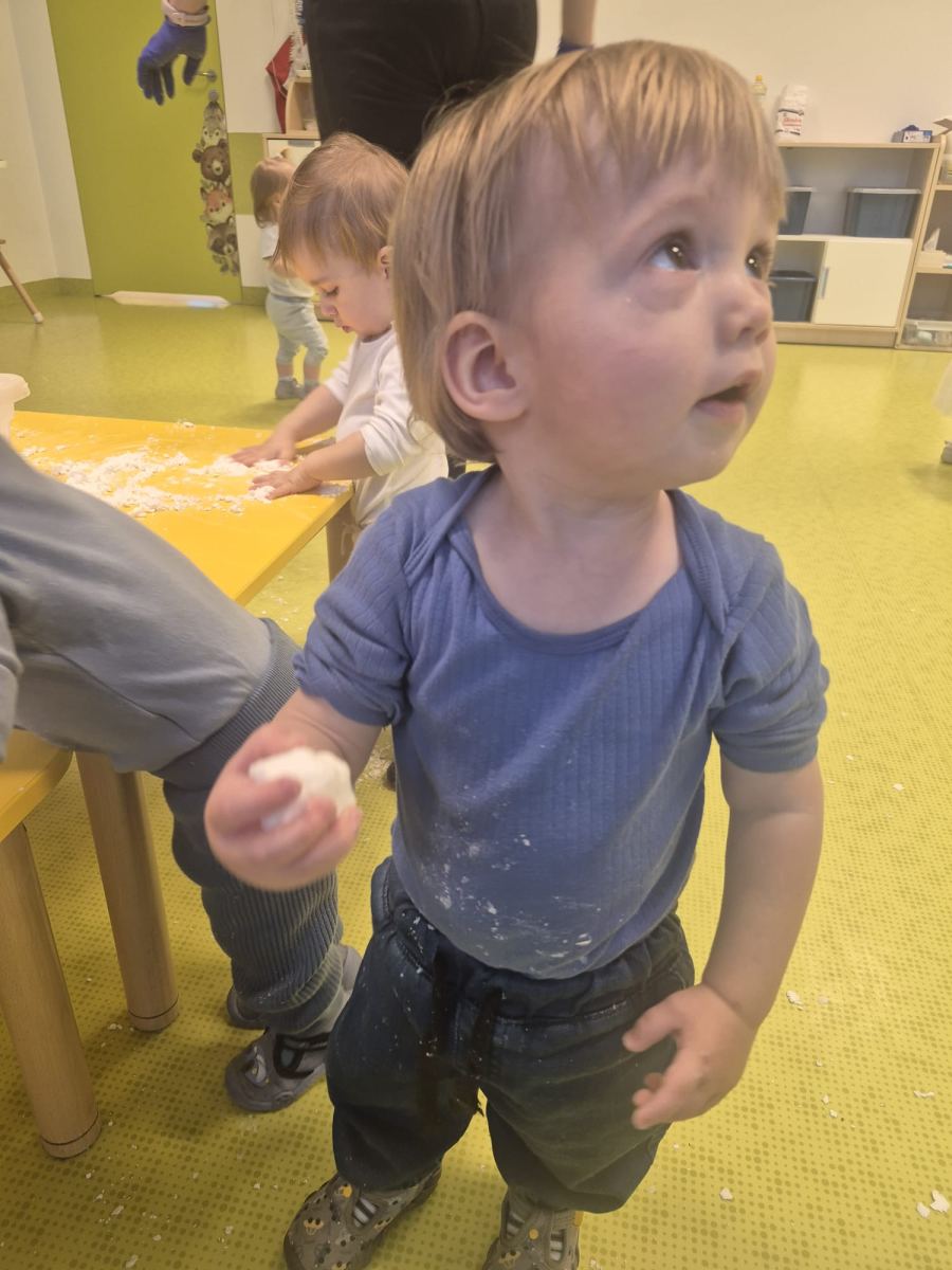 Przyszedł nowy dzień w grupie Motyli. Znowu zaczęło się dziać… Dzisiaj dzieci poczuły się jak w stumilowym lesie. Spotkały nawet Kubusia Puchatka. Okazało się, że miś jest bardzo głodny i trzeba go nakarmić. Motylki stanęły na wysokości zadania. Rączki ćwiczyły chwytanie chrupek, celowanie do buzi Kubusia. Miś dostał dużą porcje jedzenia. Potem przyszedł czas na deser. Wiadomo że niedźwiadki lubią miód, wiec i my go spróbowaliśmy. Motylki świetnie poradziły sobie z samodzielnym trzymaniem łyżeczki i próbowaniem smaku miodu. Okazało się, że miód jest słodki i pyszny. To był kolejny dzień pełen wrażeń, nowych doświadczeń i super zabawy.