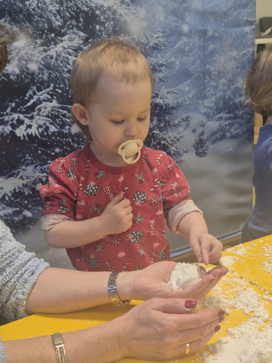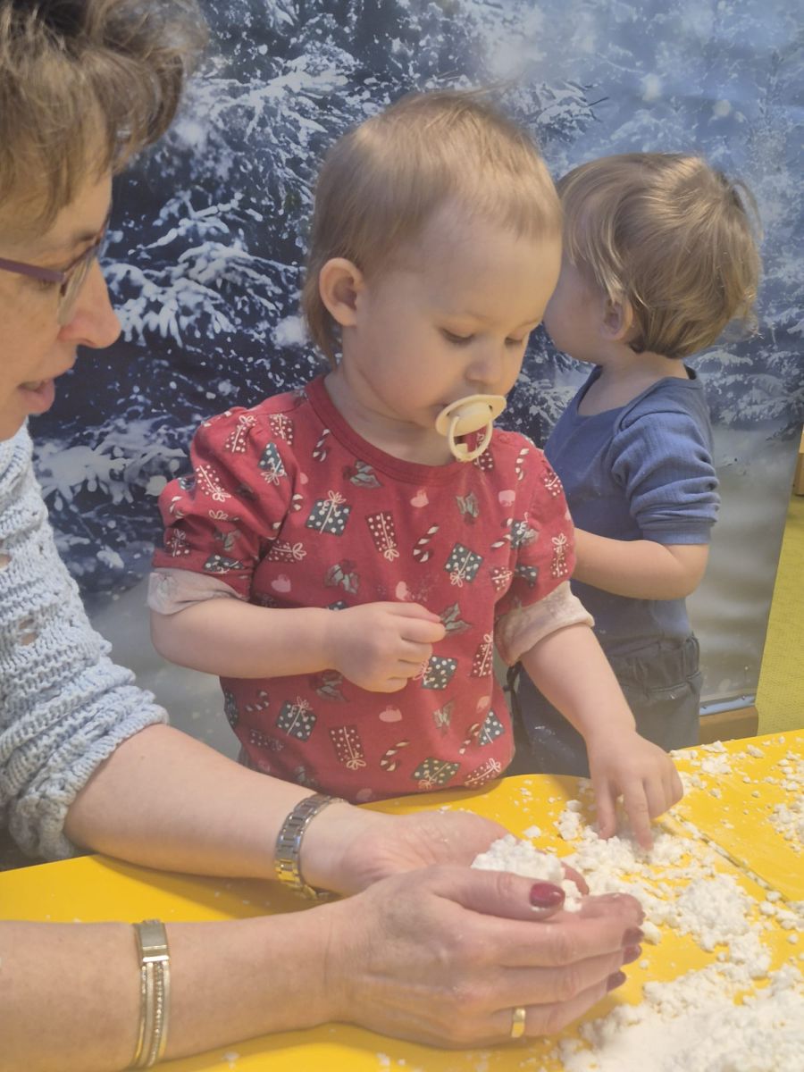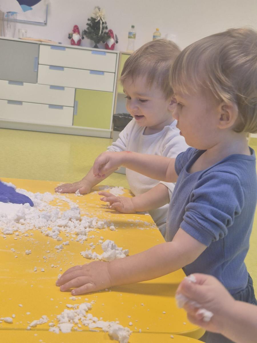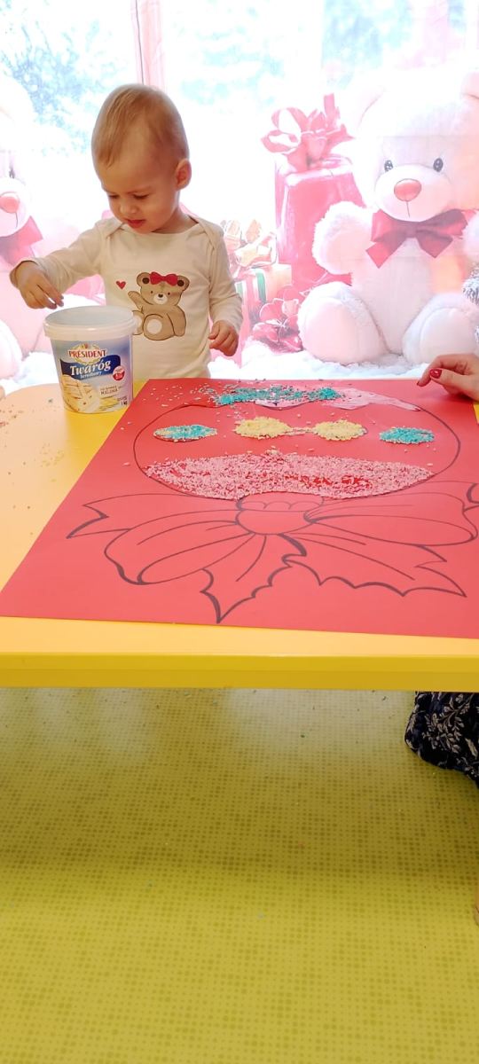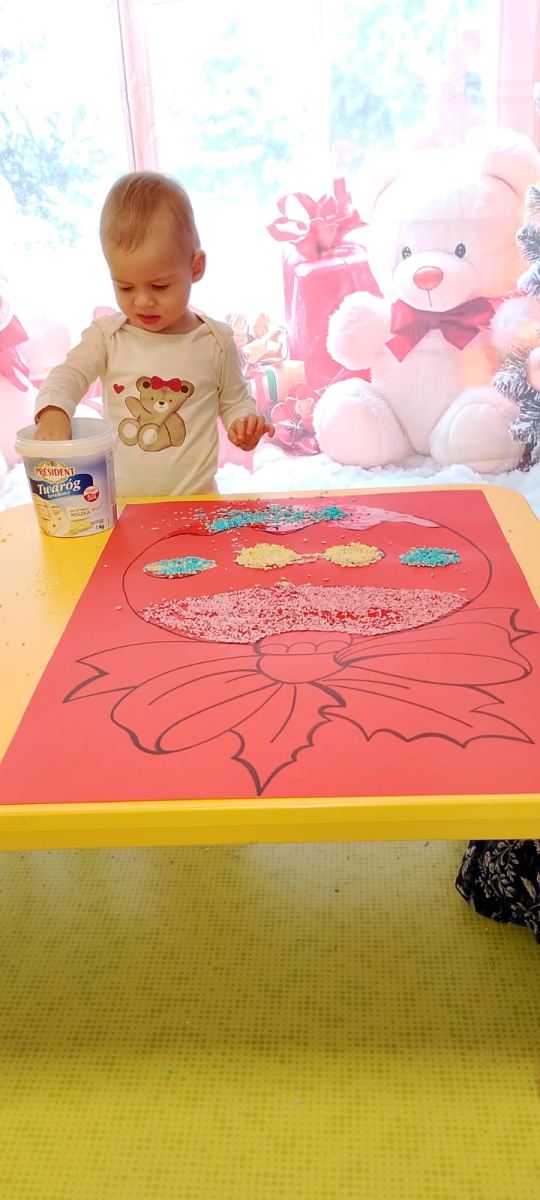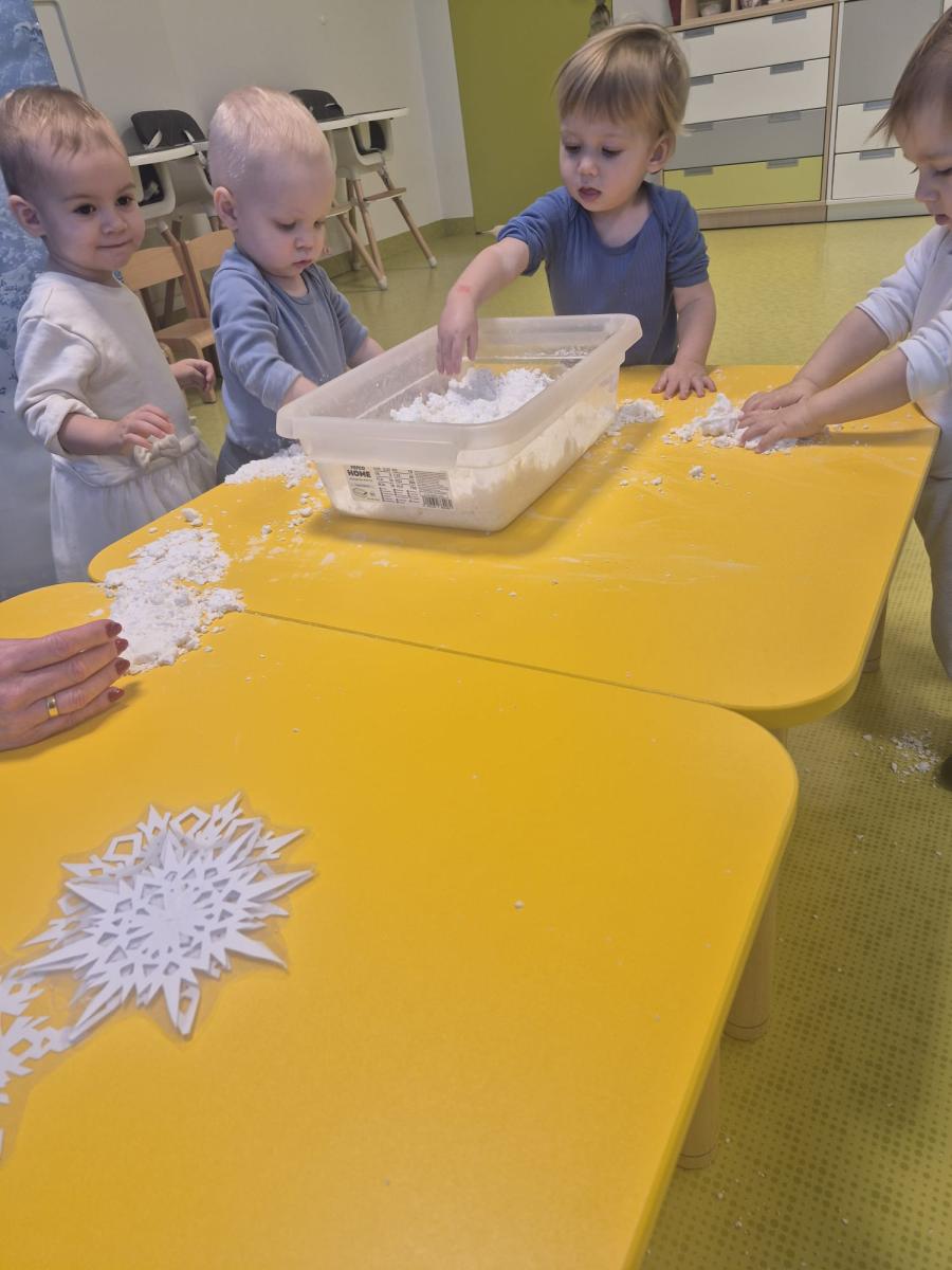 Przyszedł nowy dzień w grupie Motyli. Znowu zaczęło się dziać… Dzisiaj dzieci poczuły się jak w stumilowym lesie. Spotkały nawet Kubusia Puchatka. Okazało się, że miś jest bardzo głodny i trzeba go nakarmić. Motylki stanęły na wysokości zadania. Rączki ćwiczyły chwytanie chrupek, celowanie do buzi Kubusia. Miś dostał dużą porcje jedzenia. Potem przyszedł czas na deser. Wiadomo że niedźwiadki lubią miód, wiec i my go spróbowaliśmy. Motylki świetnie poradziły sobie z samodzielnym trzymaniem łyżeczki i próbowaniem smaku miodu. Okazało się, że miód jest słodki i pyszny. To był kolejny dzień pełen wrażeń, nowych doświadczeń i super zabawy.