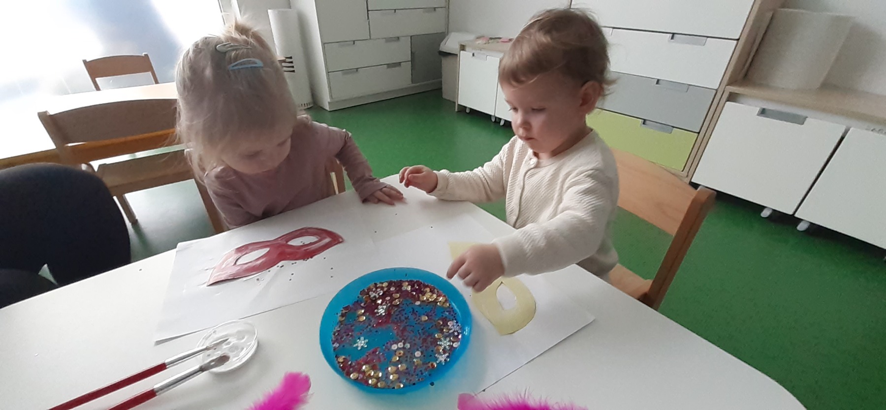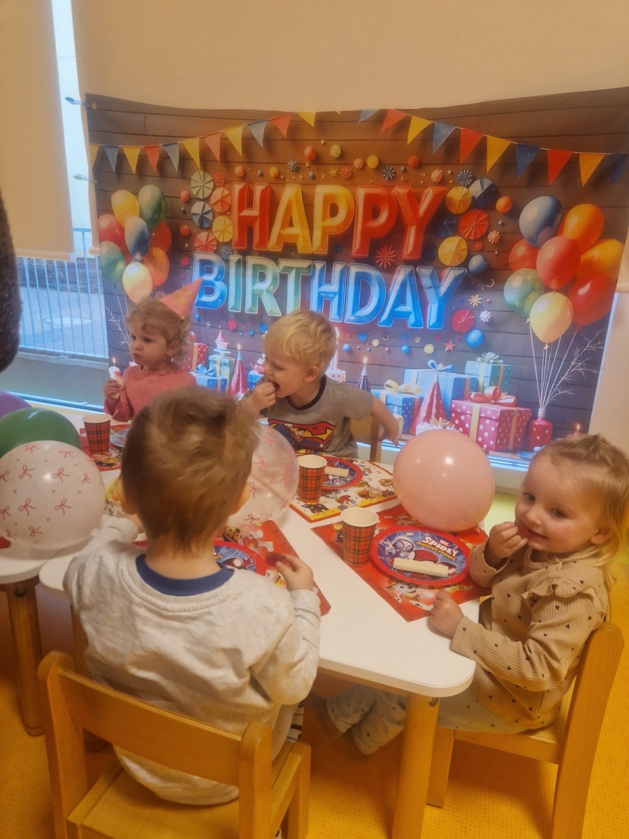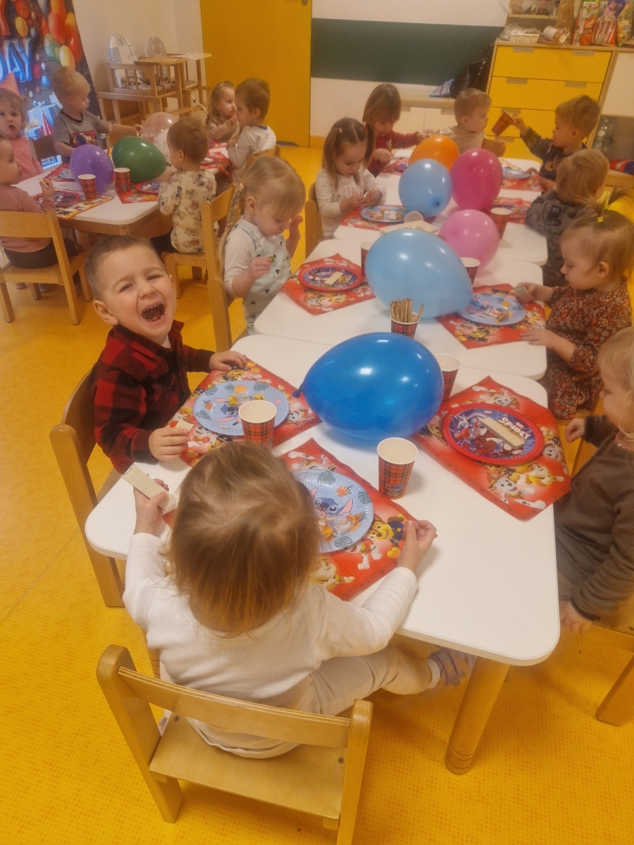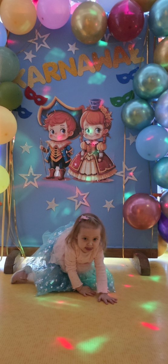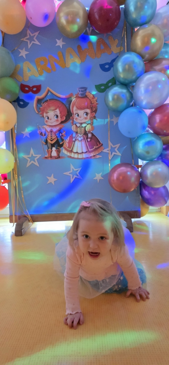 W naszym żłobku odbyła się długo wyczekiwana przez każde dziecko uroczystość… tak mowa o „Balu Karnawałowym”. Nasz Hol był bardzo kolorowy, pojawiła się balonowa ścianka do zdjęć. Zadbałyśmy o to aby na twarzy wszystkich naszych podopiecznych pojawił się uśmiech 🙂 Stało się tak za sprawą przygotowanych atrakcji, które czekały na dzieci. Tego dnia można było zanurzyć się w basenie wypełnionym kolorowymi piłeczkami, pokonać ścieżkę sensoryczną, zbijać bańki mydlane. Nie zabrakło również zabaw z chustą animacyjną i tunelem.