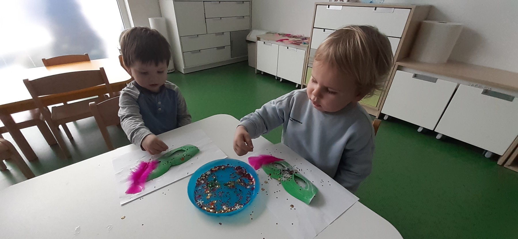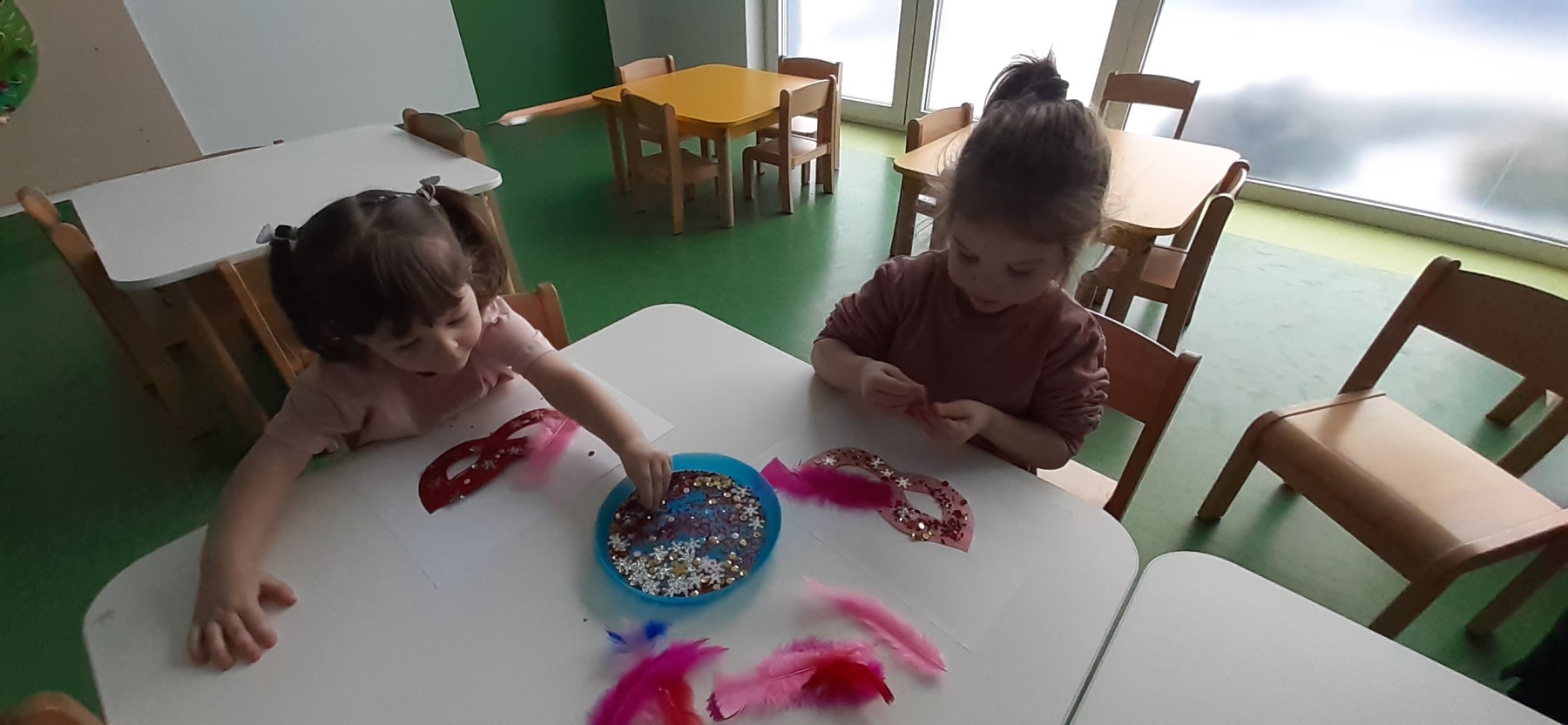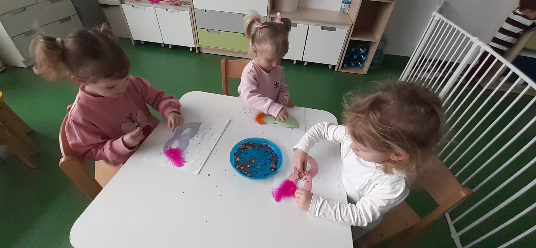 W naszym żłobku odbyła się długo wyczekiwana przez każde dziecko uroczystość… tak mowa o „Balu Karnawałowym”. Nasz Hol był bardzo kolorowy, pojawiła się balonowa ścianka do zdjęć. Zadbałyśmy o to aby na twarzy wszystkich naszych podopiecznych pojawił się uśmiech 🙂 Stało się tak za sprawą przygotowanych atrakcji, które czekały na dzieci. Tego dnia można było zanurzyć się w basenie wypełnionym kolorowymi piłeczkami, pokonać ścieżkę sensoryczną, zbijać bańki mydlane. Nie zabrakło również zabaw z chustą animacyjną i tunelem.