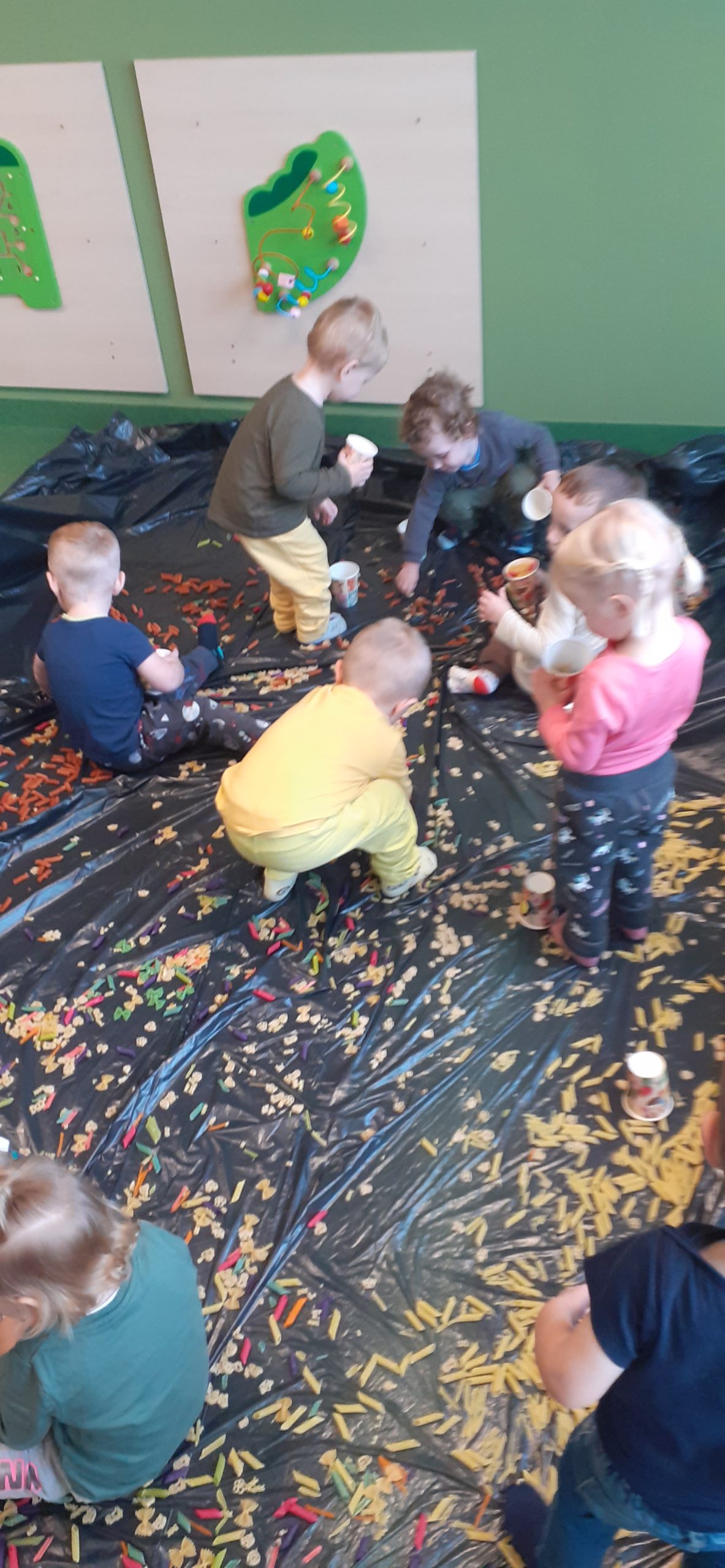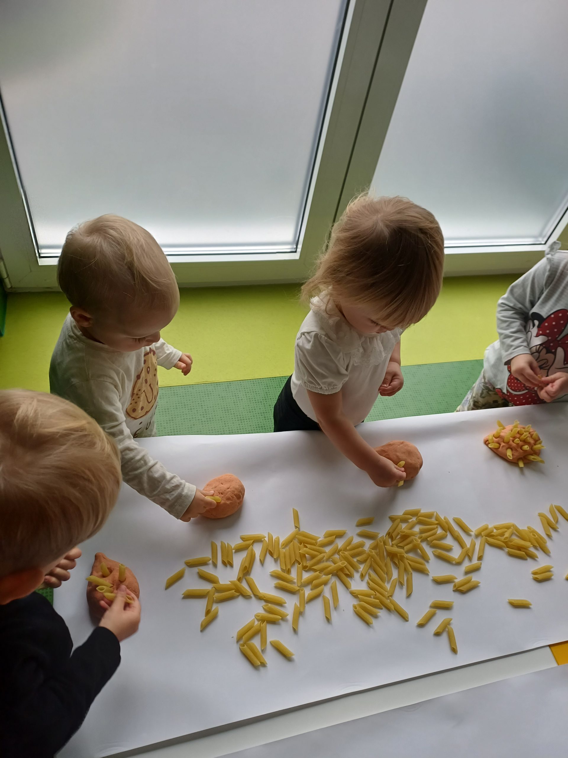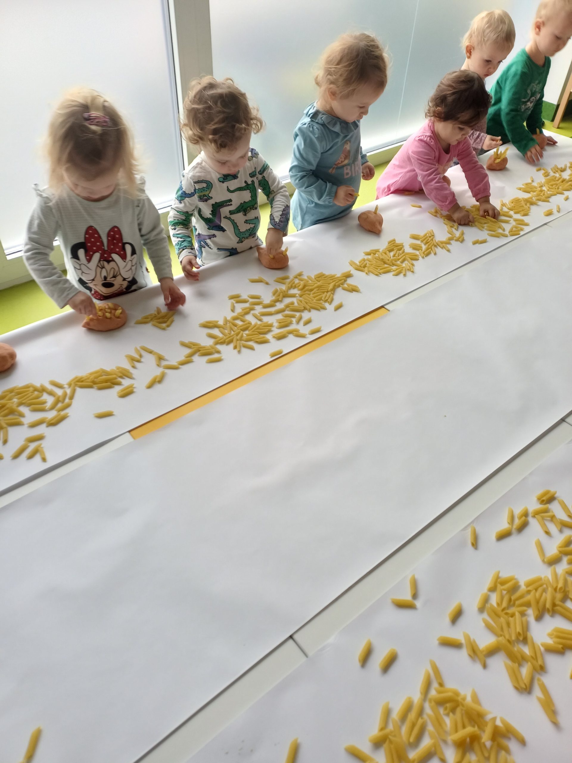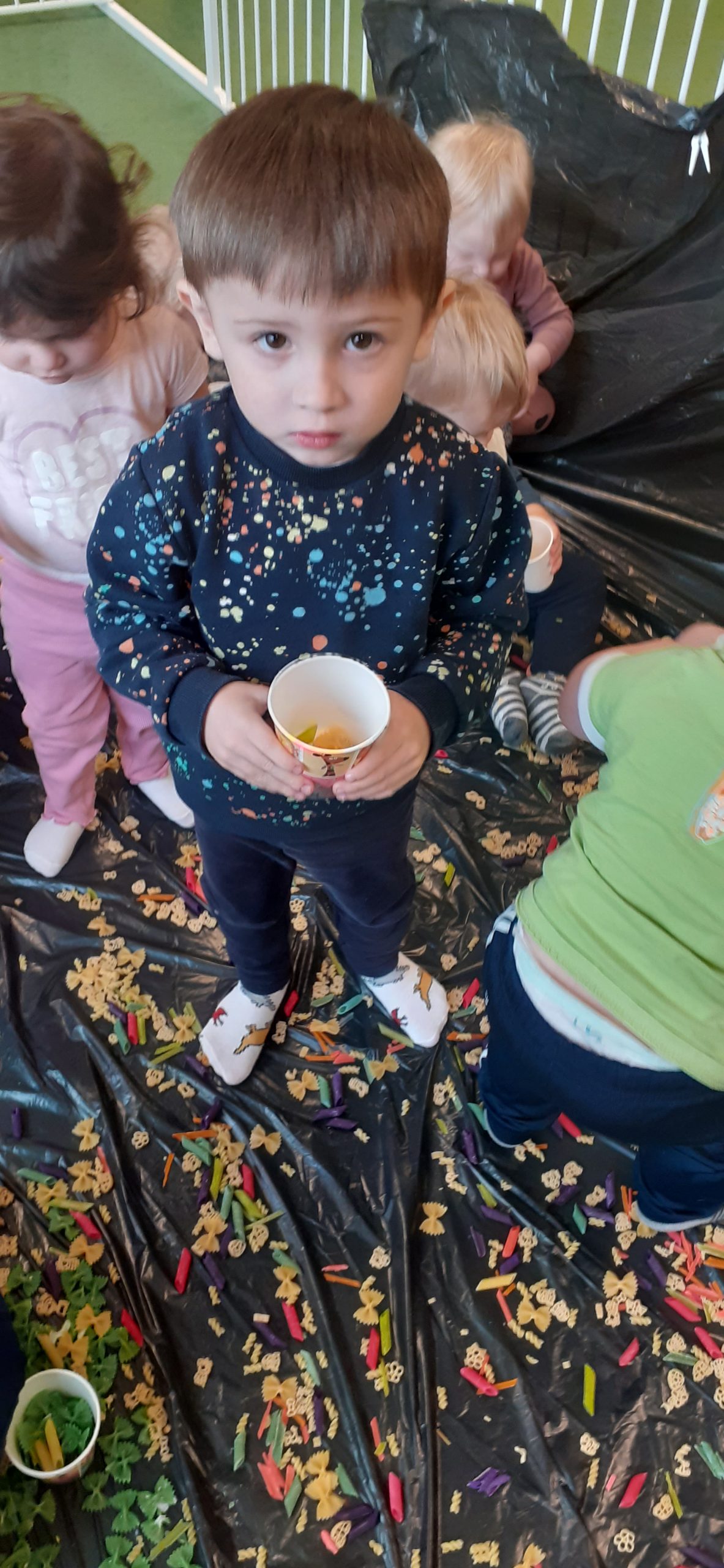 W dniu dzisiejszym naszym gościem honorowym w grupie Pszczółek był makaron. Była to wspaniała zabawa sensoryczna dla naszych dzieci. Makron jest genialnym materiałem do sensoryki a różnorodność jego kształtów, kolorów, struktur, wielkości- także spełnia role edukacyjną. Dostarcza wielu wrażeń wzrokowych niektóre wzory są naprawdę kosmiczne. Ale również wielu bodźców dotykowych- to zawdzięczamy jego strukturom i kształtom. Bawiąc się w ten sposób z dziećmi można osiągnąć znakomite efekty, które wspomagają rozwój zmysłów dziecka, pomagają rozwijać inteligencje, koncentracje i pamięć.