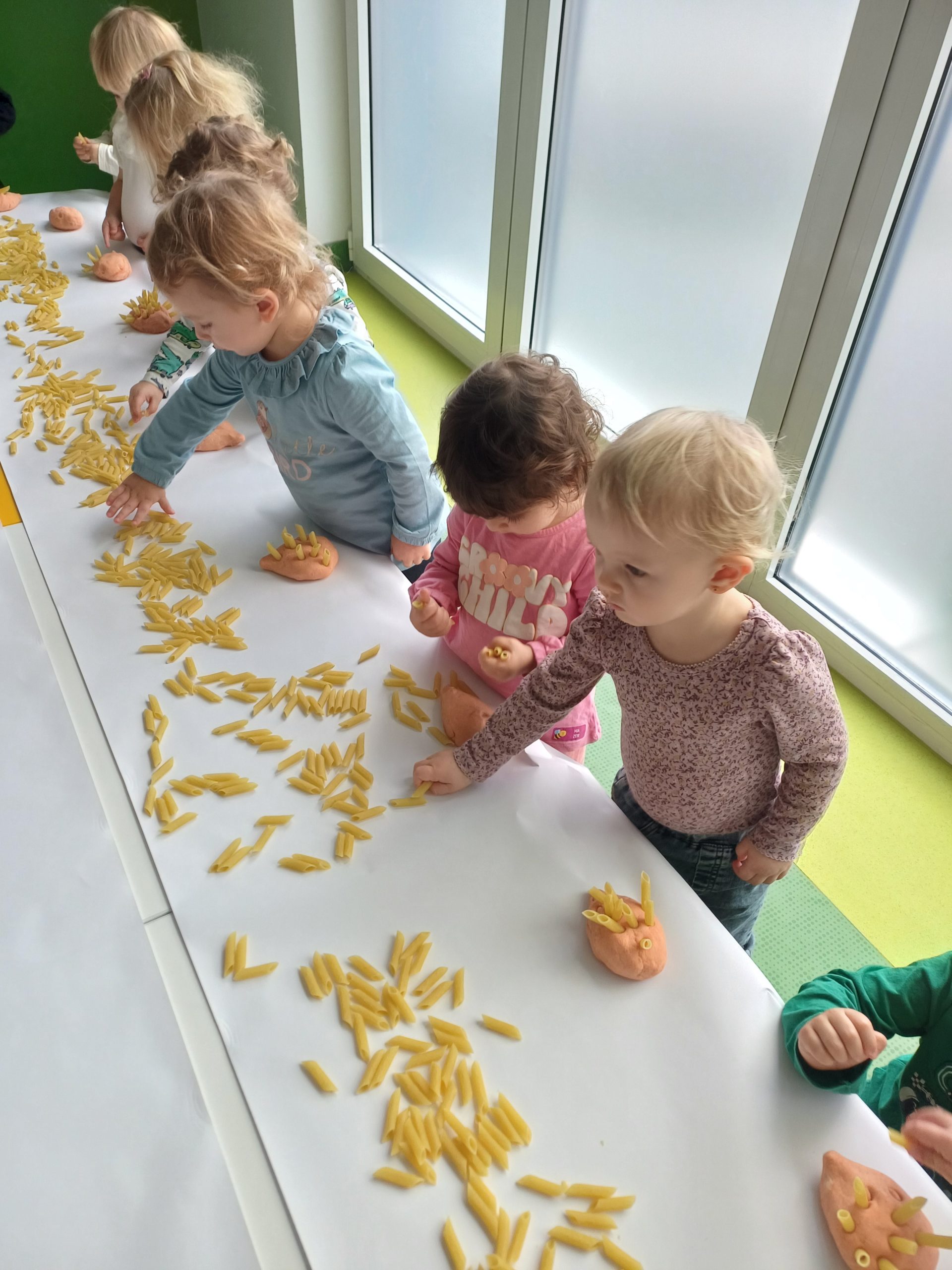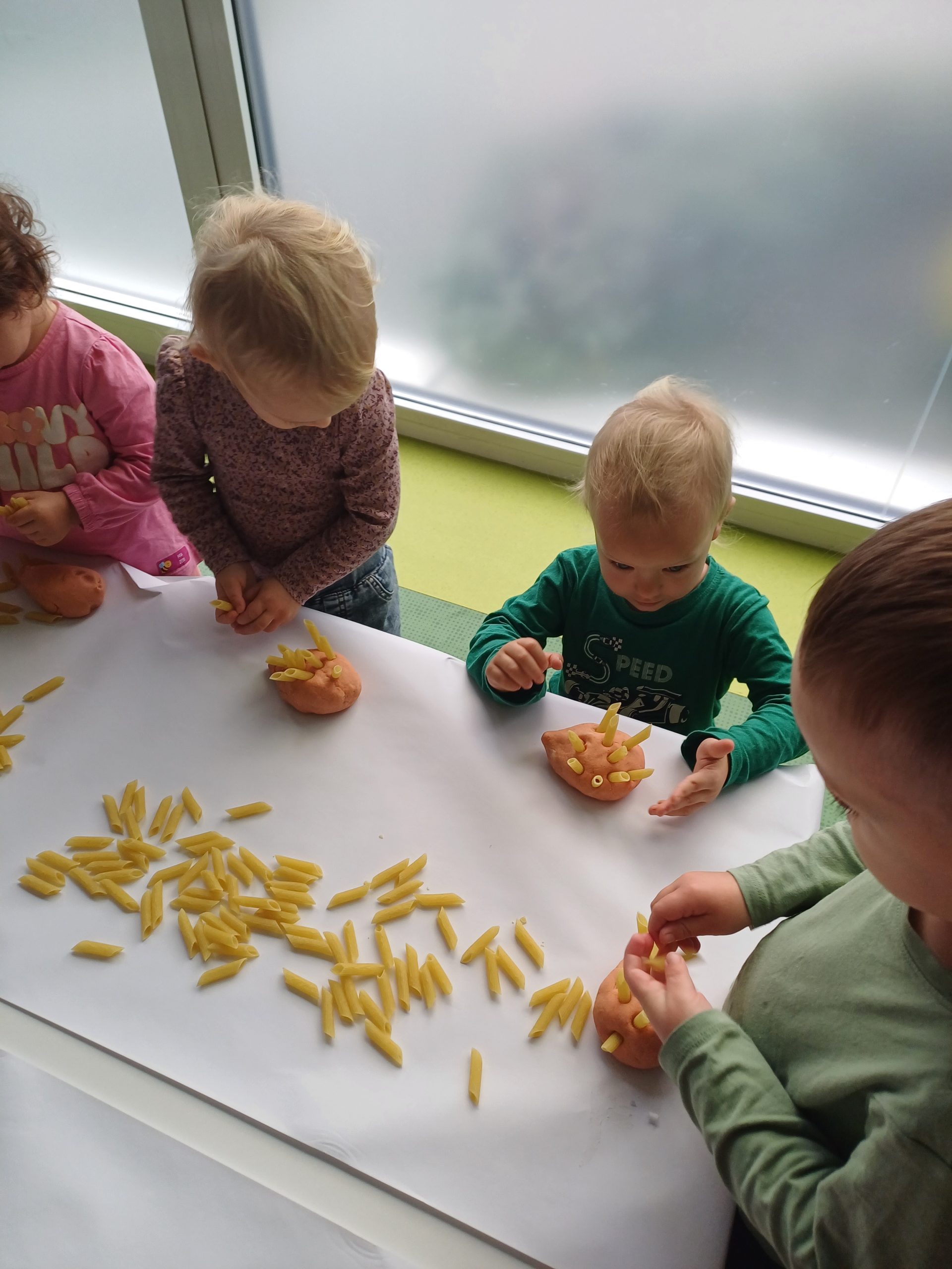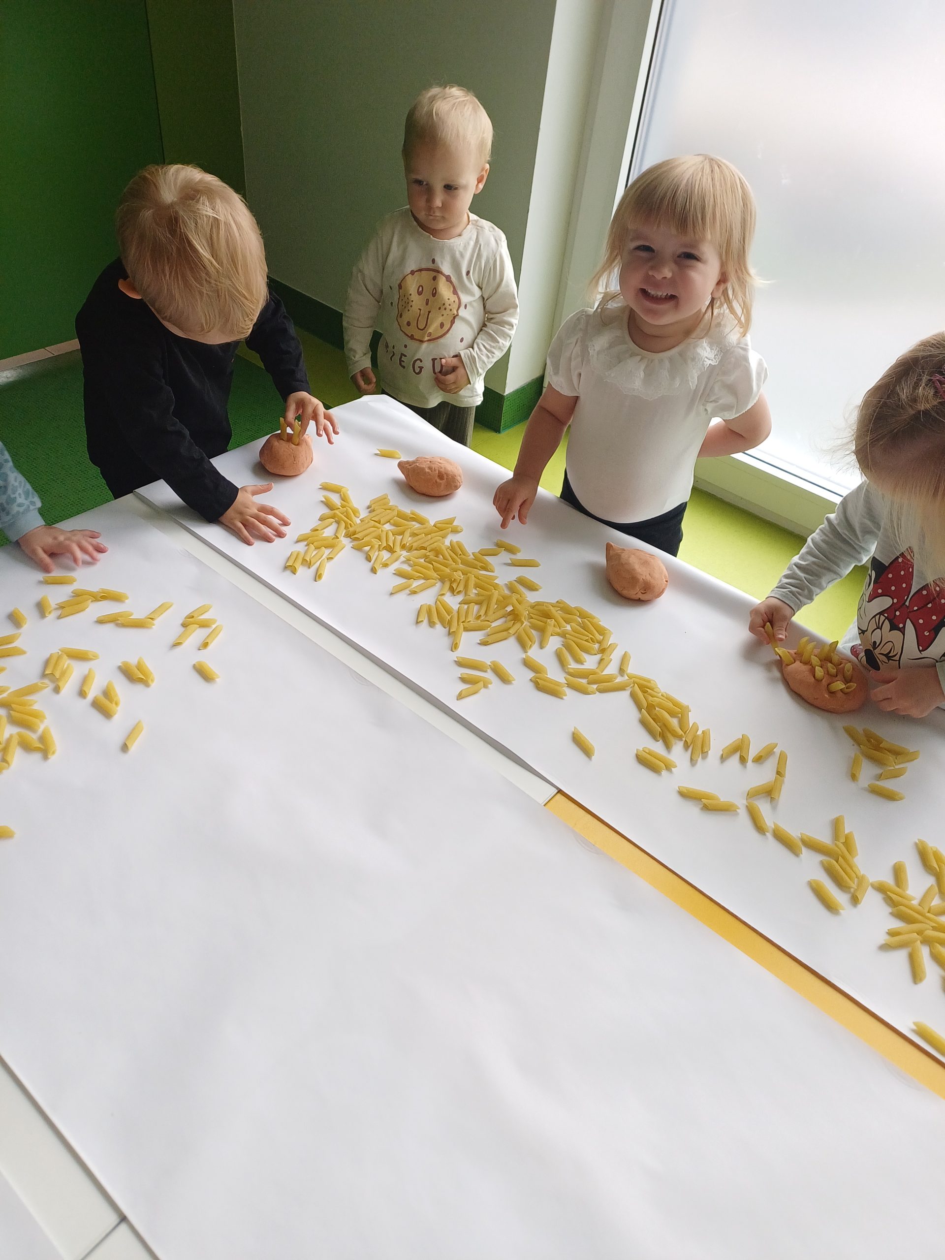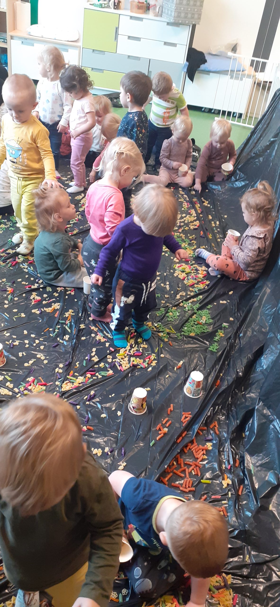 W dniu dzisiejszym naszym gościem honorowym w grupie Pszczółek był makaron. Była to wspaniała zabawa sensoryczna dla naszych dzieci. Makron jest genialnym materiałem do sensoryki a różnorodność jego kształtów, kolorów, struktur, wielkości- także spełnia role edukacyjną. Dostarcza wielu wrażeń wzrokowych niektóre wzory są naprawdę kosmiczne. Ale również wielu bodźców dotykowych- to zawdzięczamy jego strukturom i kształtom. Bawiąc się w ten sposób z dziećmi można osiągnąć znakomite efekty, które wspomagają rozwój zmysłów dziecka, pomagają rozwijać inteligencje, koncentracje i pamięć.