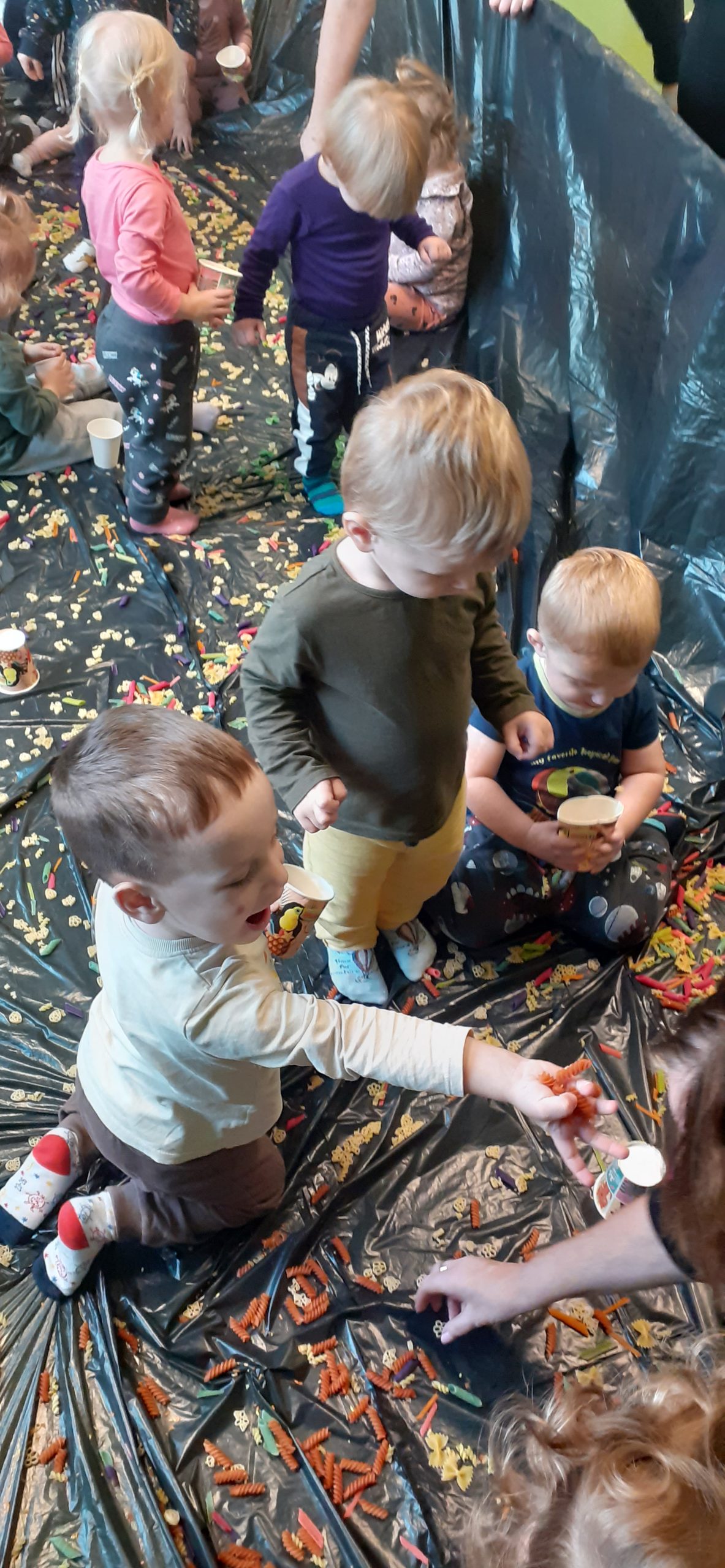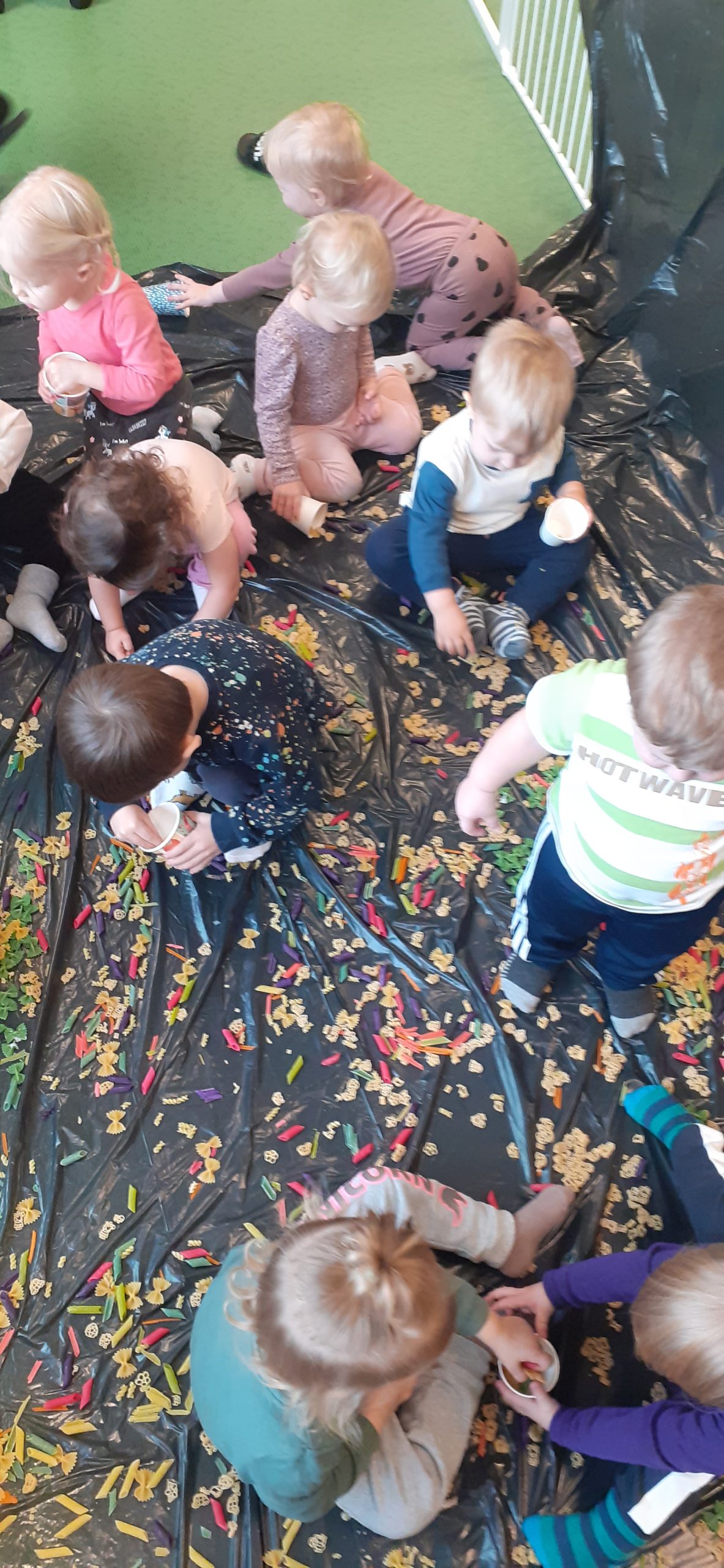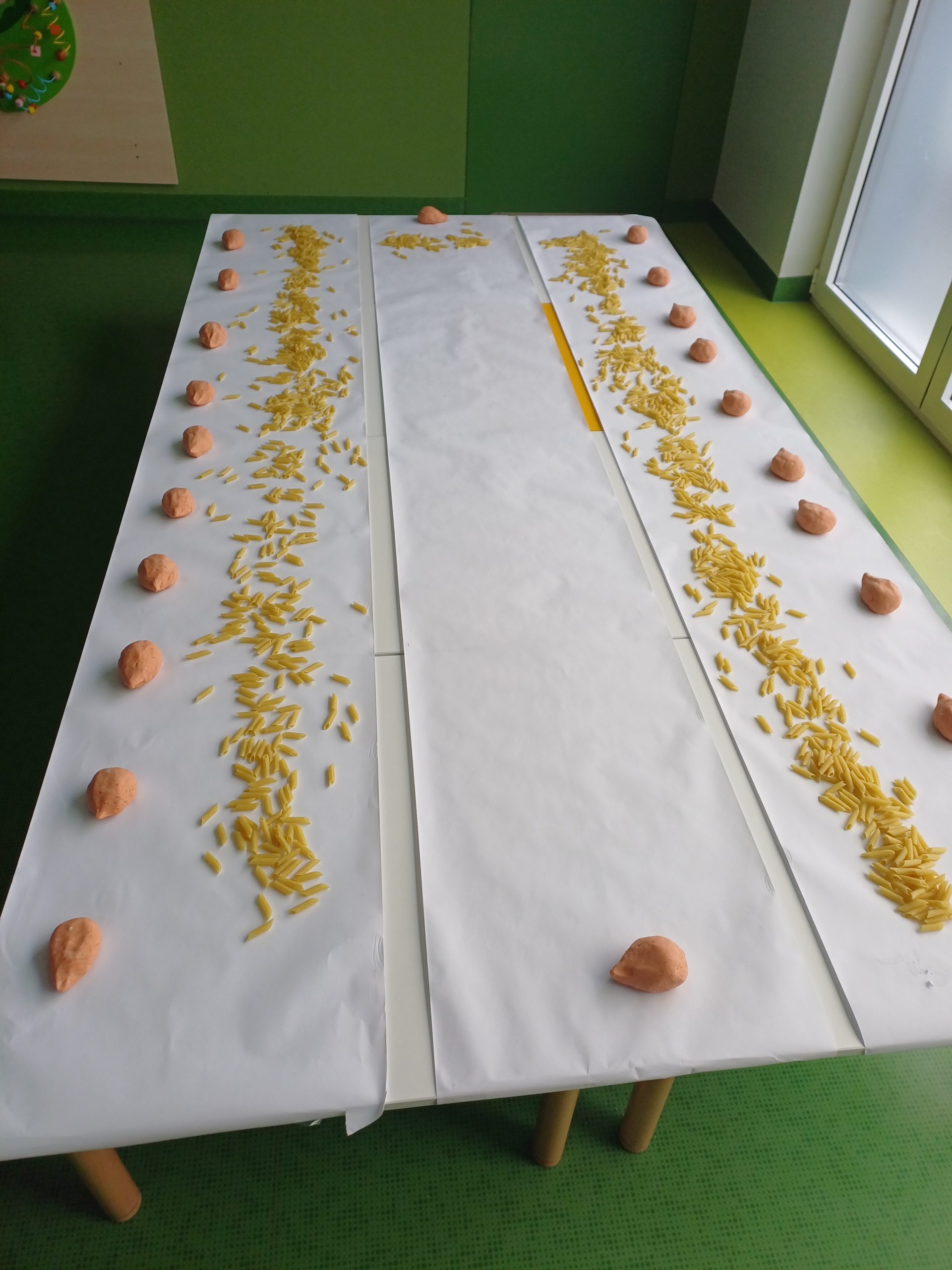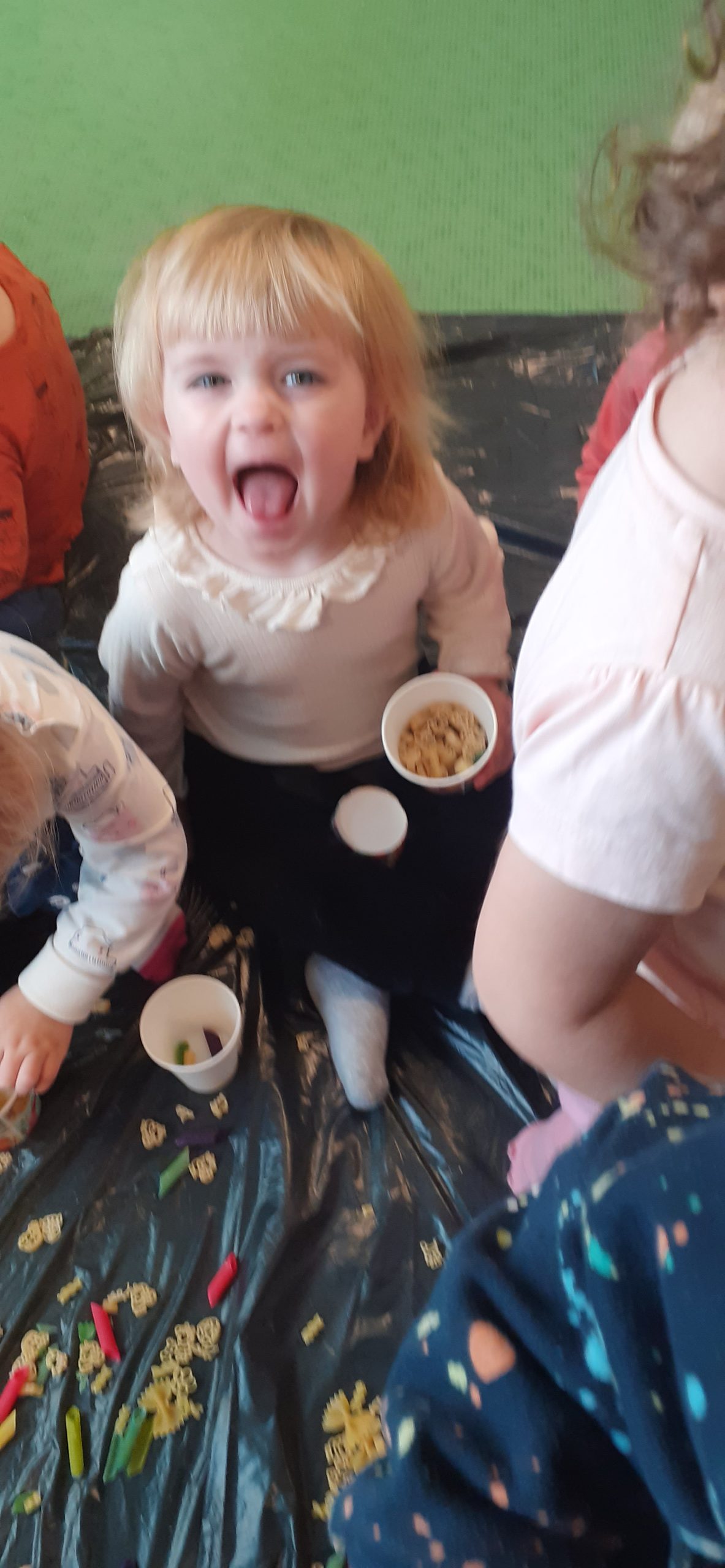 W dniu dzisiejszym naszym gościem honorowym w grupie Pszczółek był makaron. Była to wspaniała zabawa sensoryczna dla naszych dzieci. Makron jest genialnym materiałem do sensoryki a różnorodność jego kształtów, kolorów, struktur, wielkości- także spełnia role edukacyjną. Dostarcza wielu wrażeń wzrokowych niektóre wzory są naprawdę kosmiczne. Ale również wielu bodźców dotykowych- to zawdzięczamy jego strukturom i kształtom. Bawiąc się w ten sposób z dziećmi można osiągnąć znakomite efekty, które wspomagają rozwój zmysłów dziecka, pomagają rozwijać inteligencje, koncentracje i pamięć.