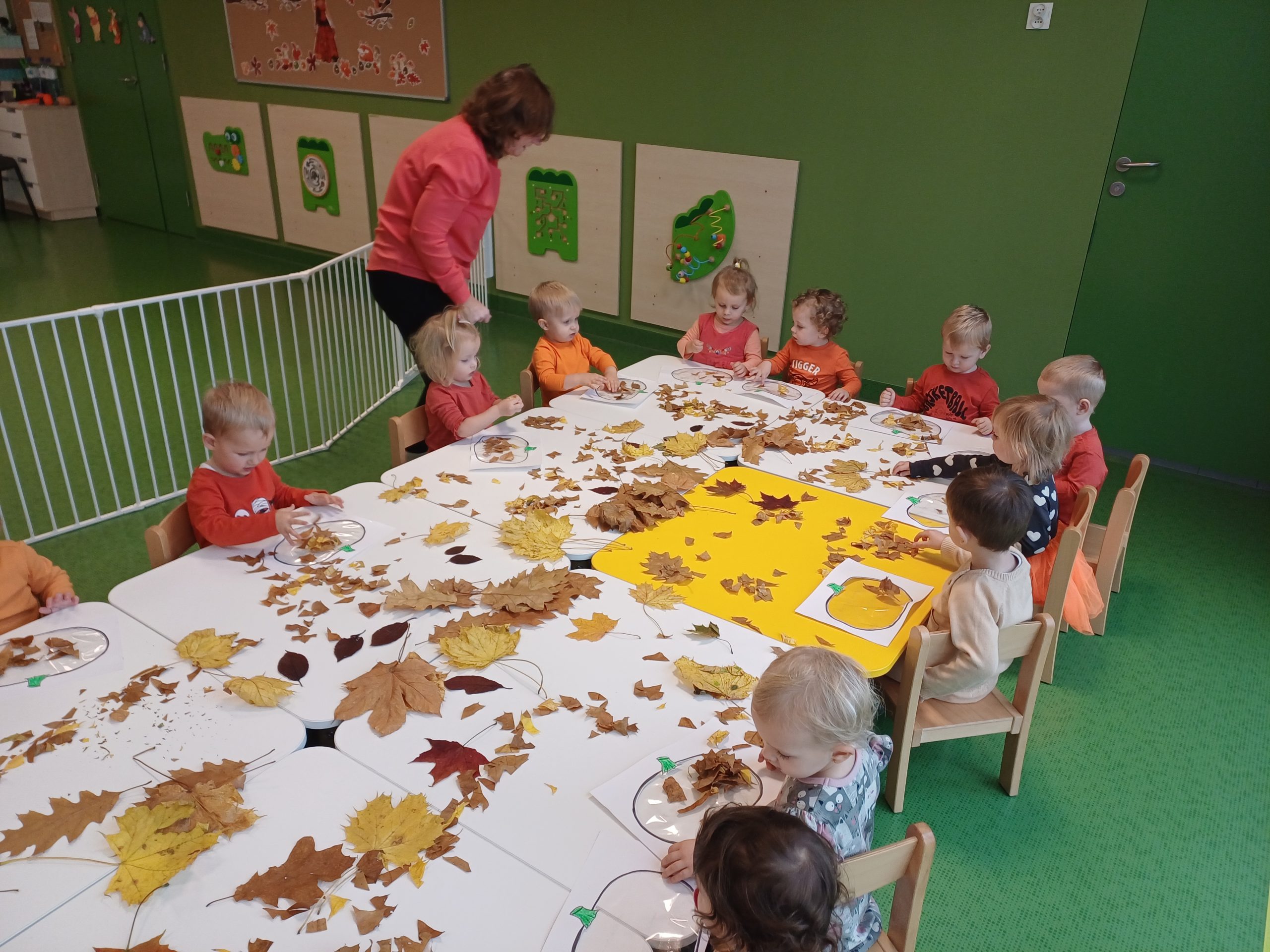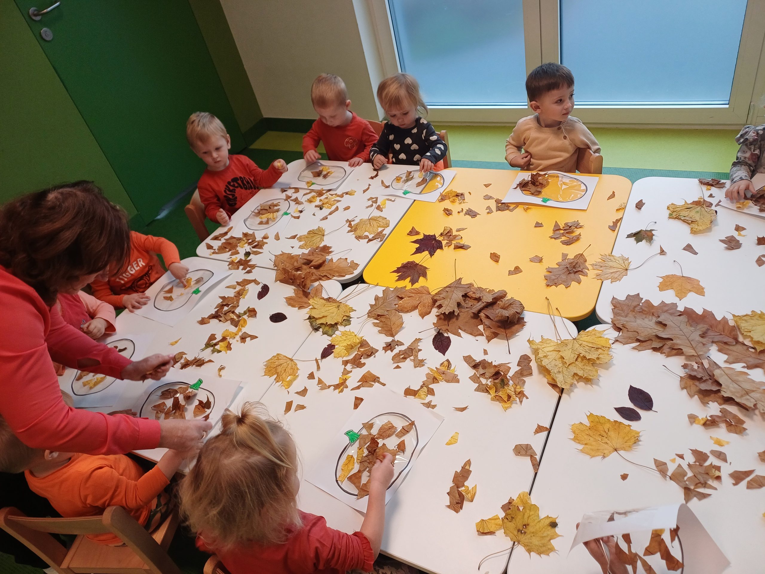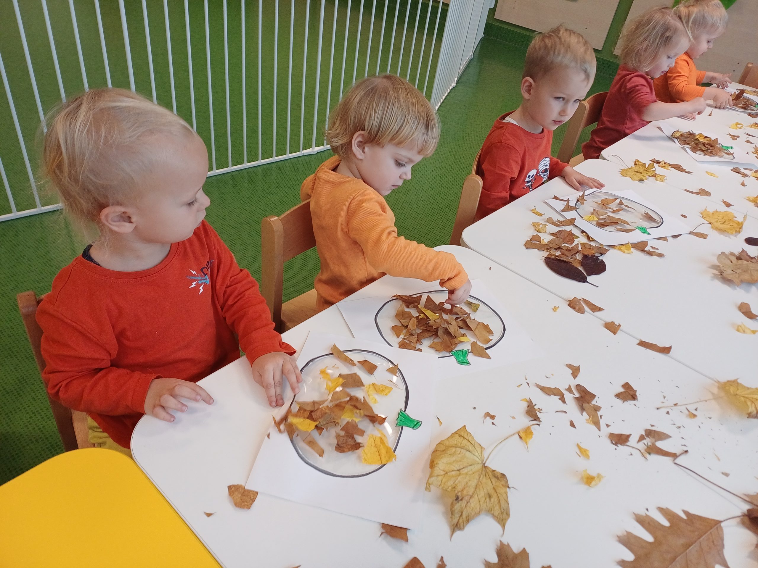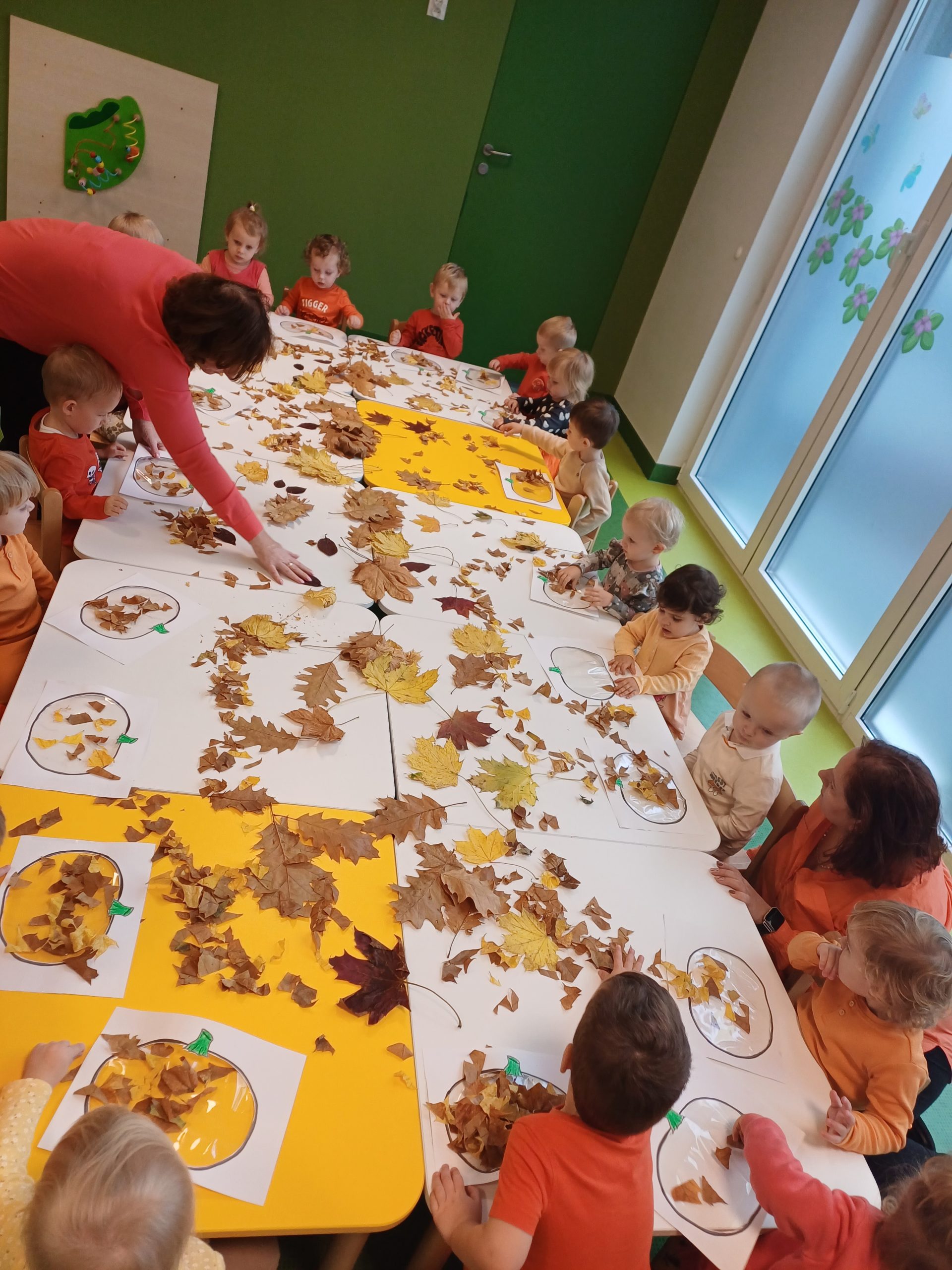 W naszej sali pojawił się dziś kawałek jesiennego lasu. Ciekawskie Pszczółki rozpoznawały dary jesieni za pomocą dotyku i węchu co sprawiło im wiele radości.