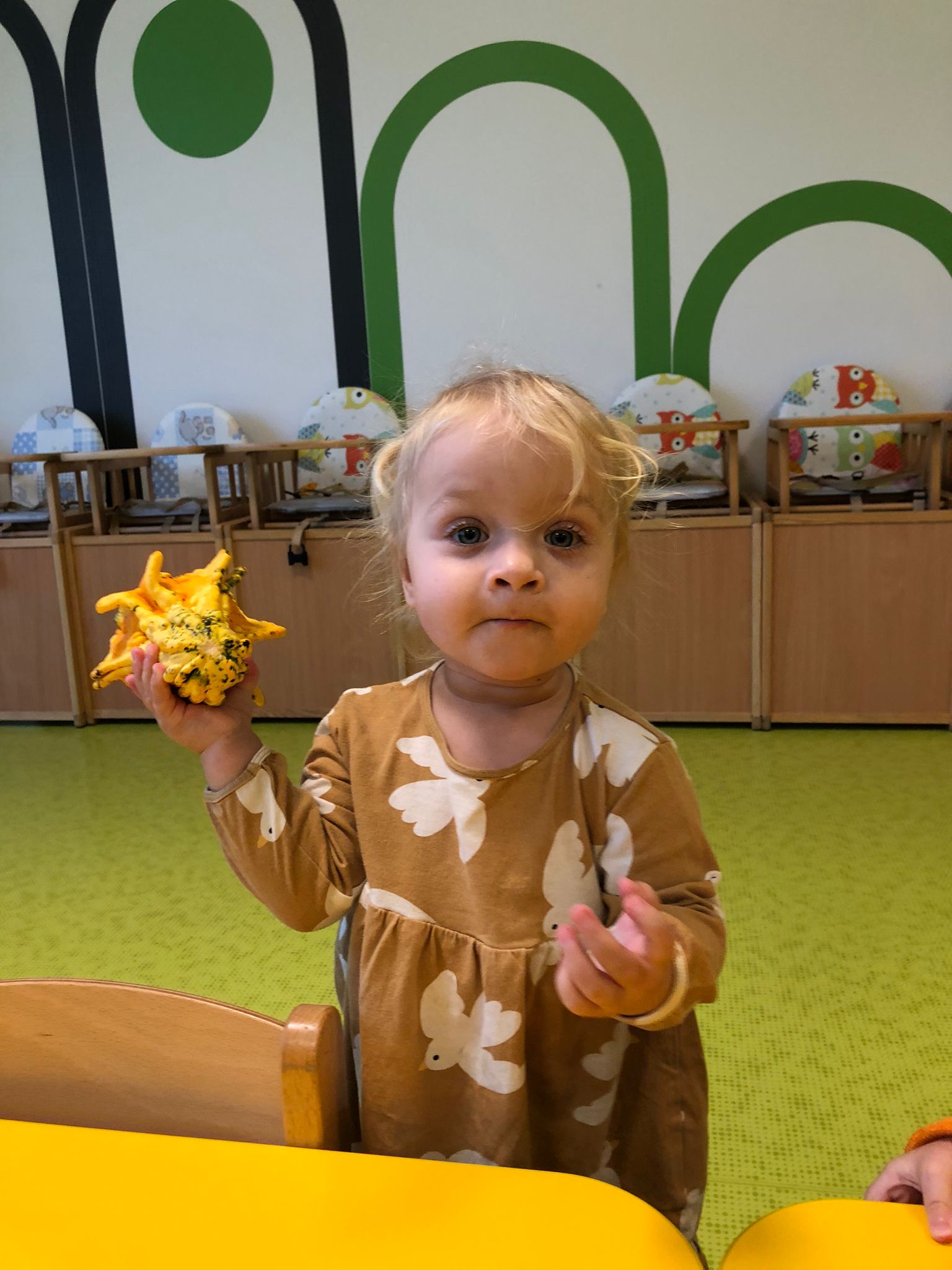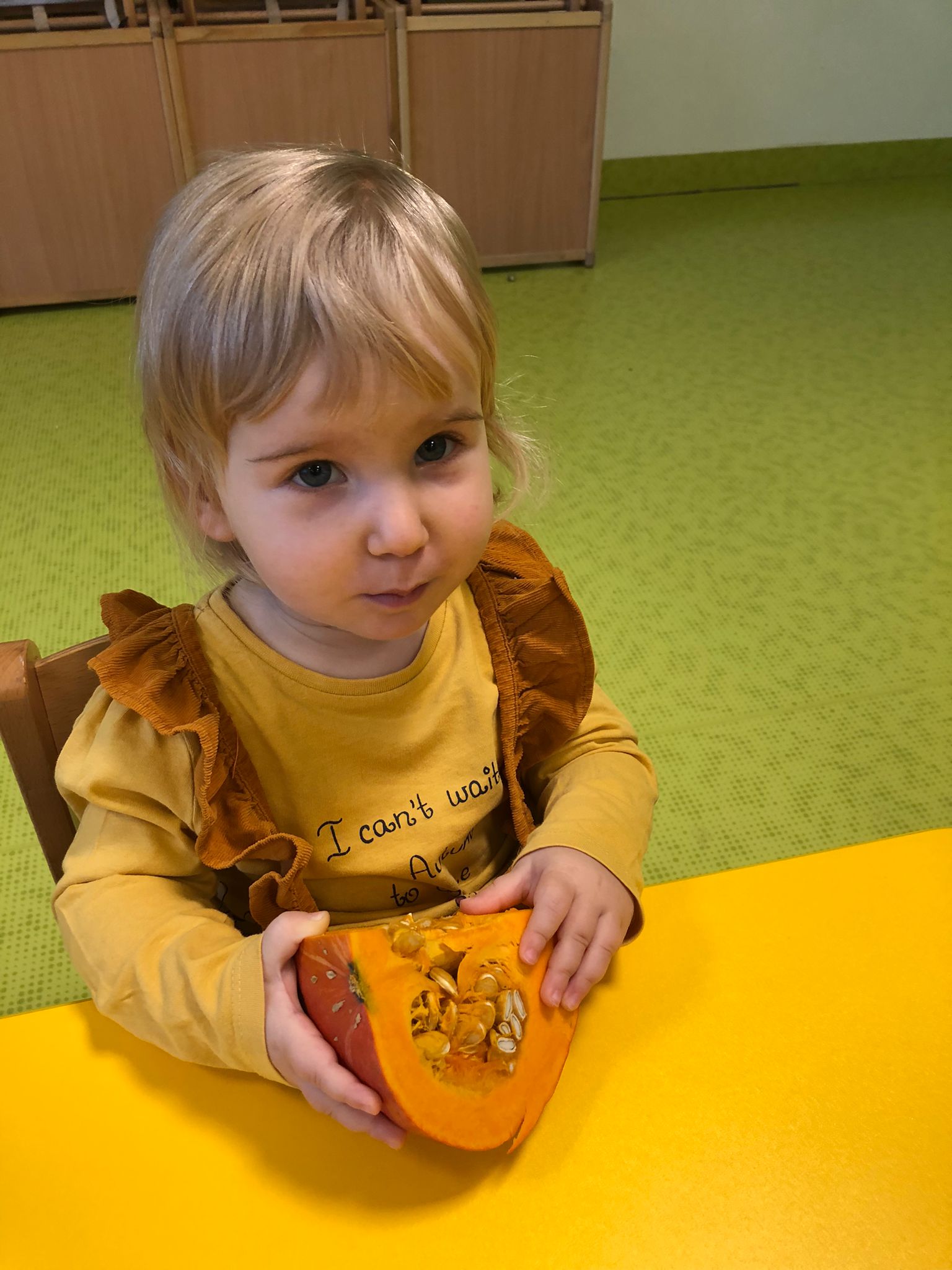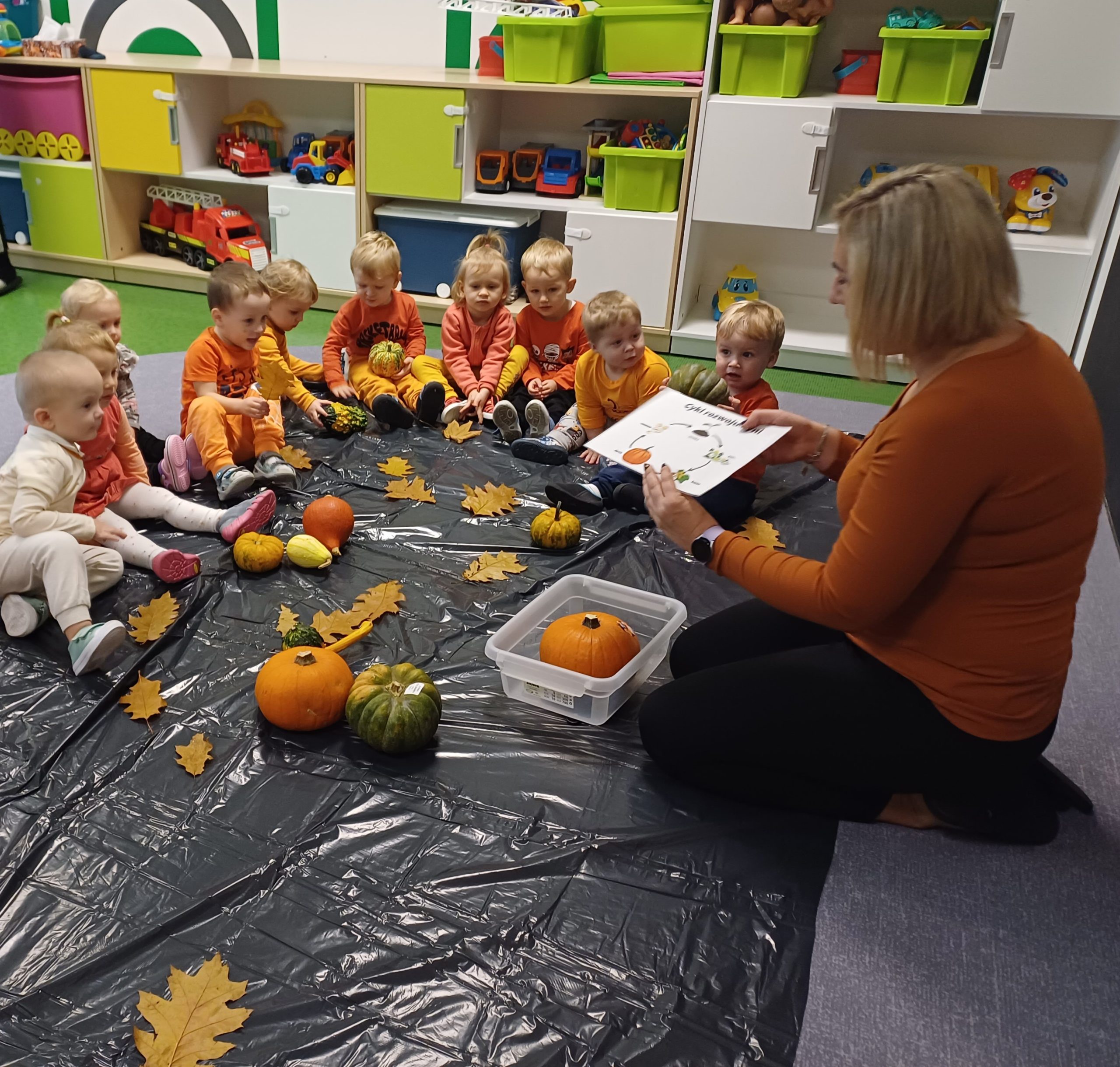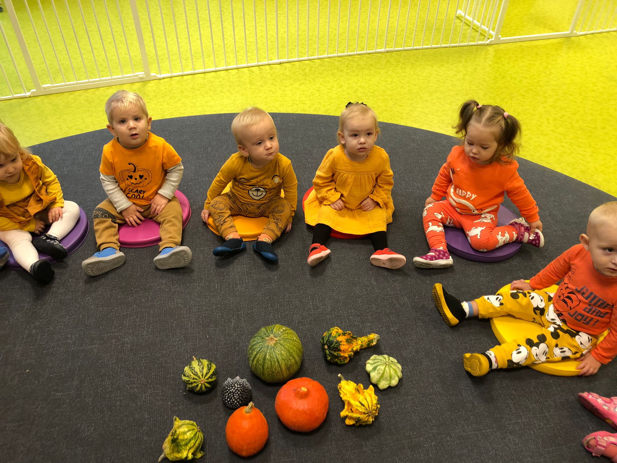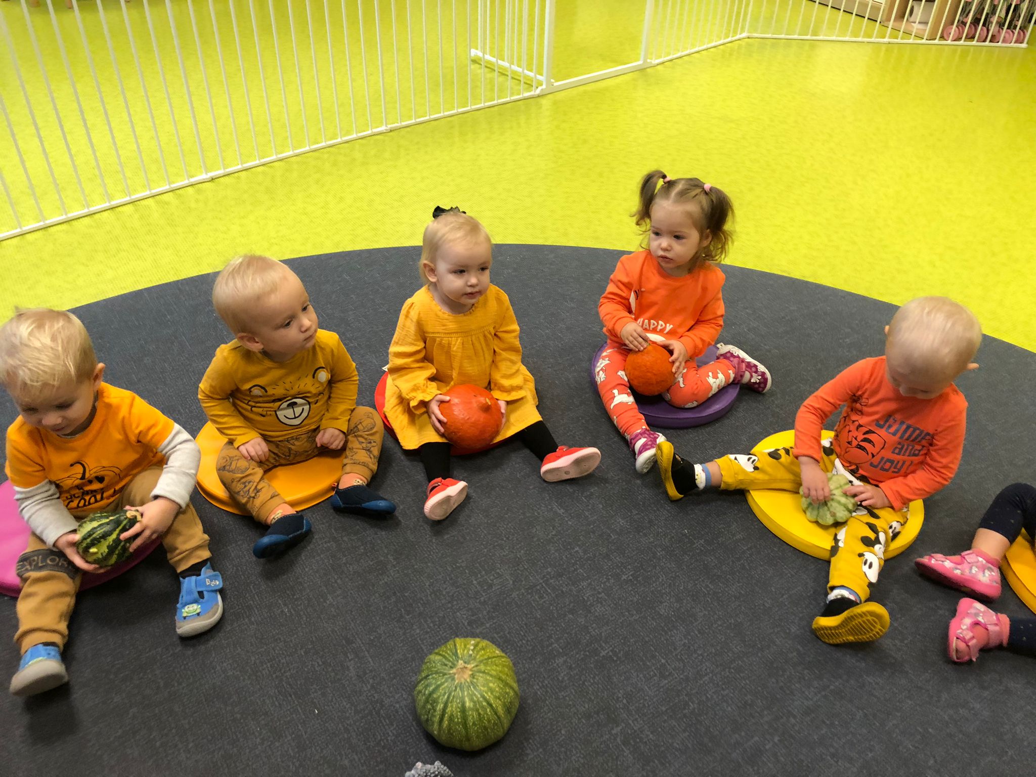 Dziś obchodziliśmy „Dzień dyni” w związku z tym nasze Motylki przyszły ubrane do żłobka na pomarańczowo. Dzieci miały okazje uczestniczyć w zajęciach związanych z tym dniem. Chętnie przyglądały się, dotykały oraz smakowały dynie. Zajęcia miały na celu stymulowanie wszystkich zmysłów.