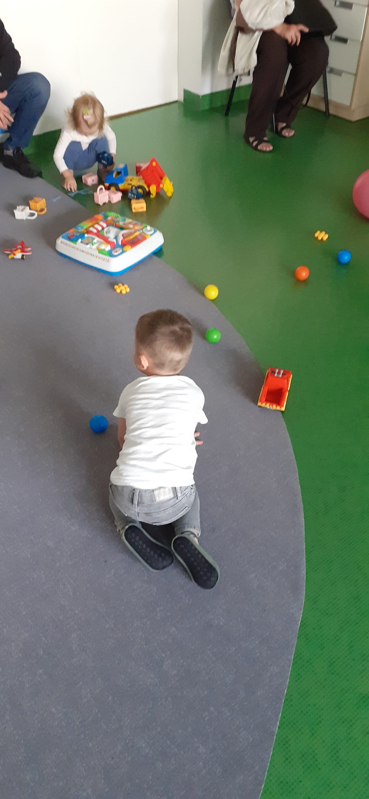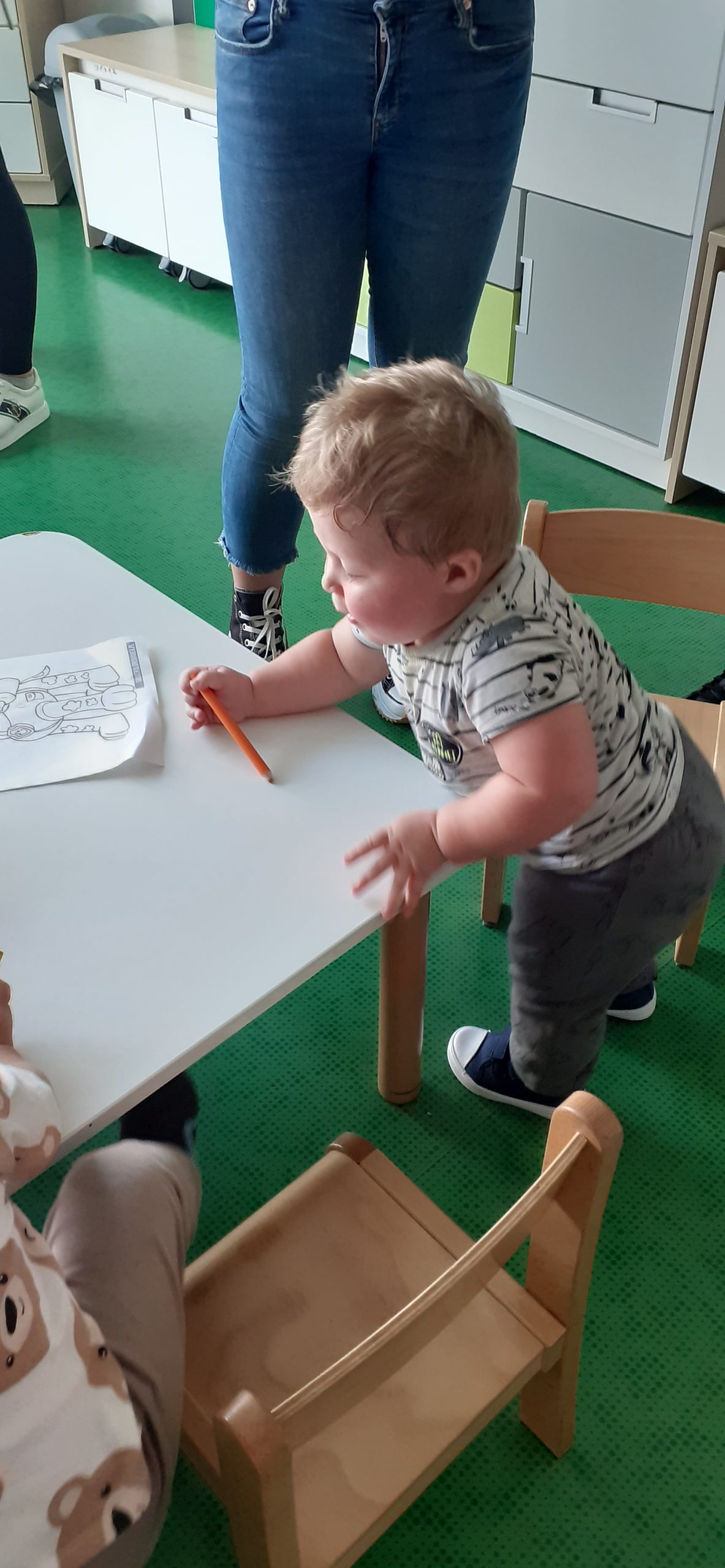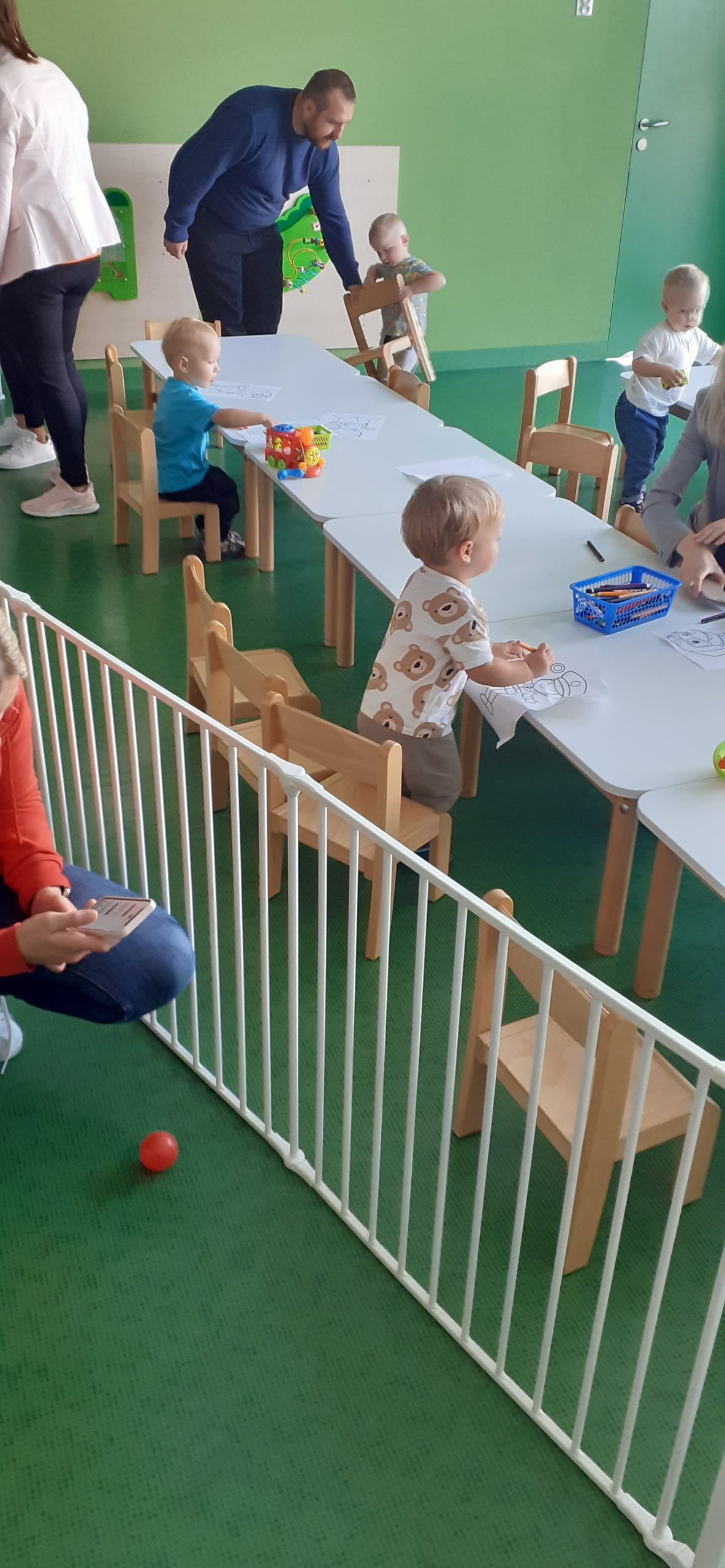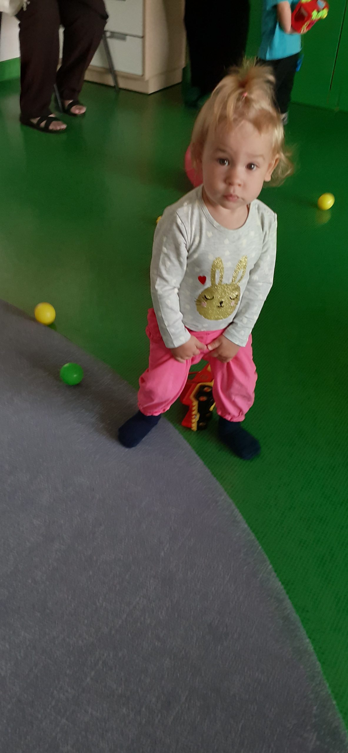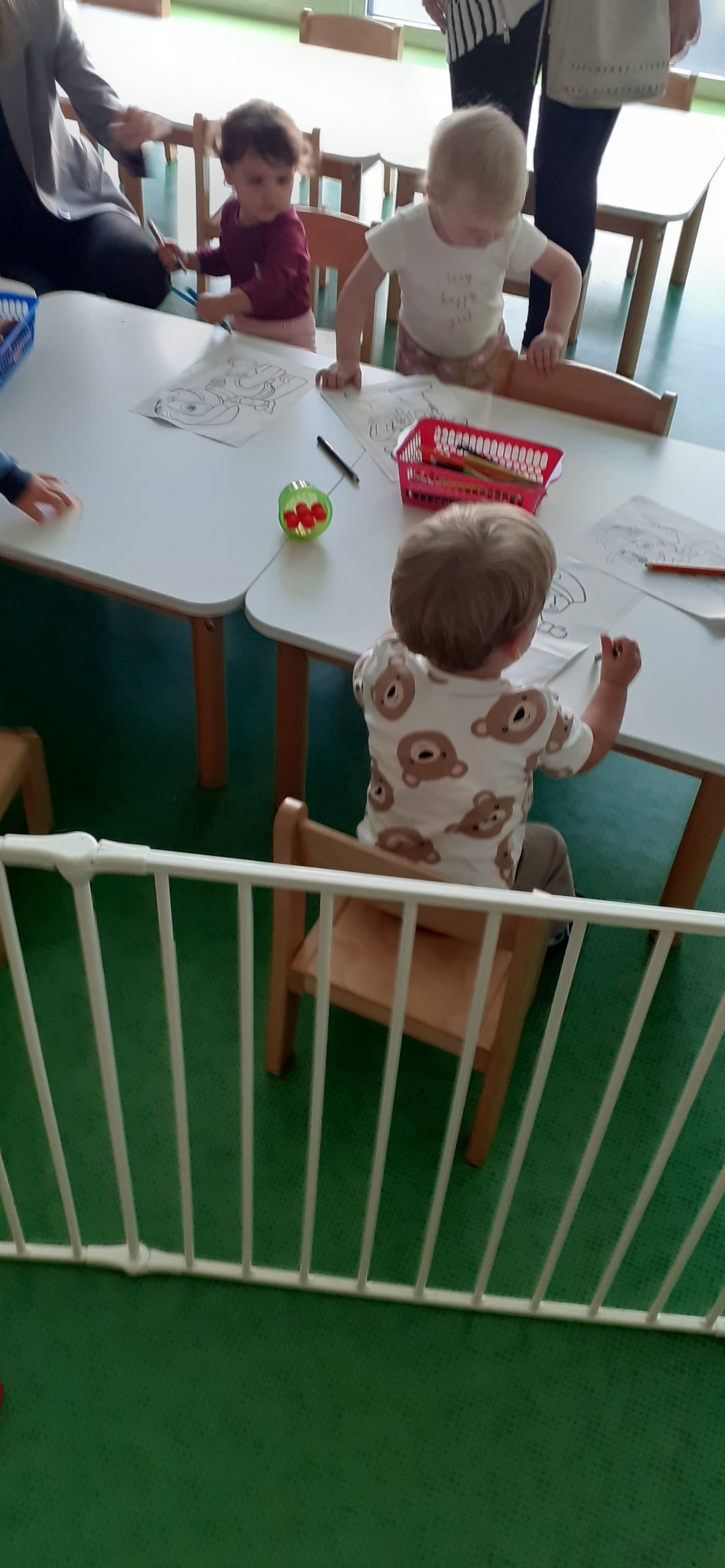 Dziś nasze Maluszki obchodziły „Dzień Kropki”. Tego dnia ubranka dzieci miały akcent kolorowych kropek. Dzień kropki świętowaliśmy przy użyciu chusty animacyjnej i kolorowych piłeczek. Następnie przystąpiliśmy do wykonania wspólnej pracy plastycznej pt. „Parasol”, pracę dzieci wykonały własnymi paluszkami ćwicząc motorykę małą.